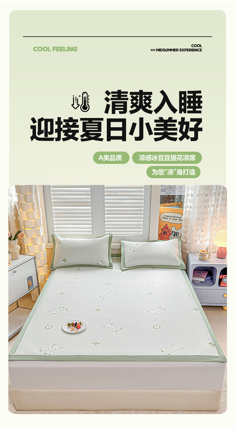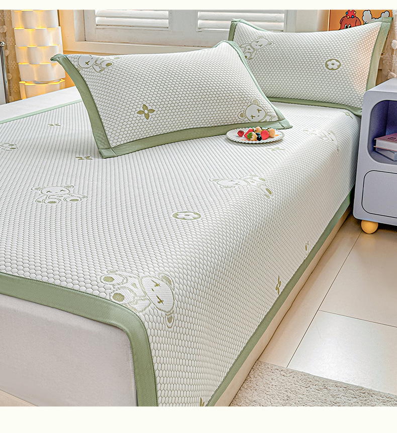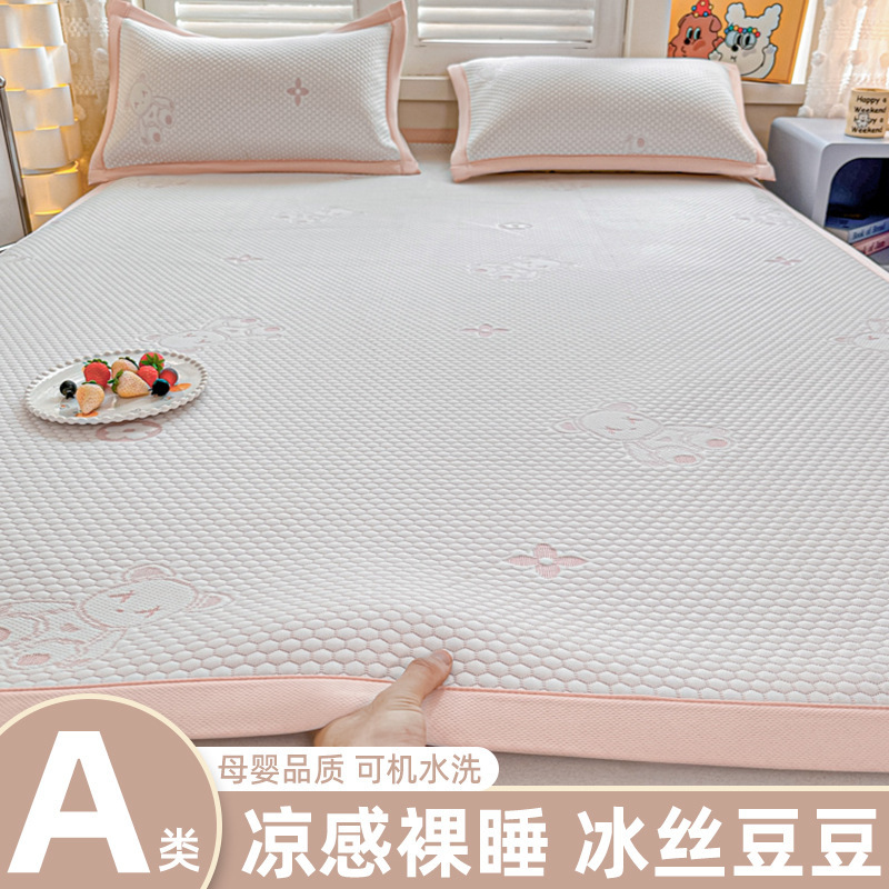 2025 새로운 쿨 아이스콩 콜드 매트 아이스 실크 매트 침대 시트 매트 기계 세척 가능한 여름 에어컨 소프트 매트 3 피스 세트