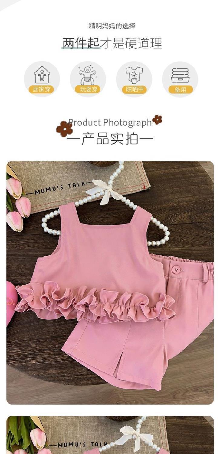 [4946 컬렉션] 여자 조끼 세트 2025 년 새 여름 어린이 반바지 2-3 세 여성 아기 여름
