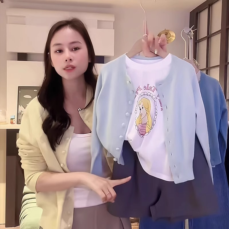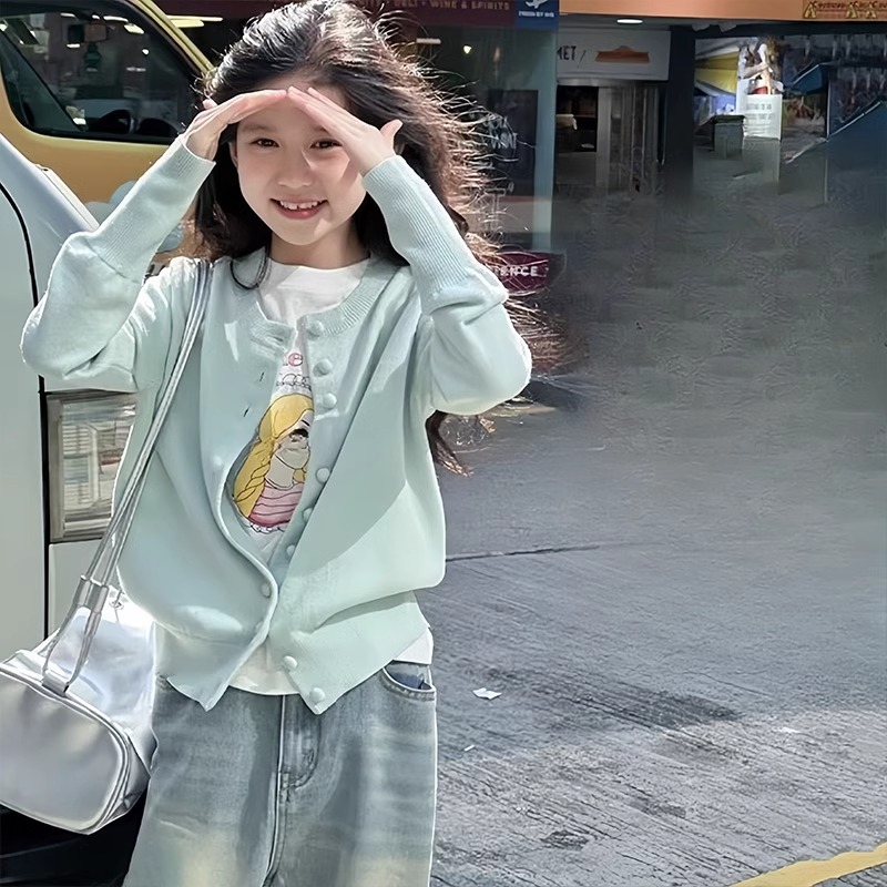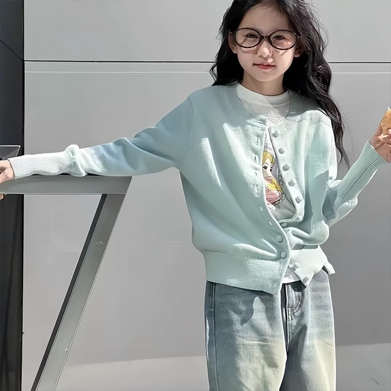 소녀 니트 카디건 2025 새로운 어린이 코트 봄과 가을 Parin-어린이 스웨터 올 매치 탑스토어 가기