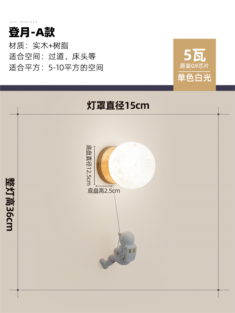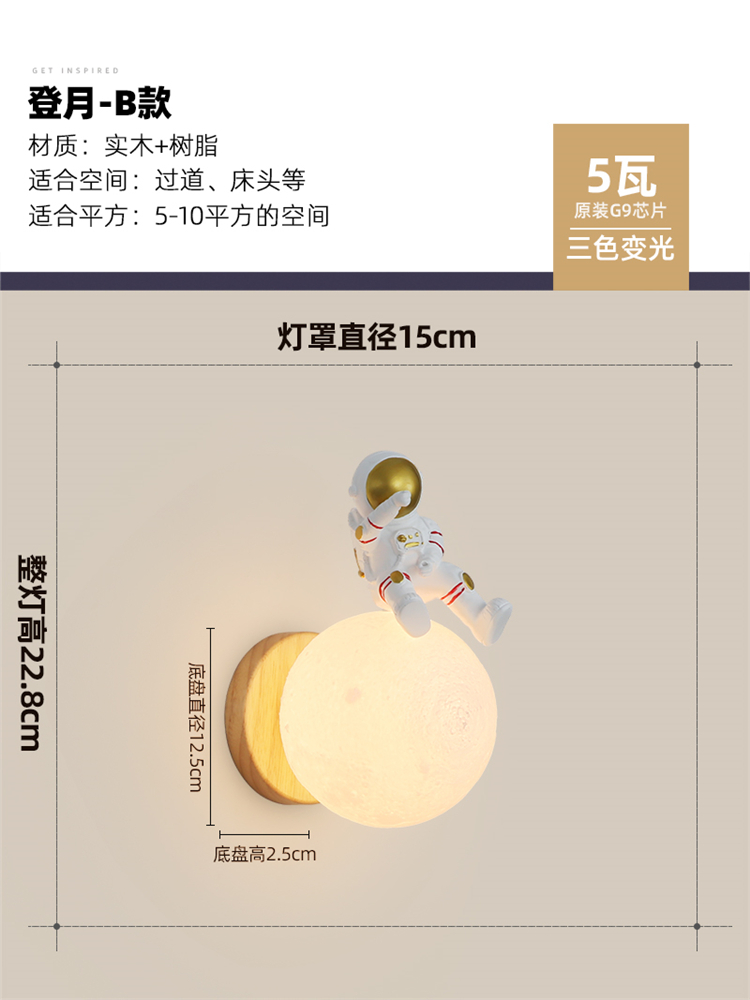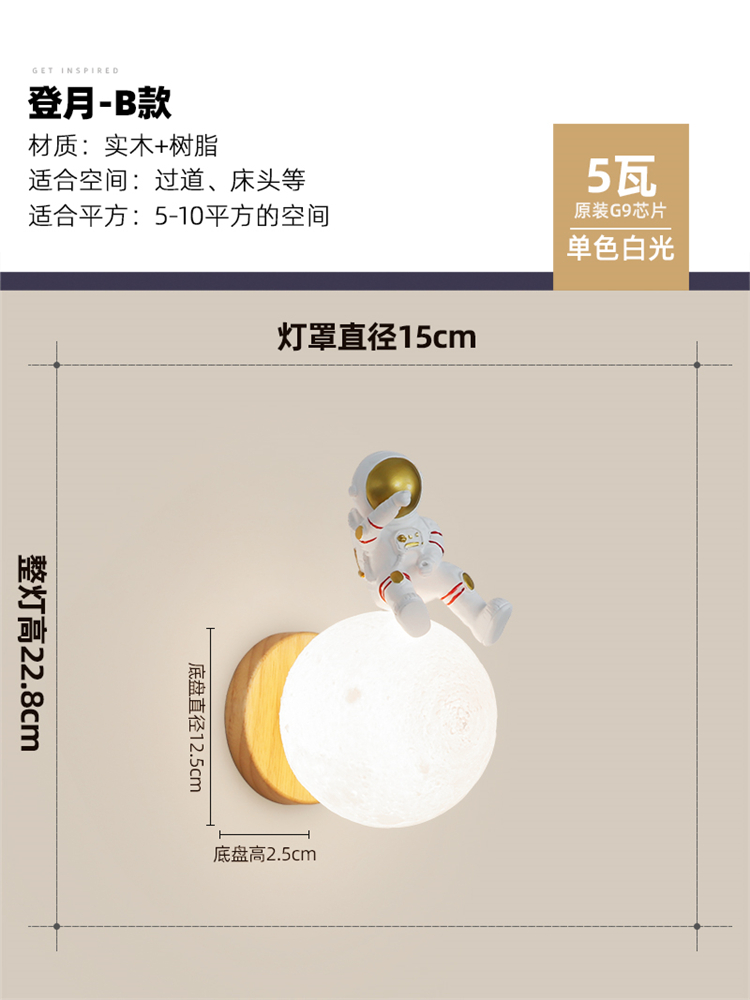 • 화이트 + 골드 [달 착륙 모델 B] 벽 램프 15CM 백색광