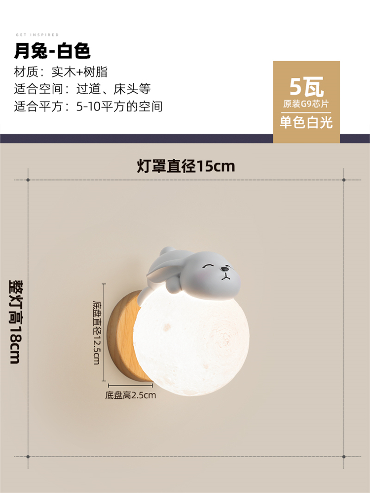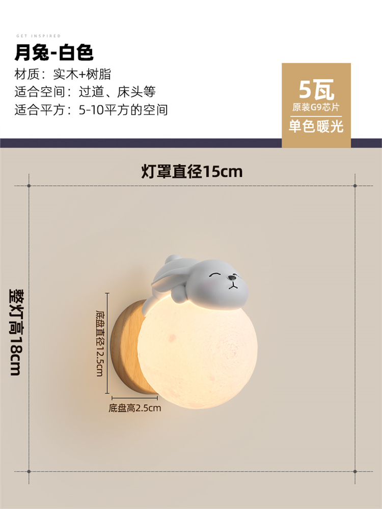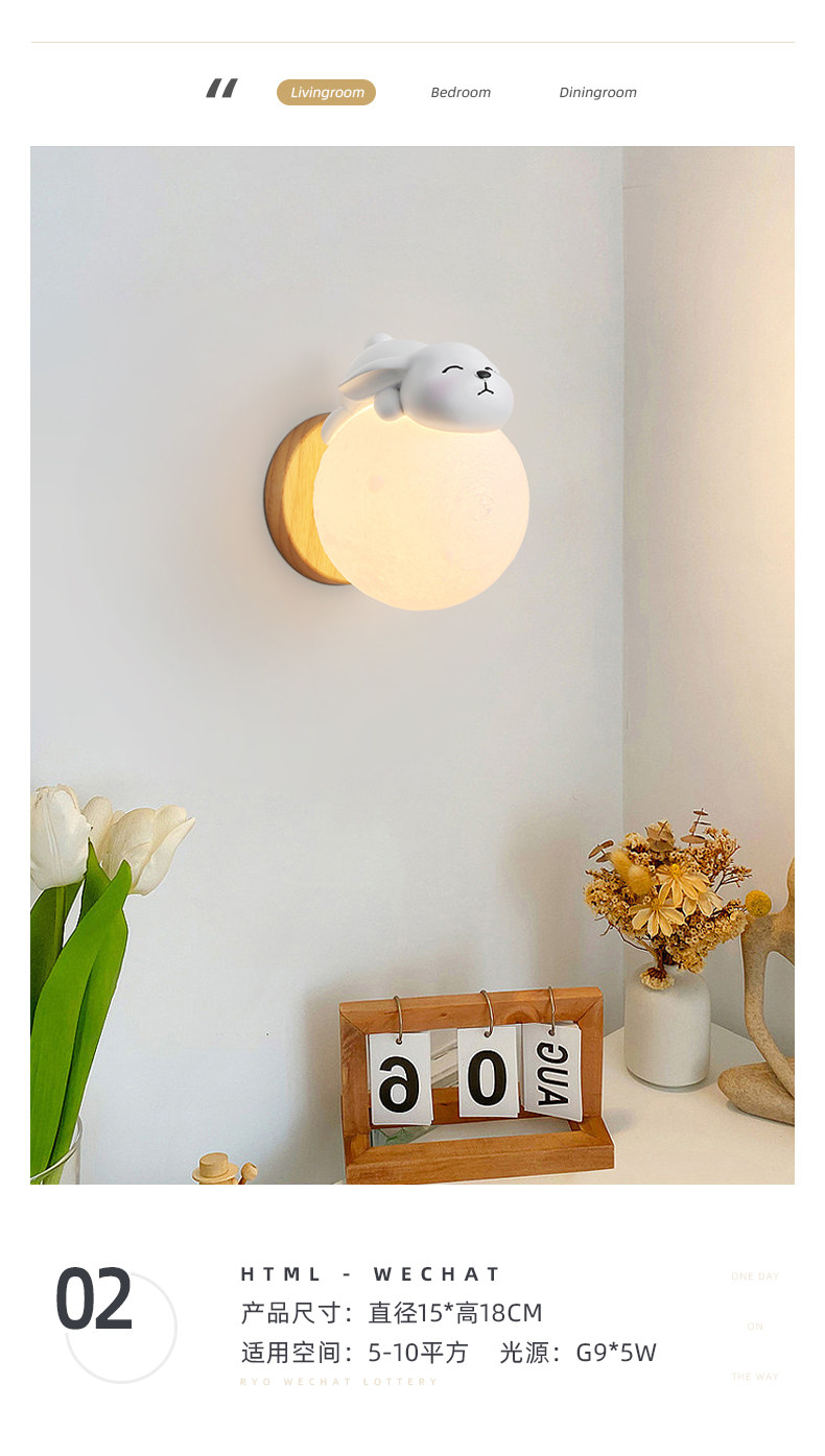 • 화이트 [달토끼] 벽램프 15CM 따뜻한 빛