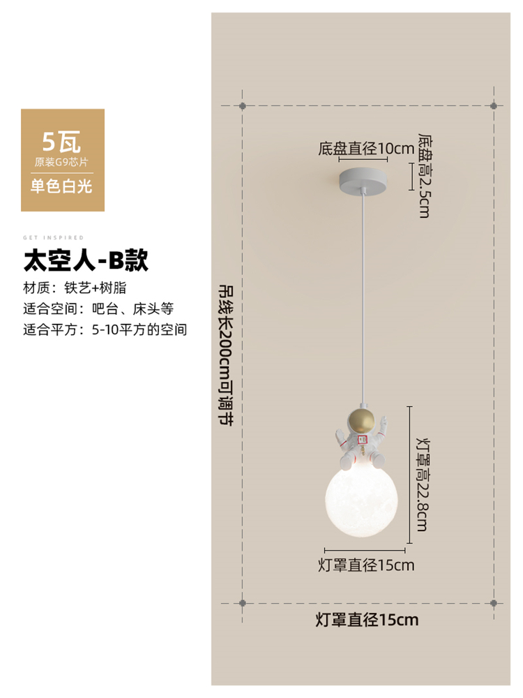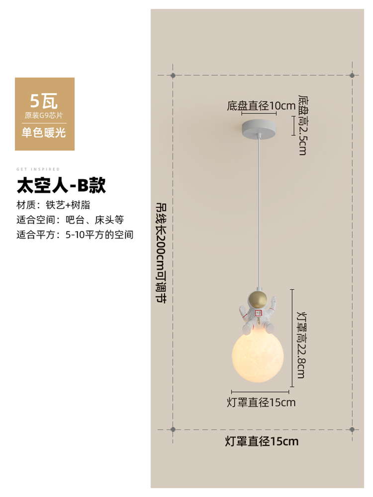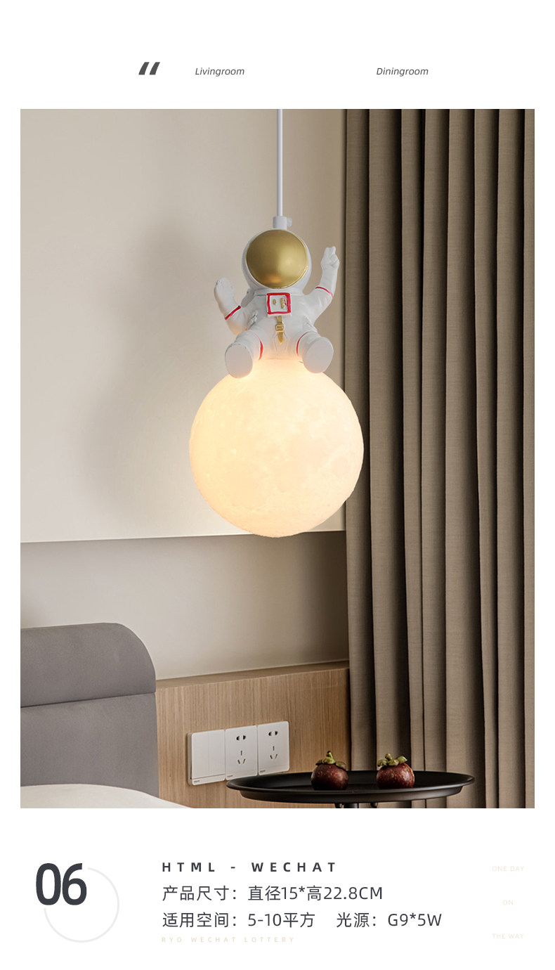 • 화이트 + 골드 [우주 비행사] 샹들리에 15CM 화이트 라이트