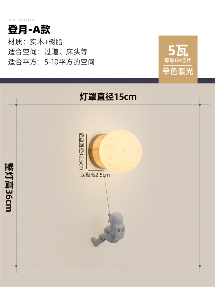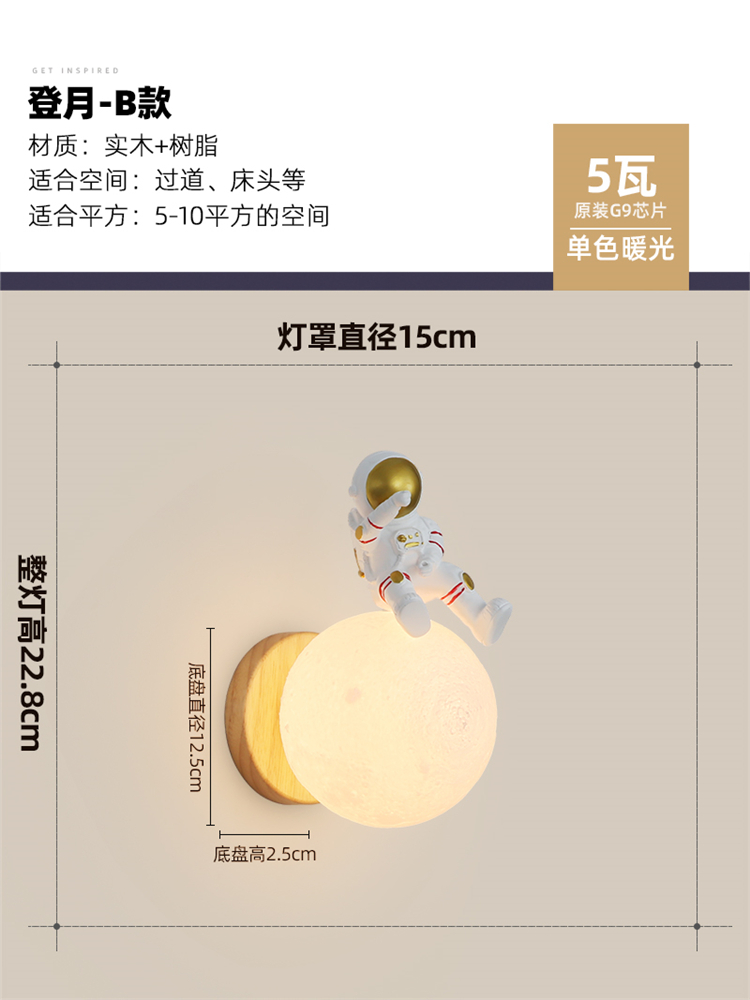 • 화이트 + 골드 [달 착륙 모델 B] 벽 램프 15CM 따뜻한 빛
