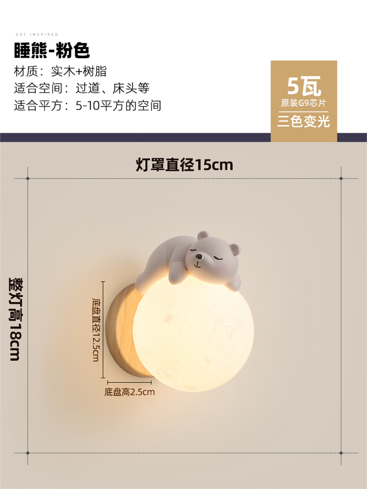 • 핑크 [잠자는 곰] 벽 램프 15CM 백색광