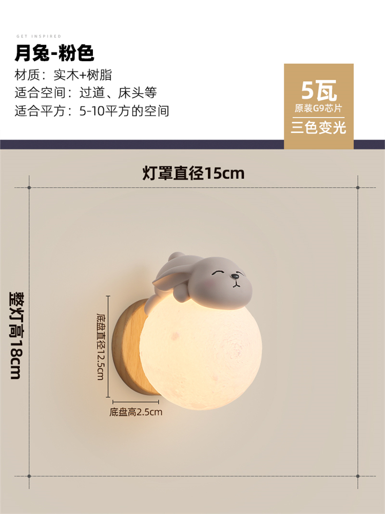 • 핑크 [달토끼] 벽등 15CM 백색광