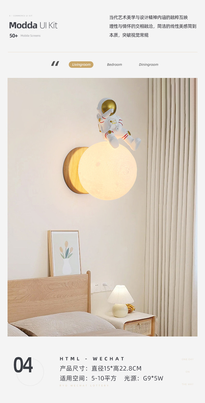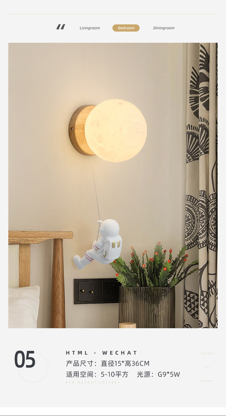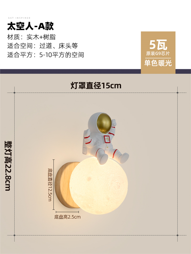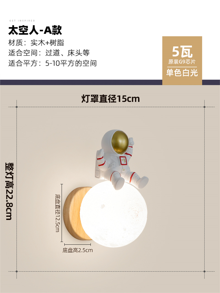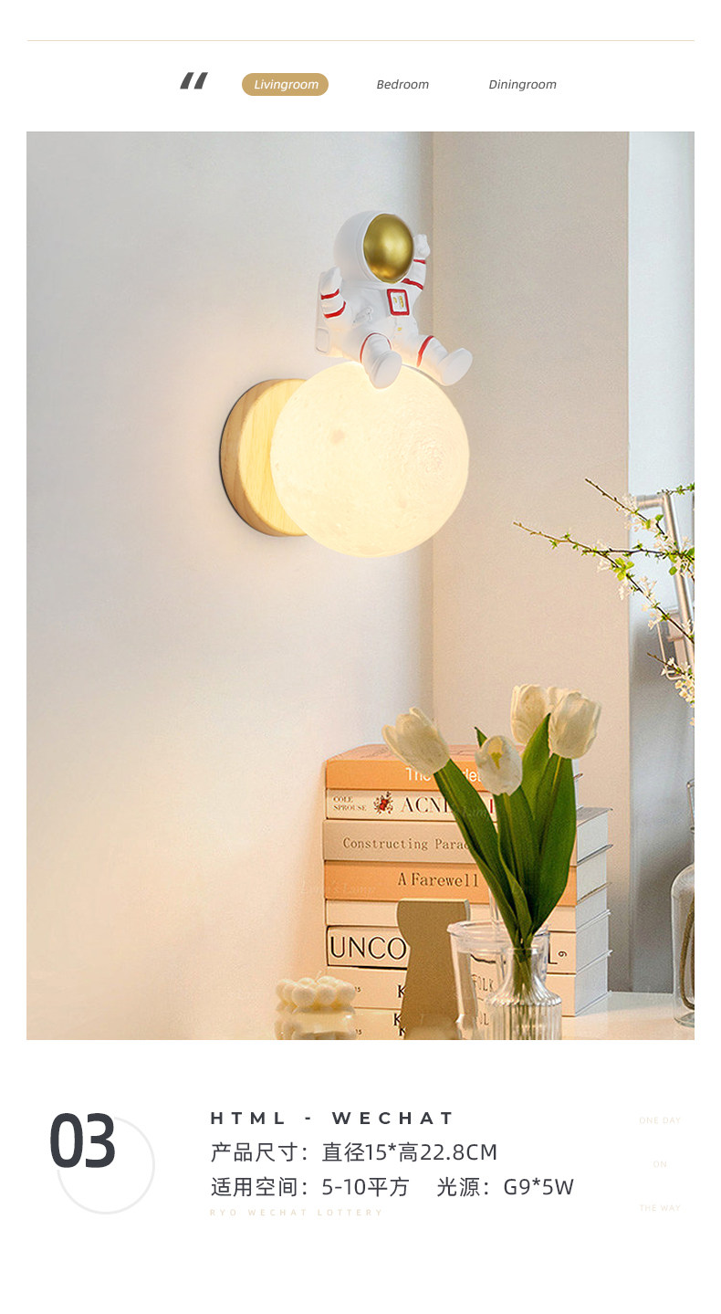 • 화이트 + 골드 [우주 비행사] 벽 램프 15CM 백색광