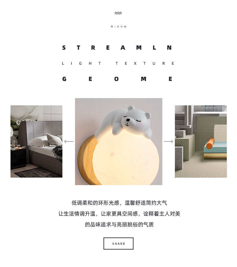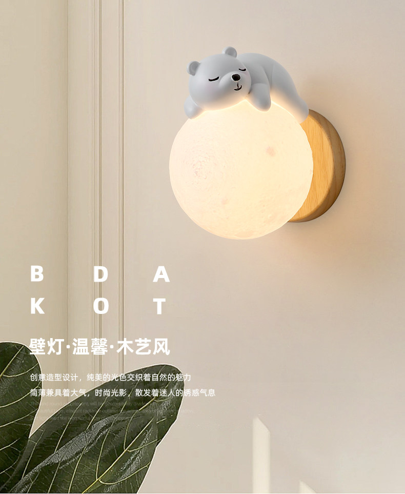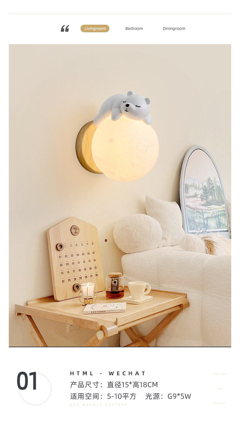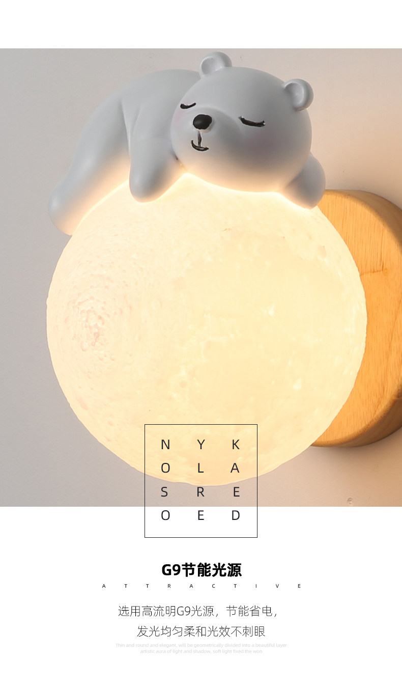 벽 램프 로그 크림 스타일 귀여운 만화 행성 동물 침실 머리맡 램프 현대 간단한 어린이 방 램프스토어 가기