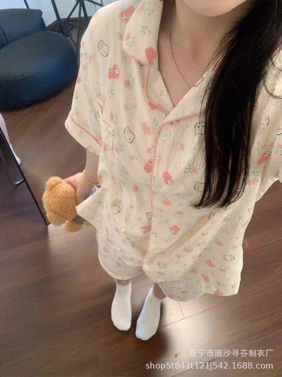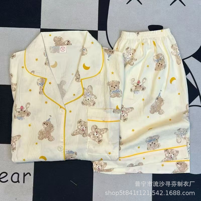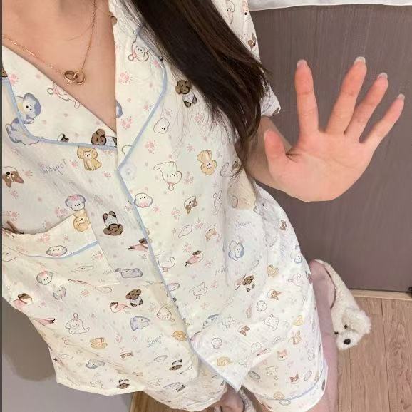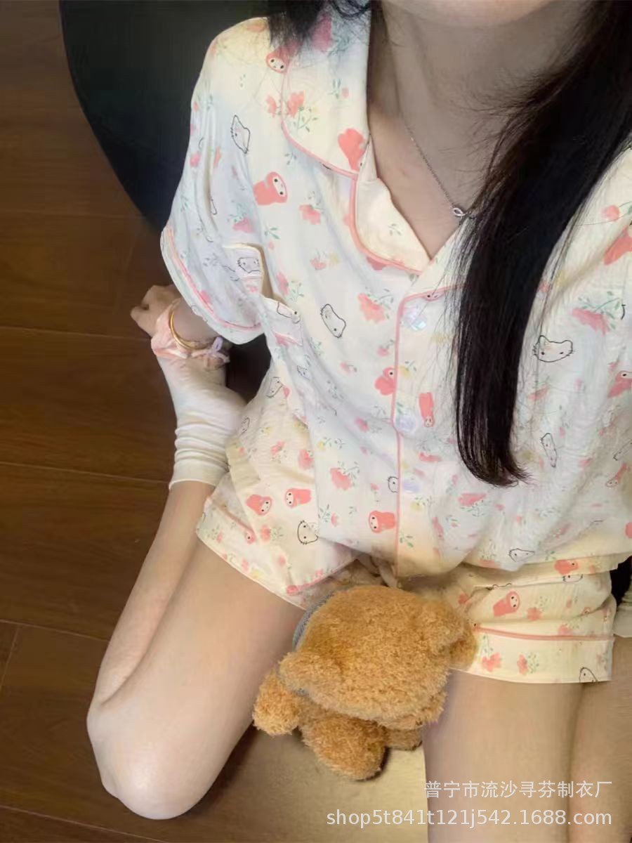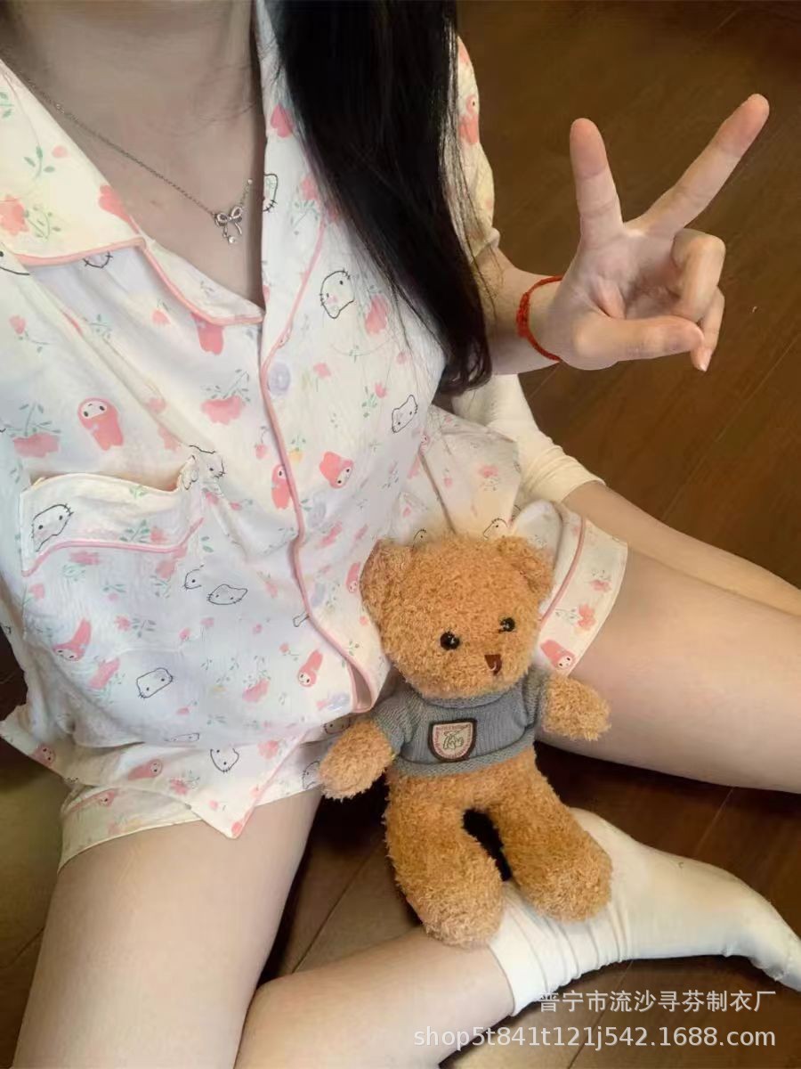구름면 잠옷 여성의 여름 얇은 곰 반팔 반바지 소녀 귀여운 만화 겉옷 홈 세트