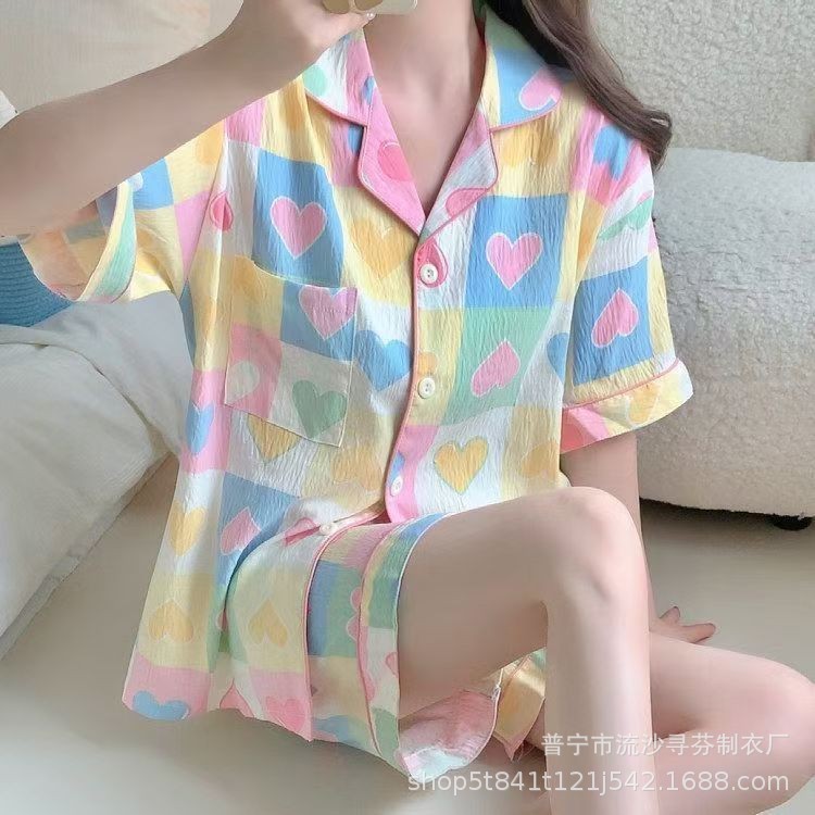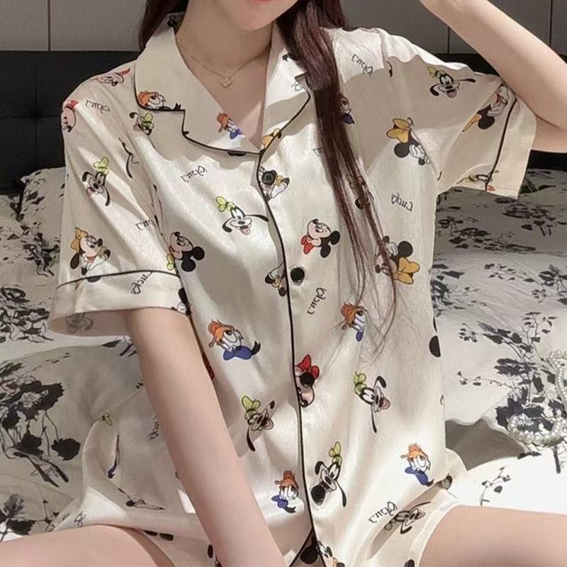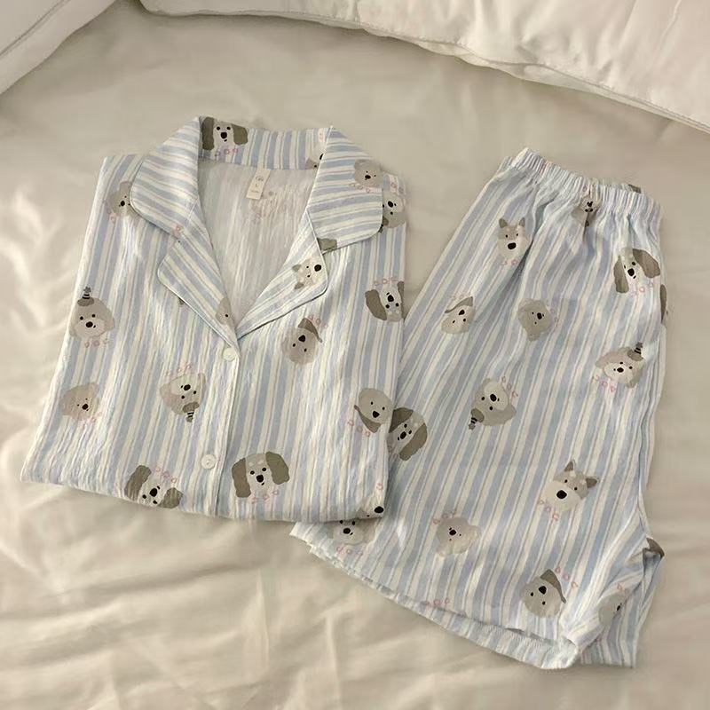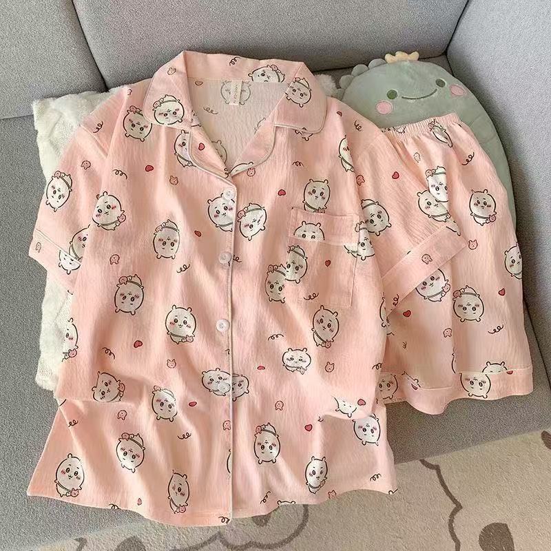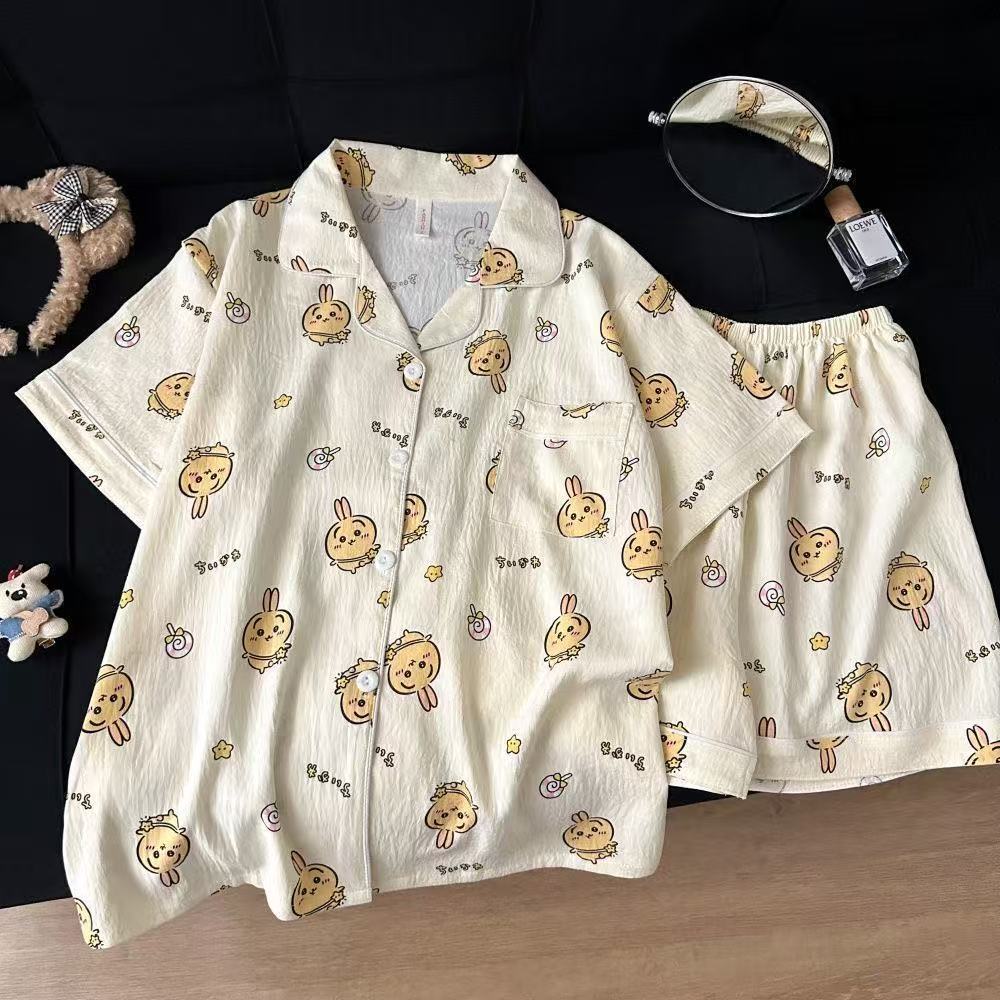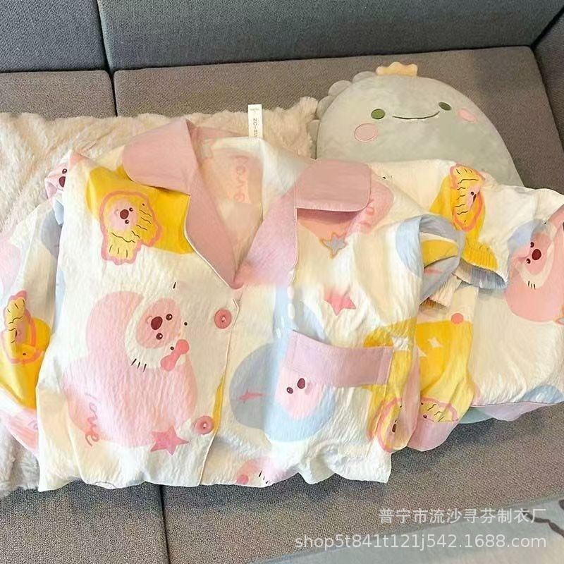 구름면 잠옷 여성의 여름 얇은 곰 반팔 반바지 소녀 귀여운 만화 겉옷 홈 세트