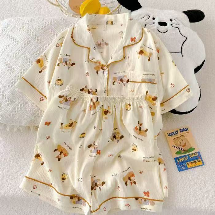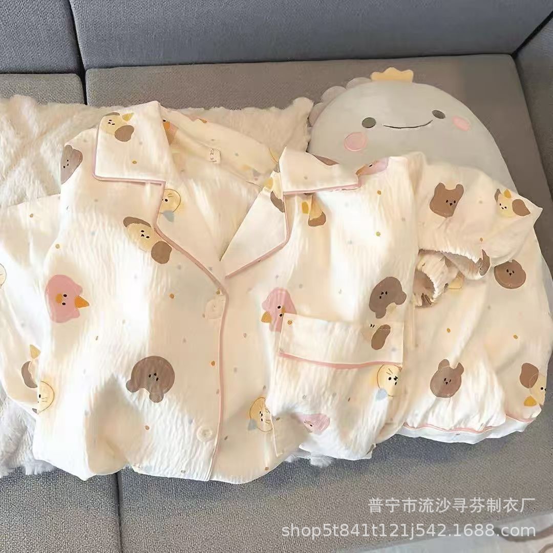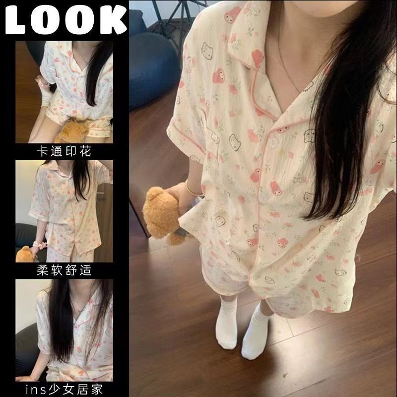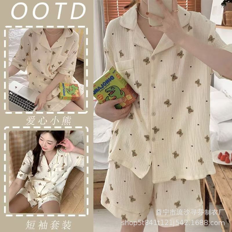 구름면 잠옷 여성의 여름 얇은 곰 반팔 반바지 소녀 귀여운 만화 겉옷 홈 세트스토어 가기