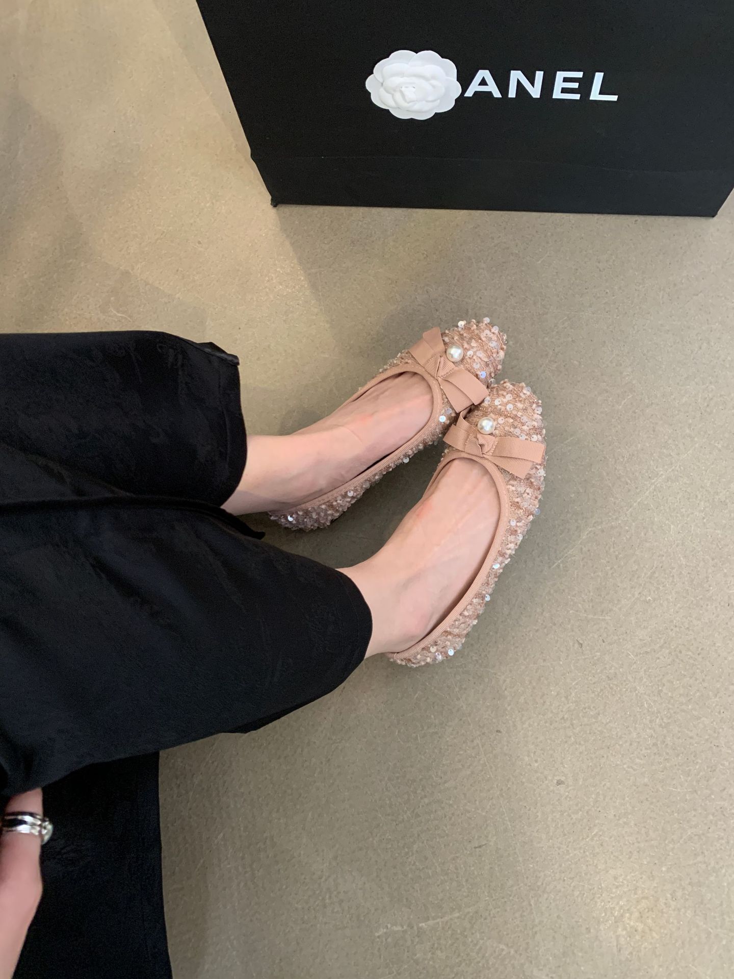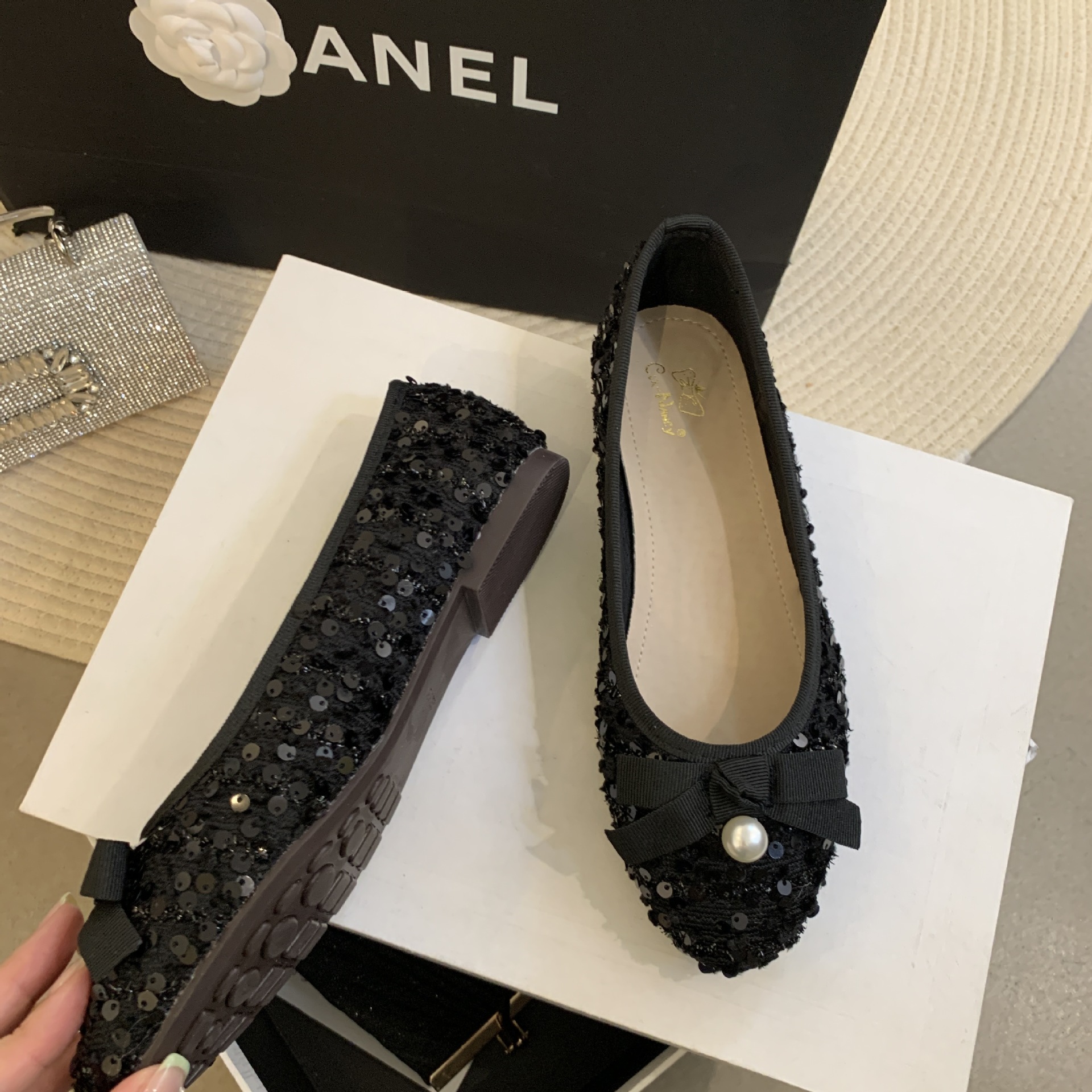 2024 가을과 겨울 새로운 활 라운드 머리 속편 샤넬 스타일 로우 입 올 매치 메리 제인 로우 힐 여성 플랫 신발스토어 가기