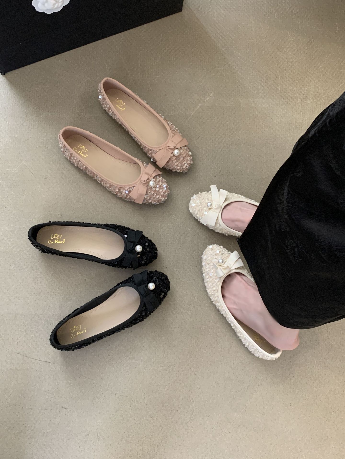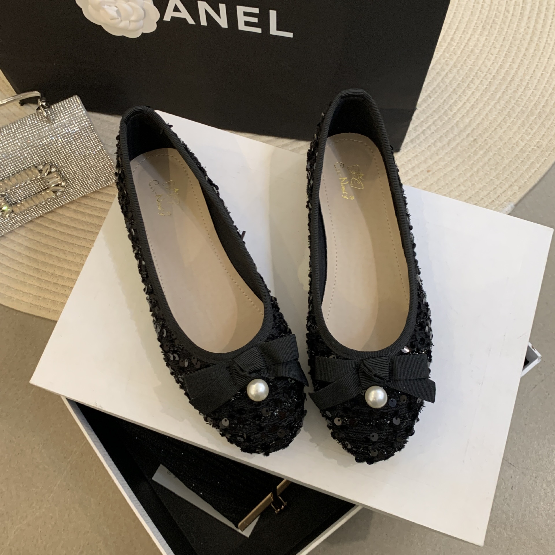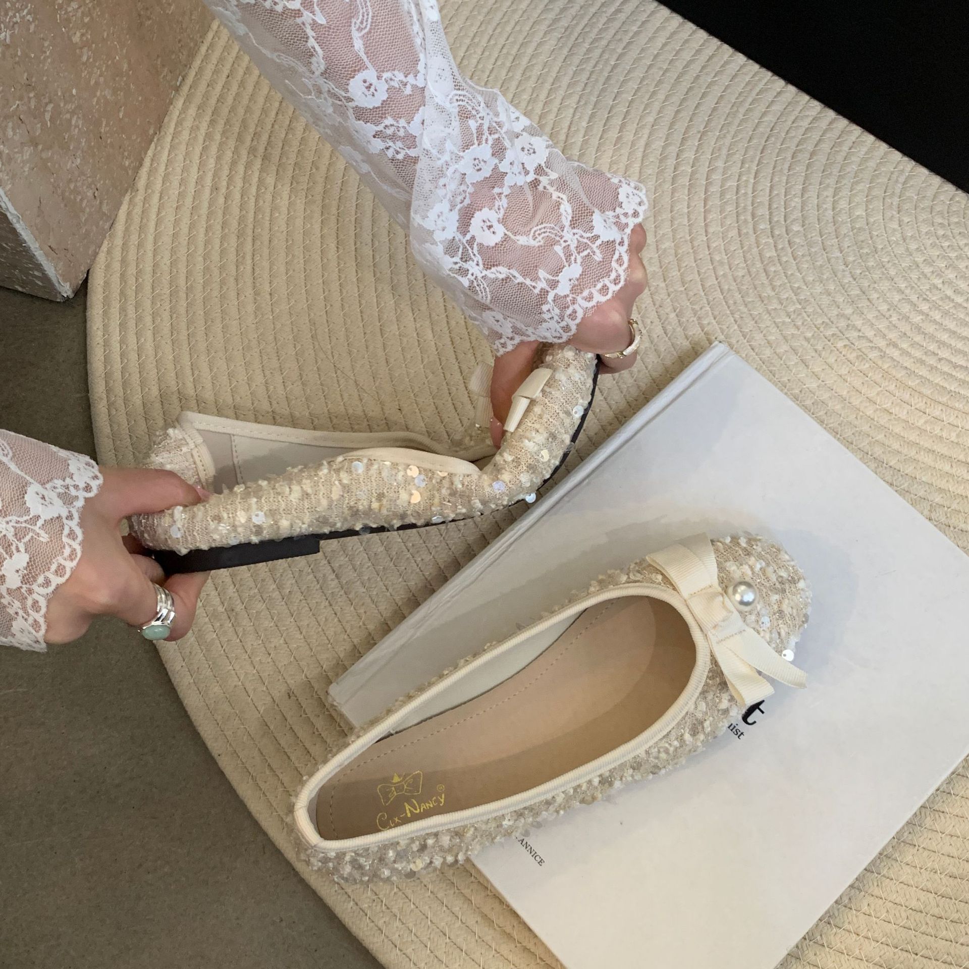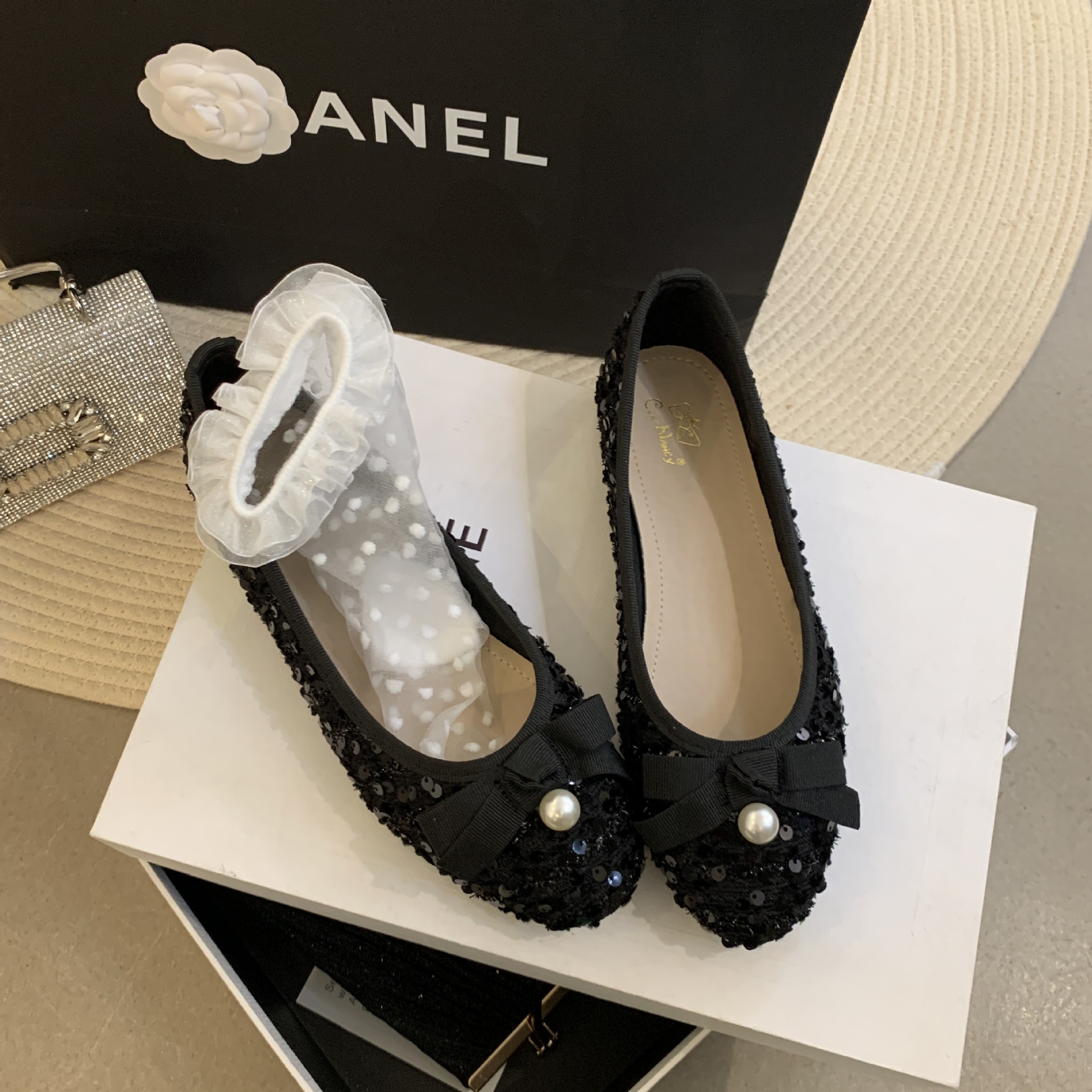 2024 가을과 겨울 새로운 활 라운드 머리 속편 샤넬 스타일 로우 입 올 매치 메리 제인 로우 힐 여성 플랫 신발
