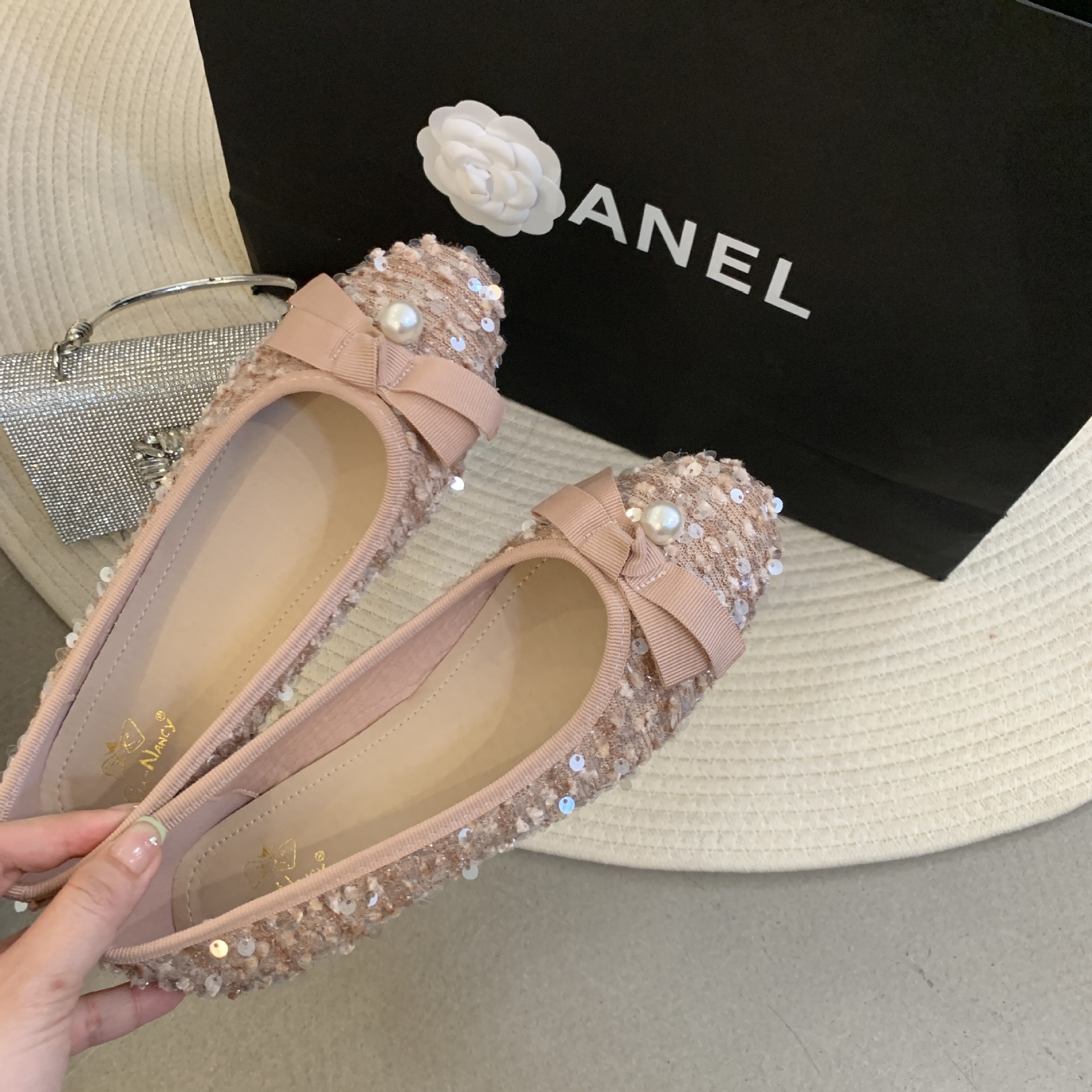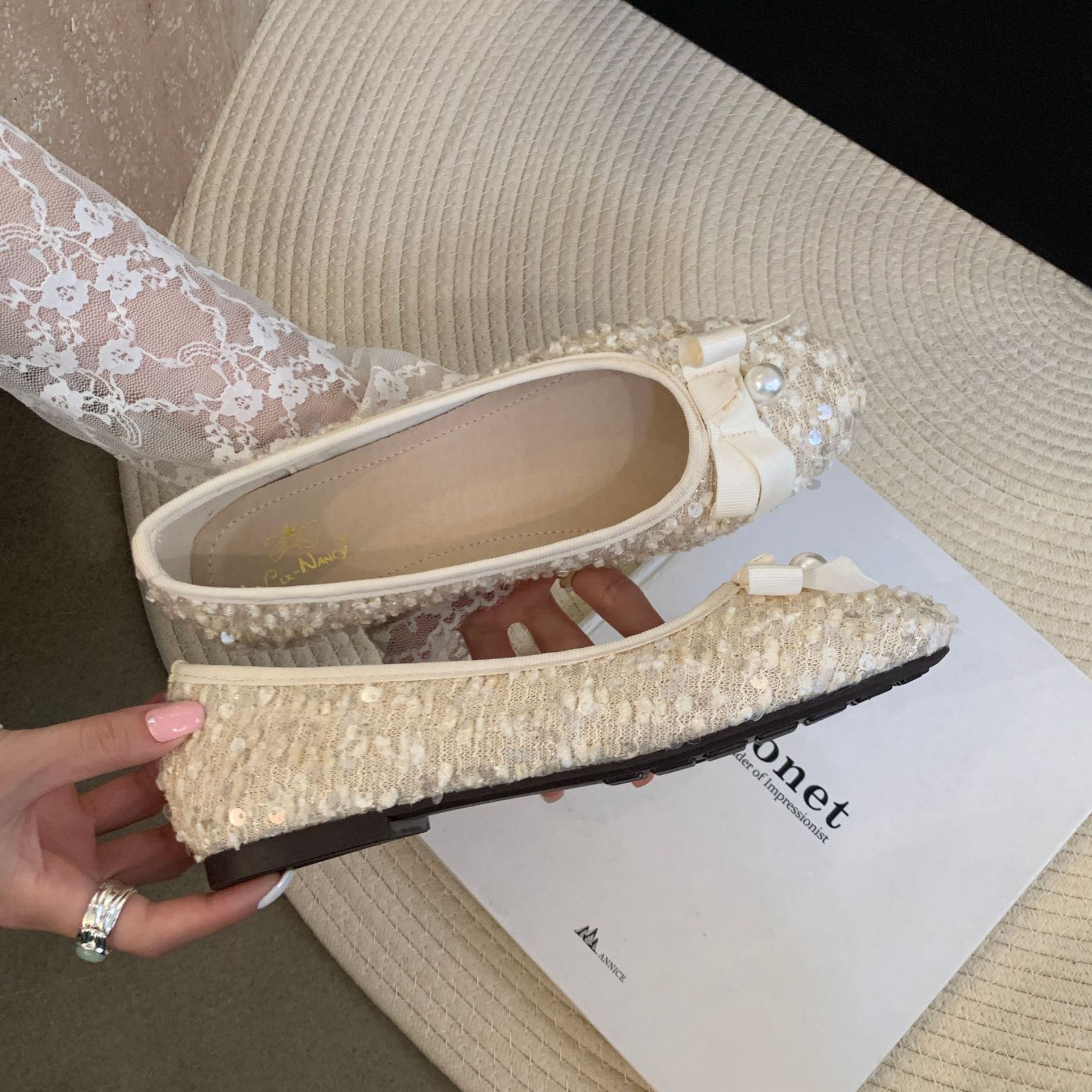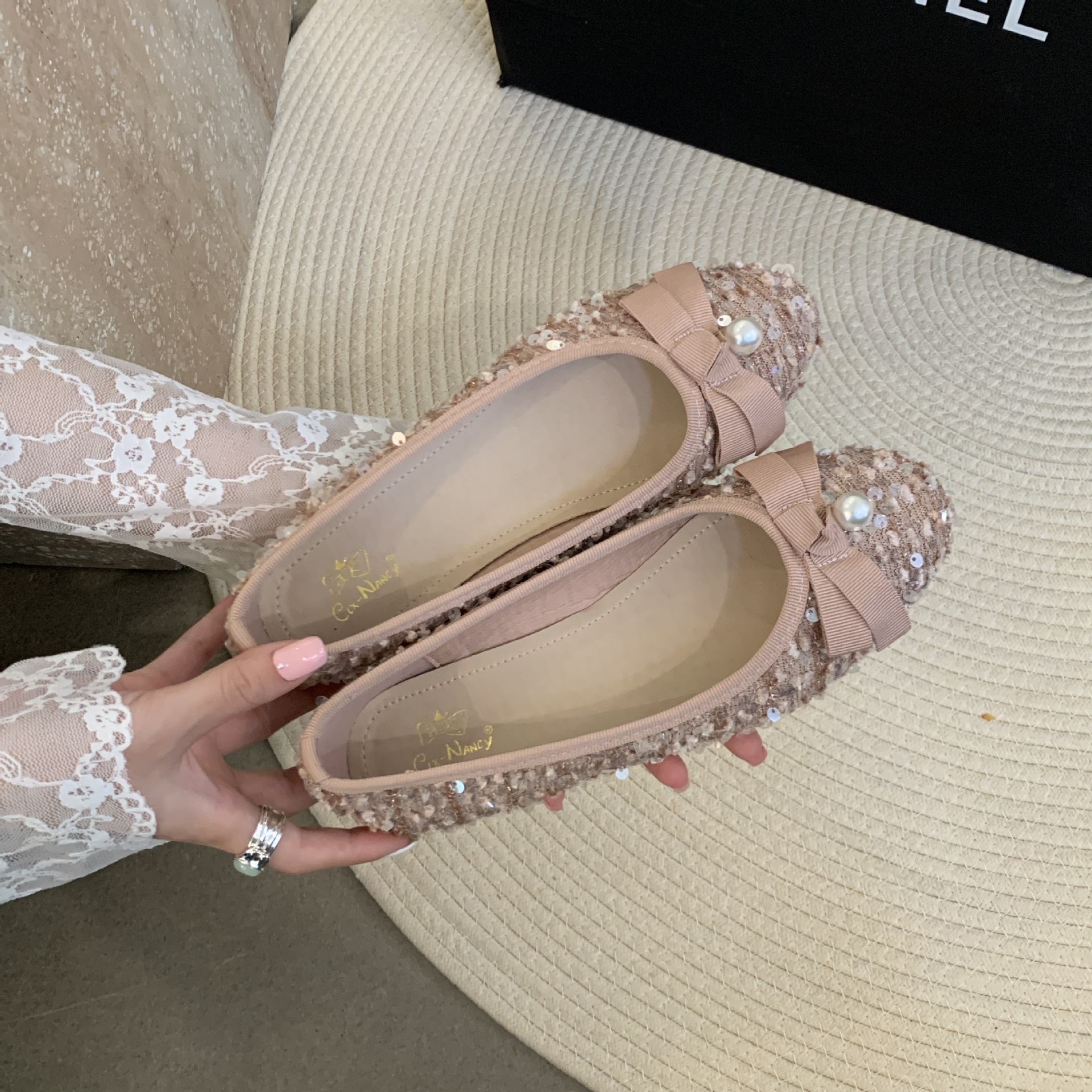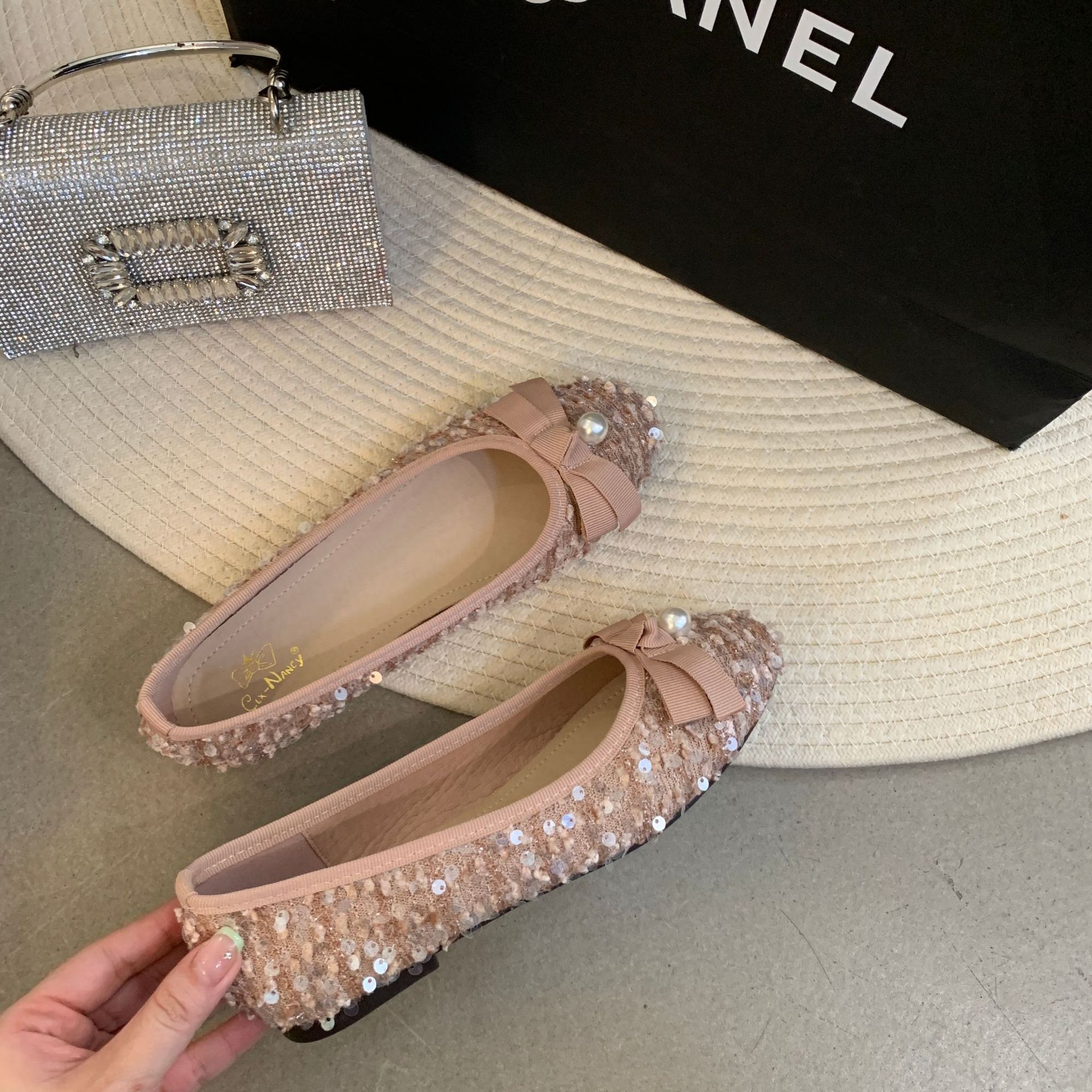 2024 가을과 겨울 새로운 활 라운드 머리 속편 샤넬 스타일 로우 입 올 매치 메리 제인 로우 힐 여성 플랫 신발