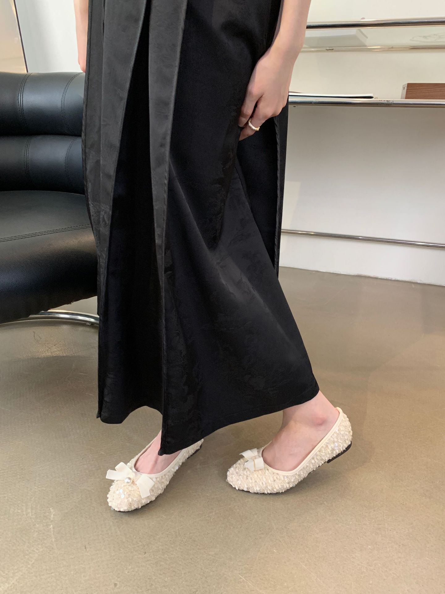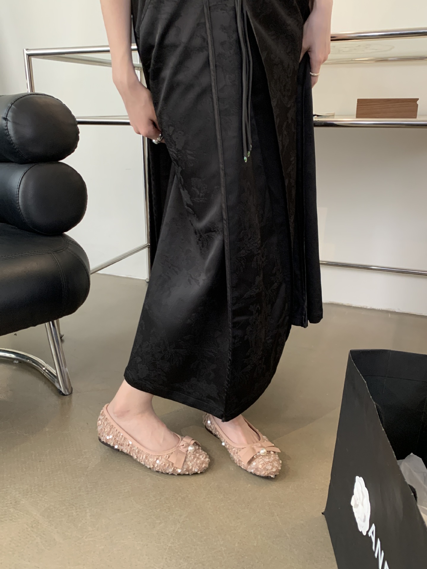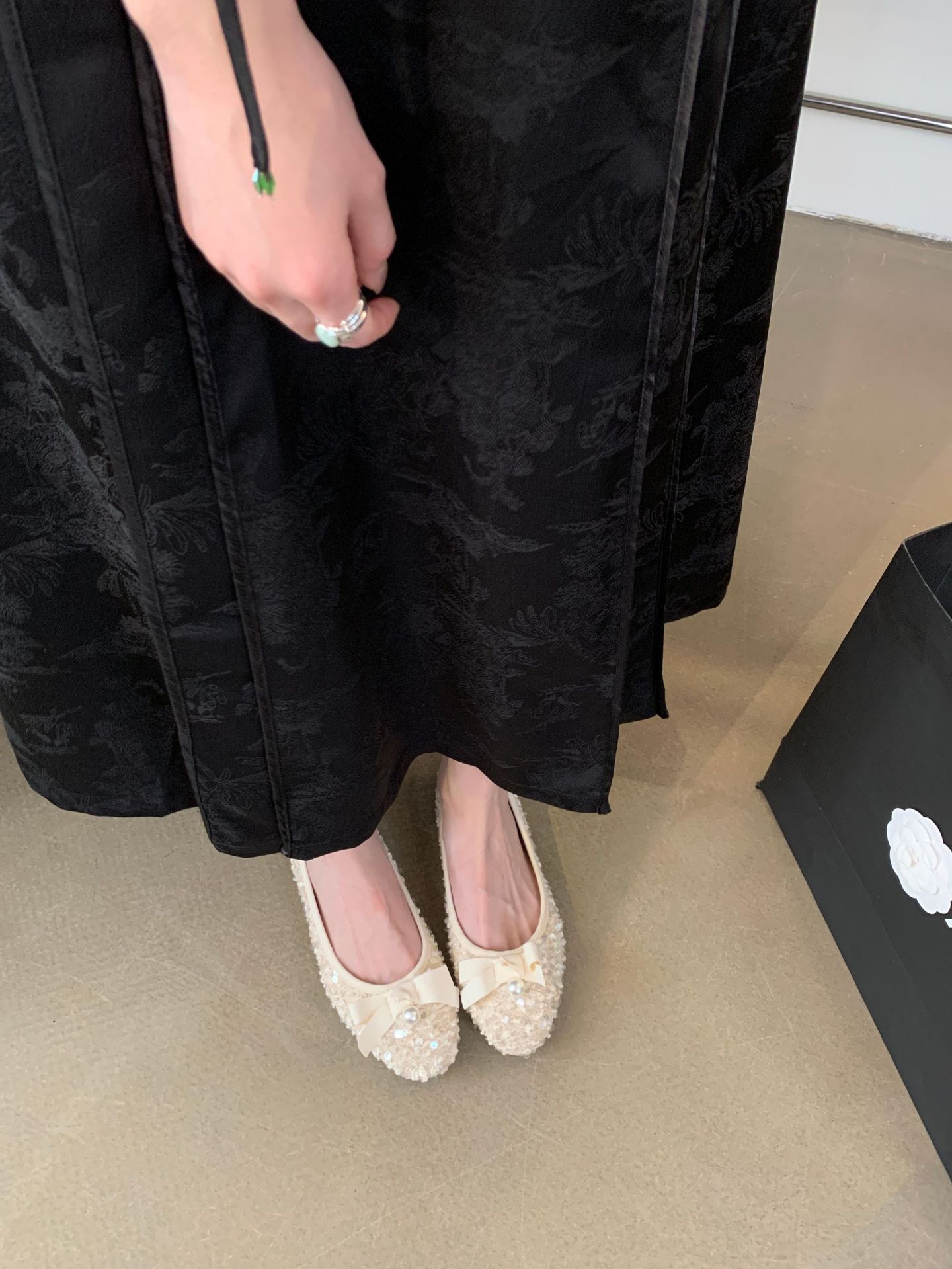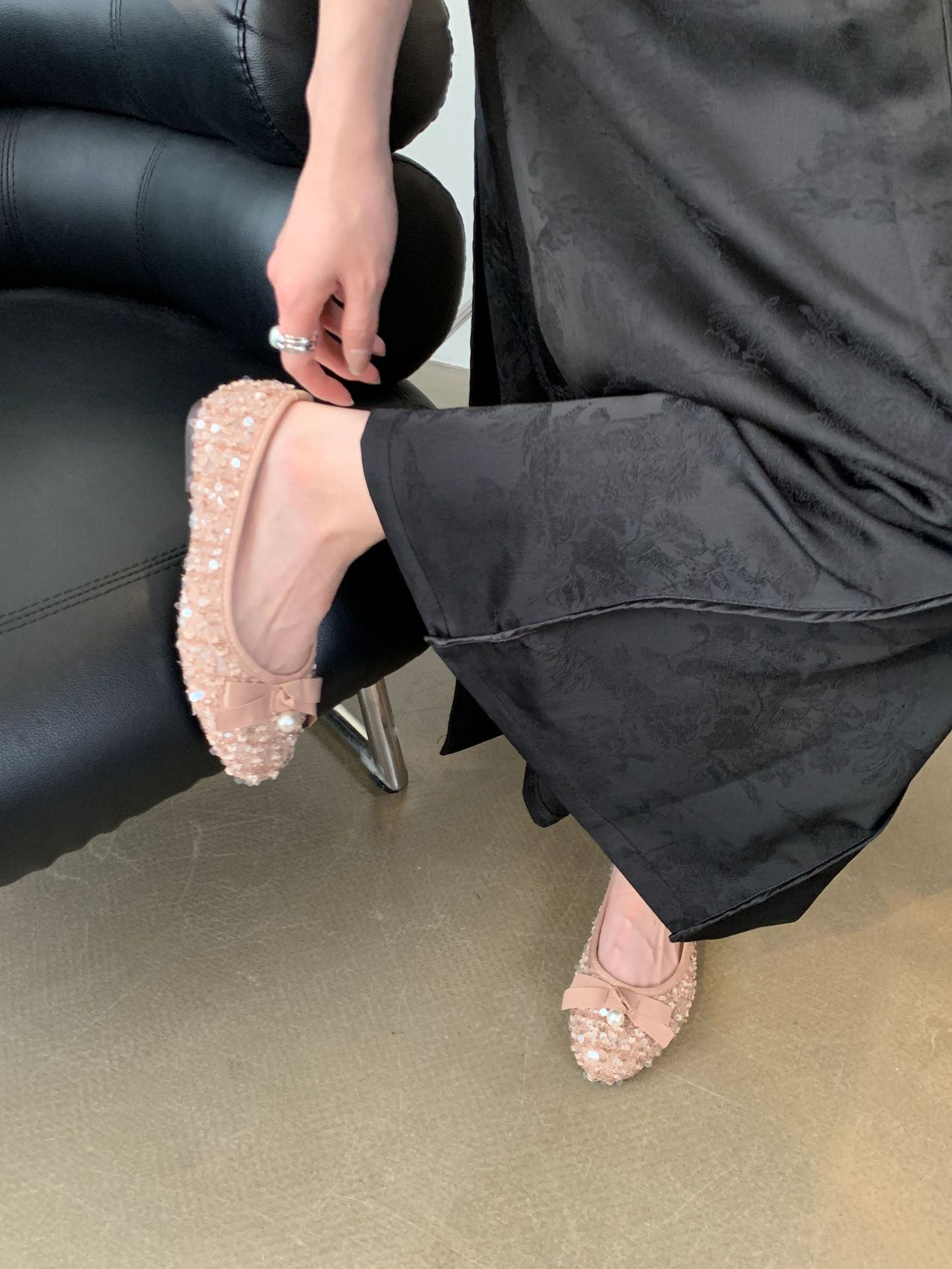2024 가을과 겨울 새로운 활 라운드 머리 속편 샤넬 스타일 로우 입 올 매치 메리 제인 로우 힐 여성 플랫 신발