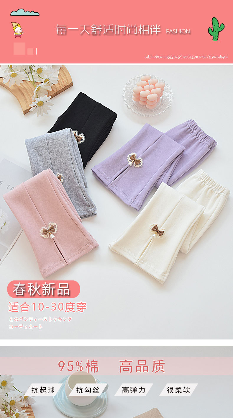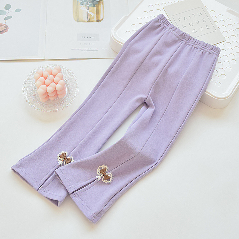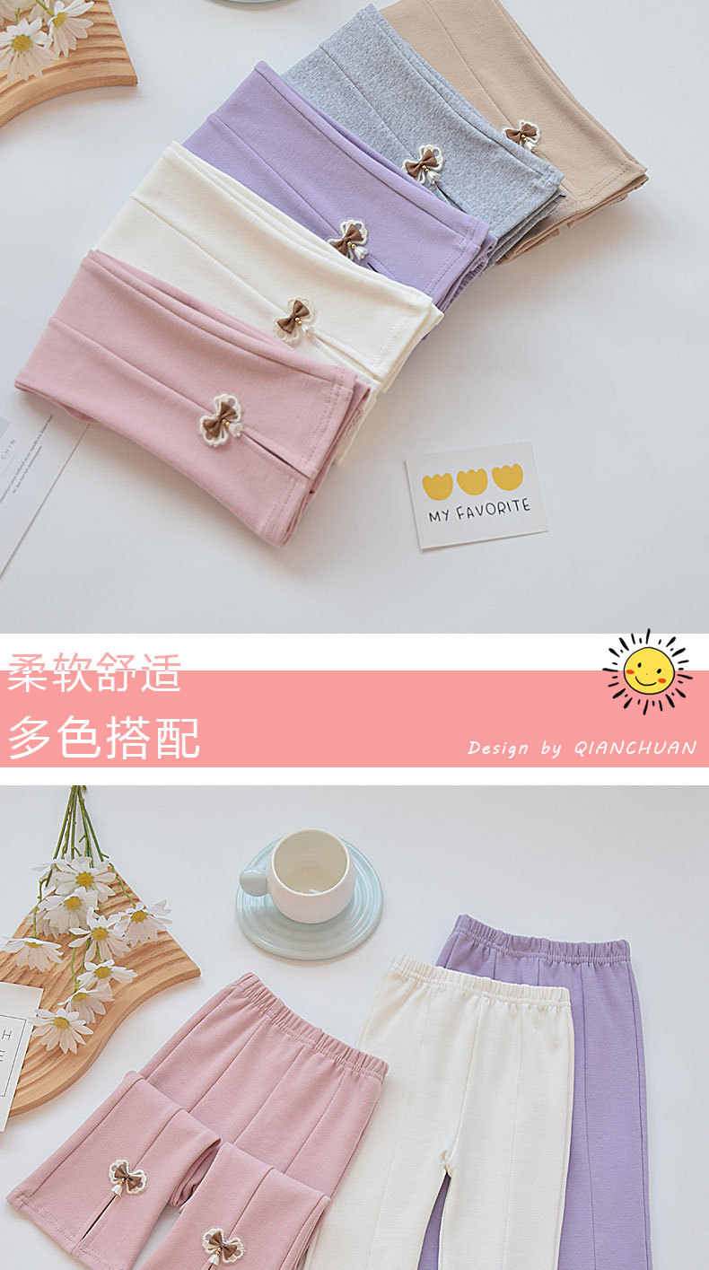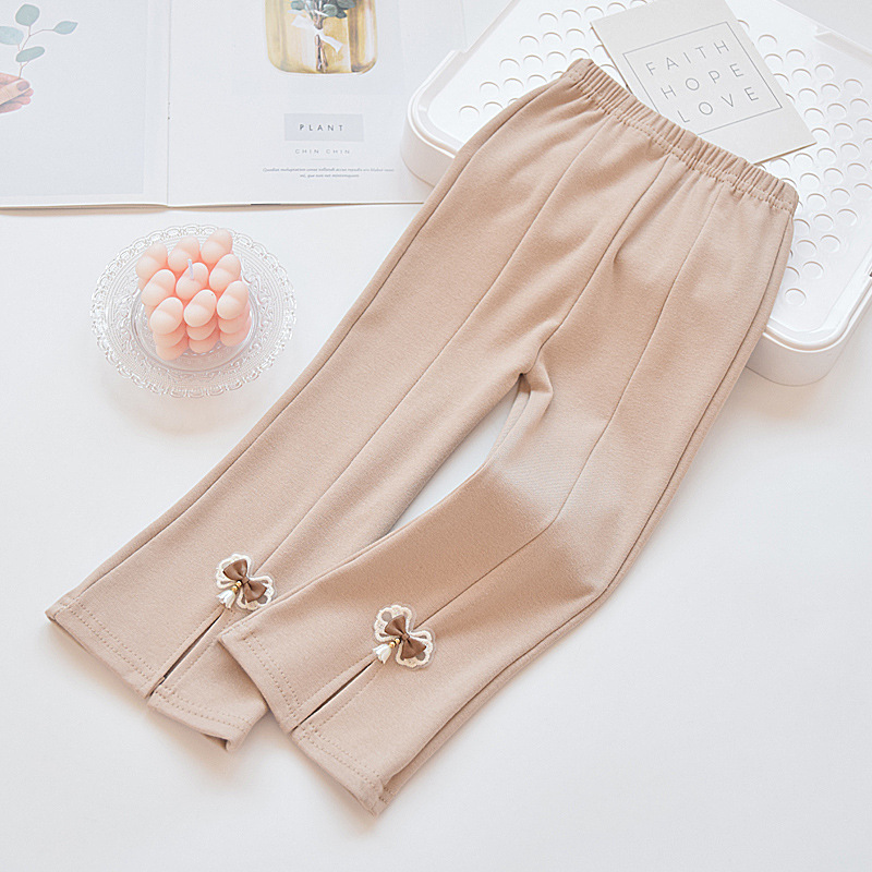 소녀 꽃 무늬 바지 봄과 가을 순면 새 봄 착용 어린 소녀의 탄력 있는 얇은 보토밍 바지 어린이 슬릿 바지