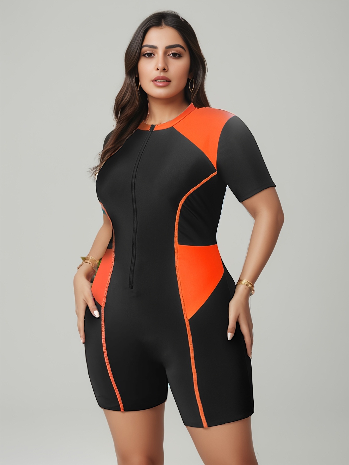 유럽과 미국의 국경 간 새로운 플러스 사이즈 수영복 보수적 슬리밍 지퍼 반팔 반바지 레이싱 원피스 수영복스토어 가기