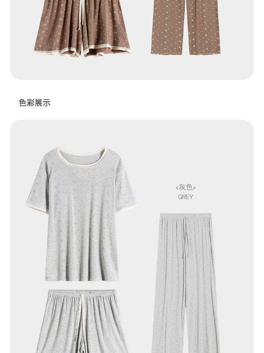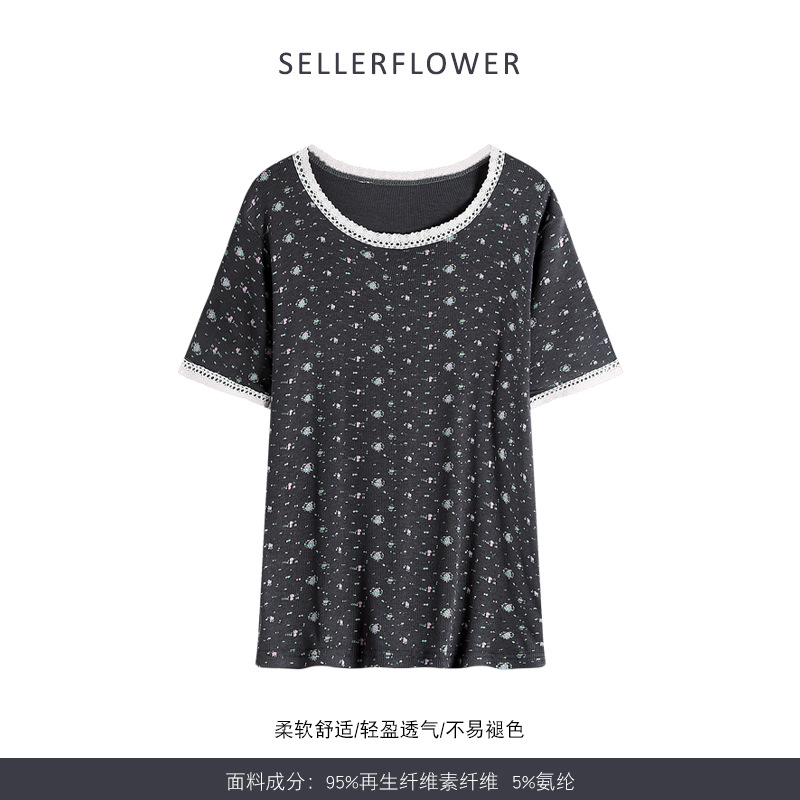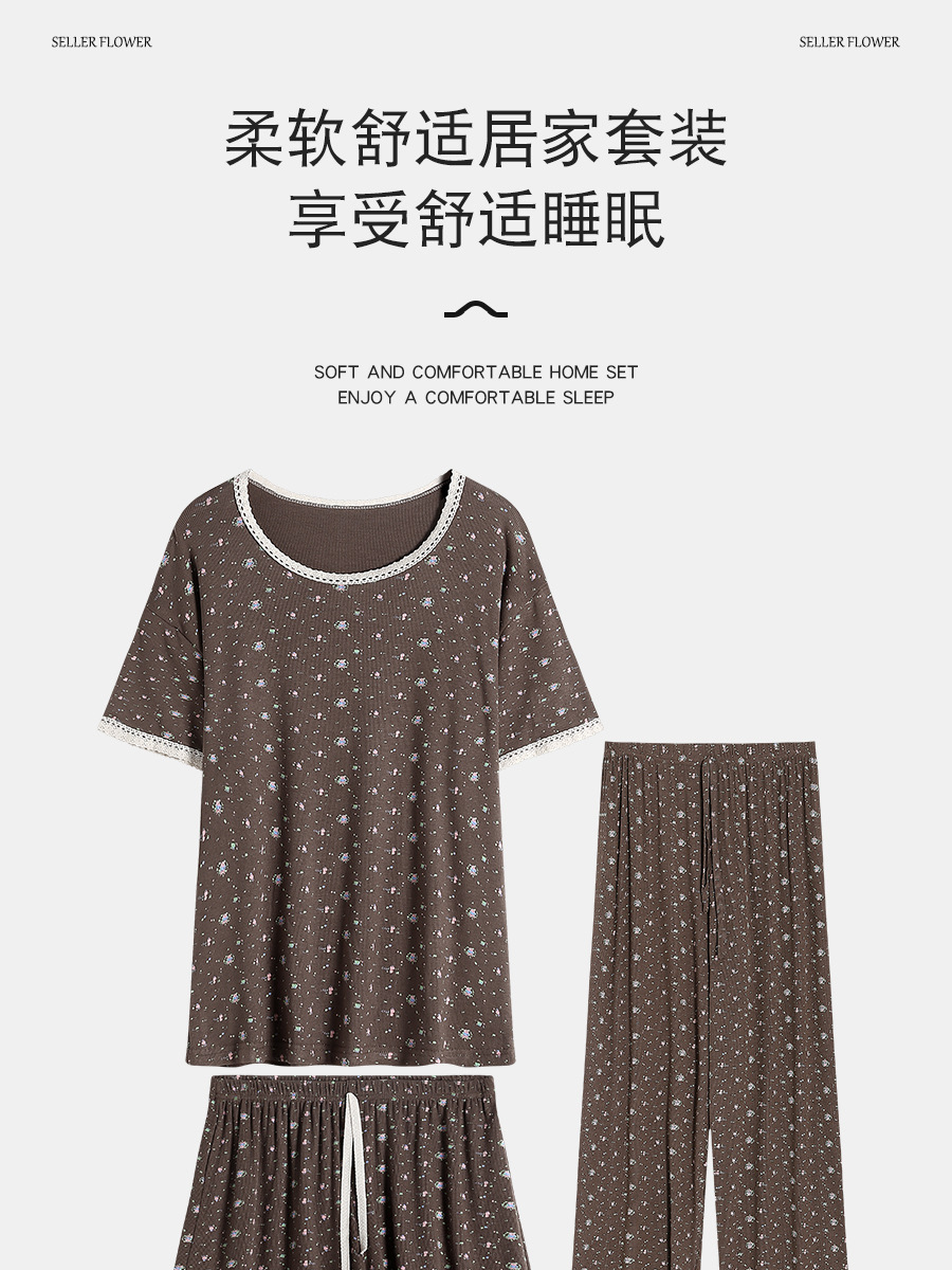 한국 스타일 작은 꽃 파자마 리브 모달 여름 여성 홈 옷 레이스 인쇄 패션 폭발 세트 플러스 사이즈