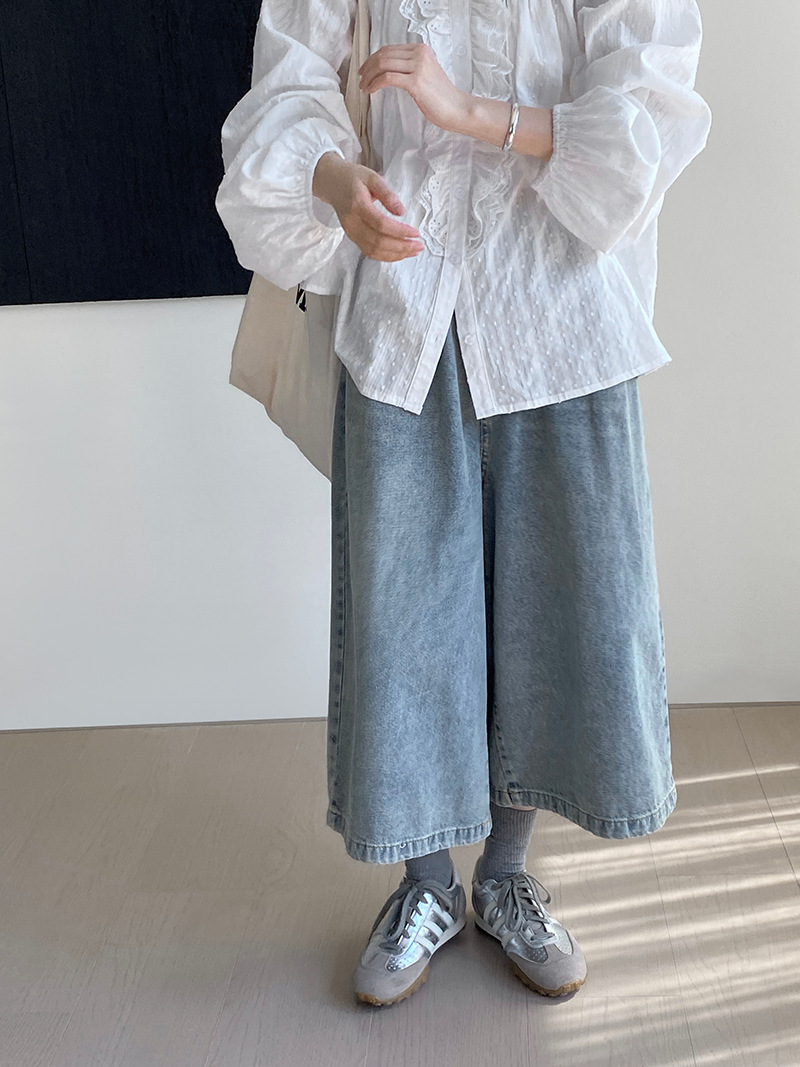 일본 복고풍 느슨한 와이드 레그 크롭 팬츠 여성용 조커 8 청바지 2566 을 입기 쉽습니다.스토어 가기