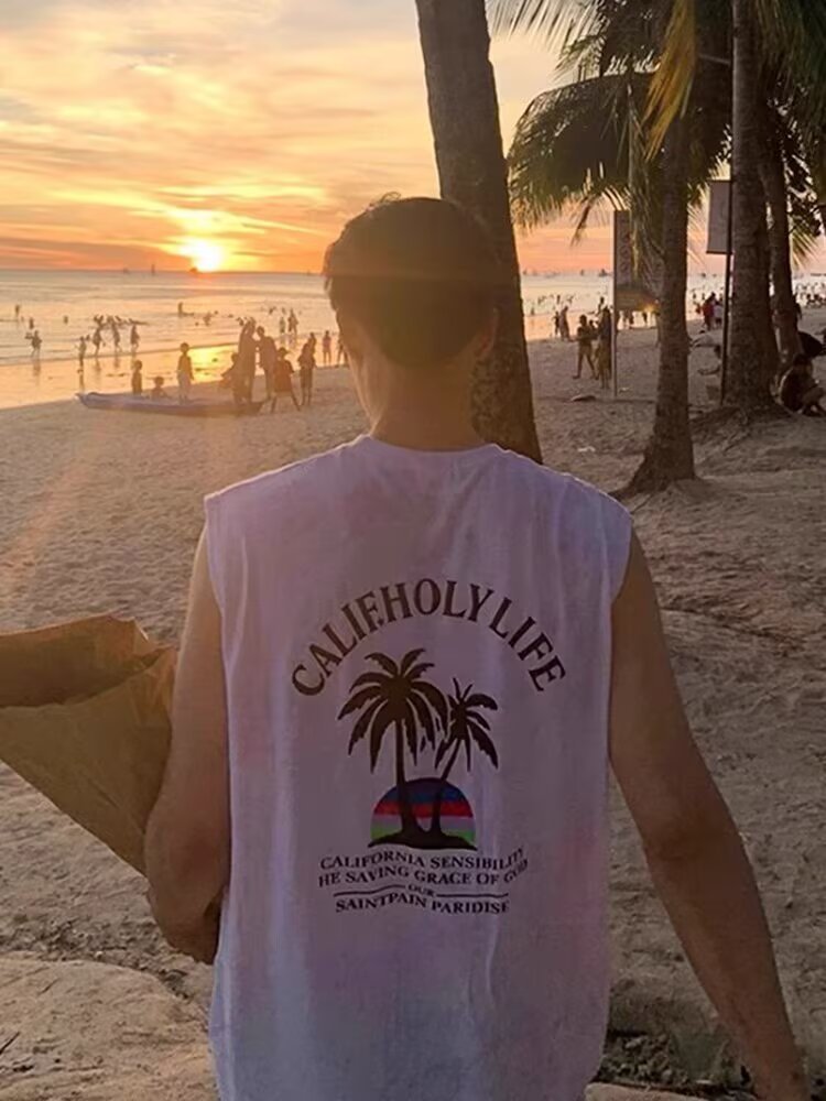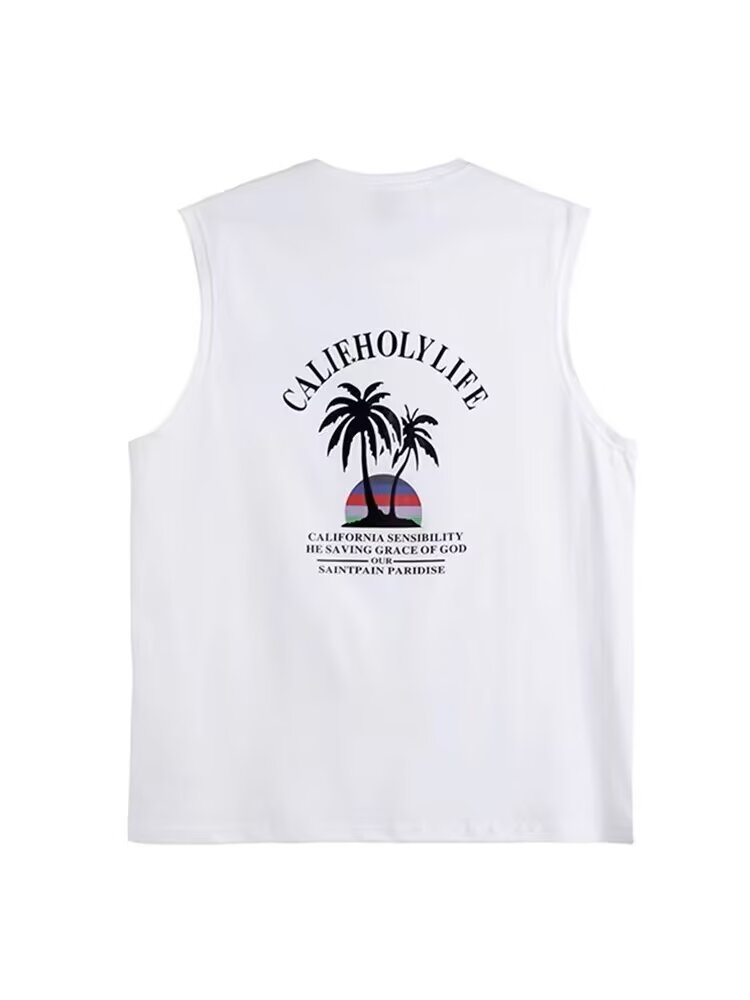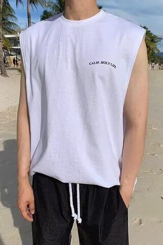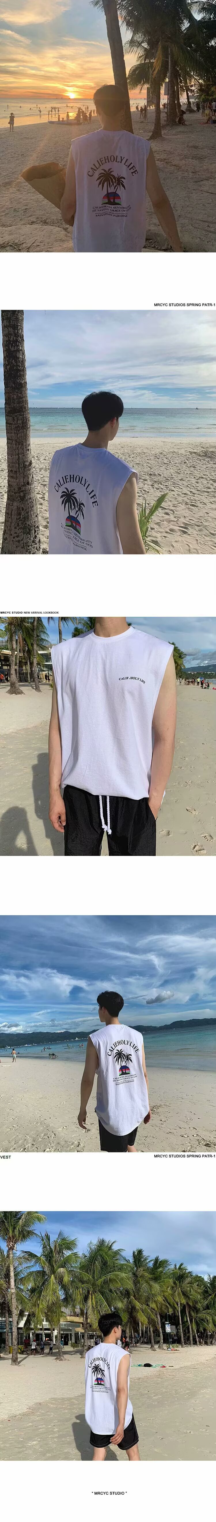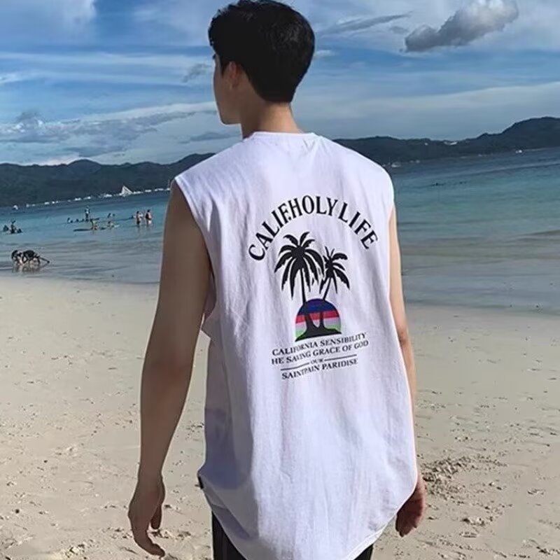 여름 뉴 남성 비치 웨이스트 코트 아메리칸 스타일 패션 브랜드 플러스 사이즈 올 매치 루즈 스포츠 민소매 티셔츠 탑스토어 가기