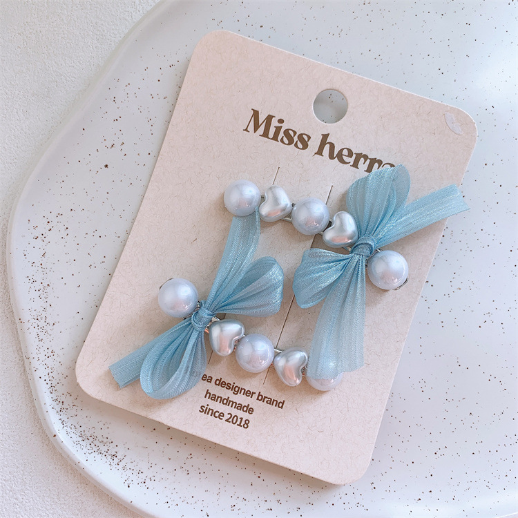 달콤한 어린이 신선한 모조 진주 사랑 활 머리띠 소녀 측면 깨진 머리 방귀 클립 쌍 머리핀스토어 가기