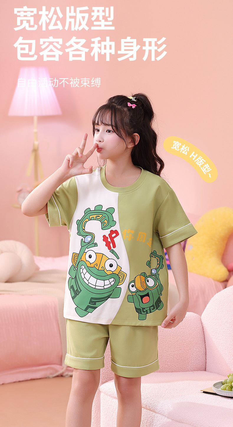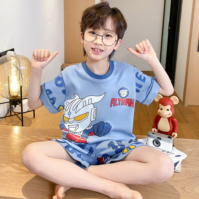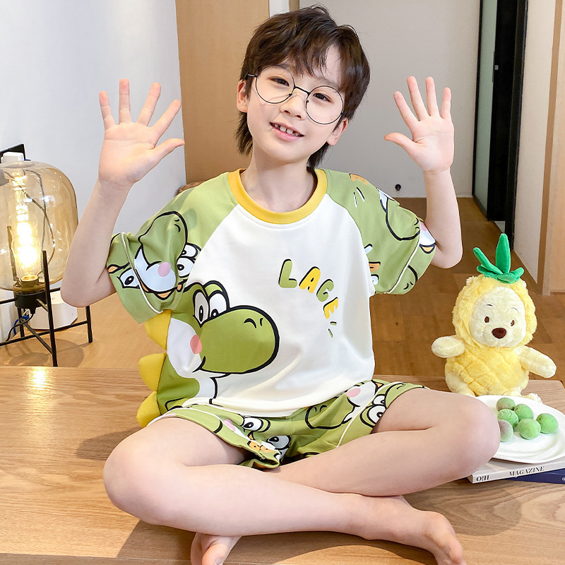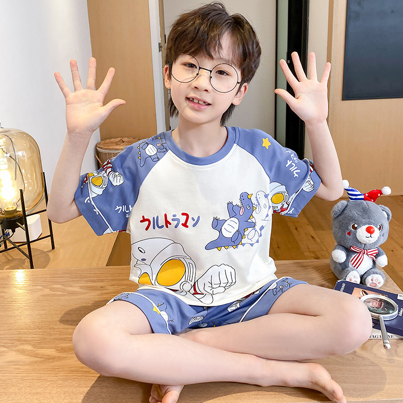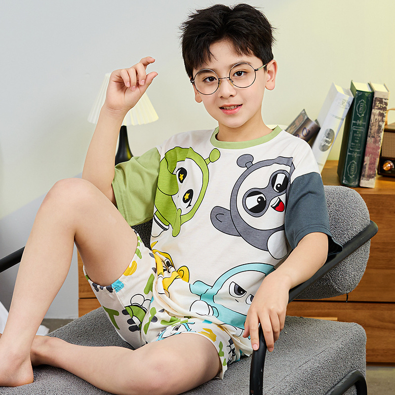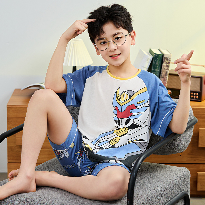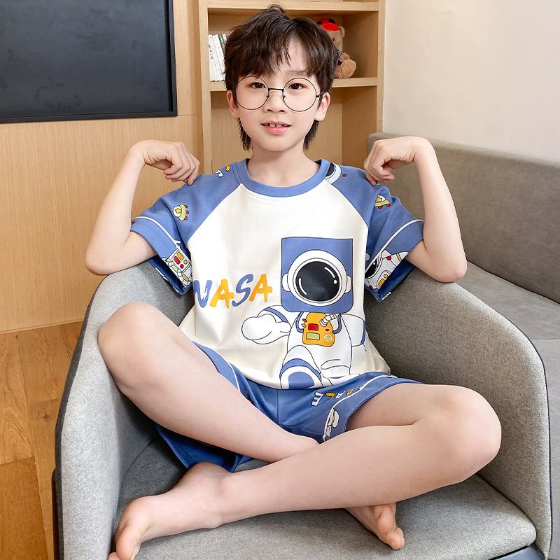 2025 새로운 어린이 잠옷 여름 반팔 얇은 양복 소년 소년 큰 어린이 청소년 가정 의류 겉옷스토어 가기