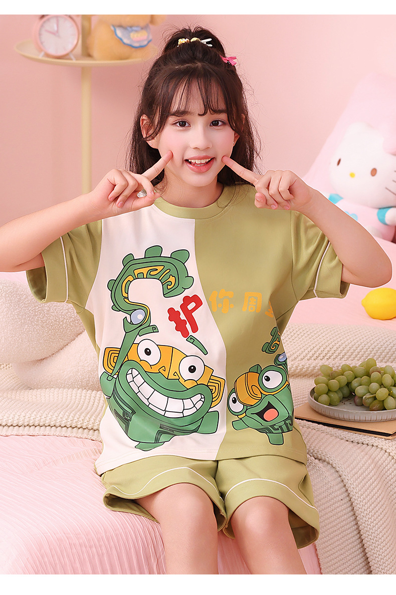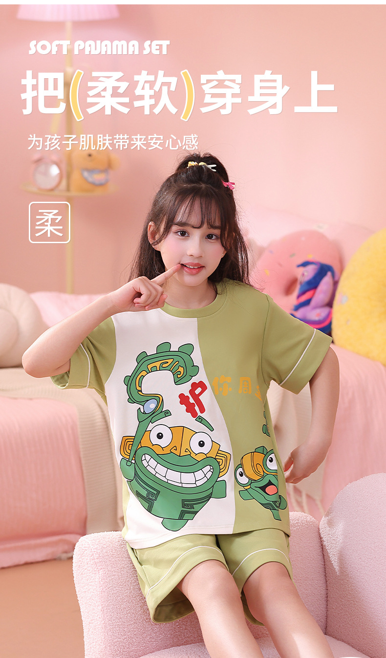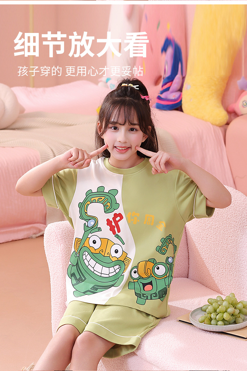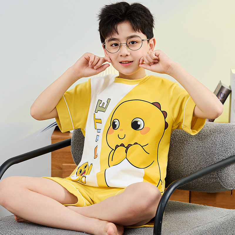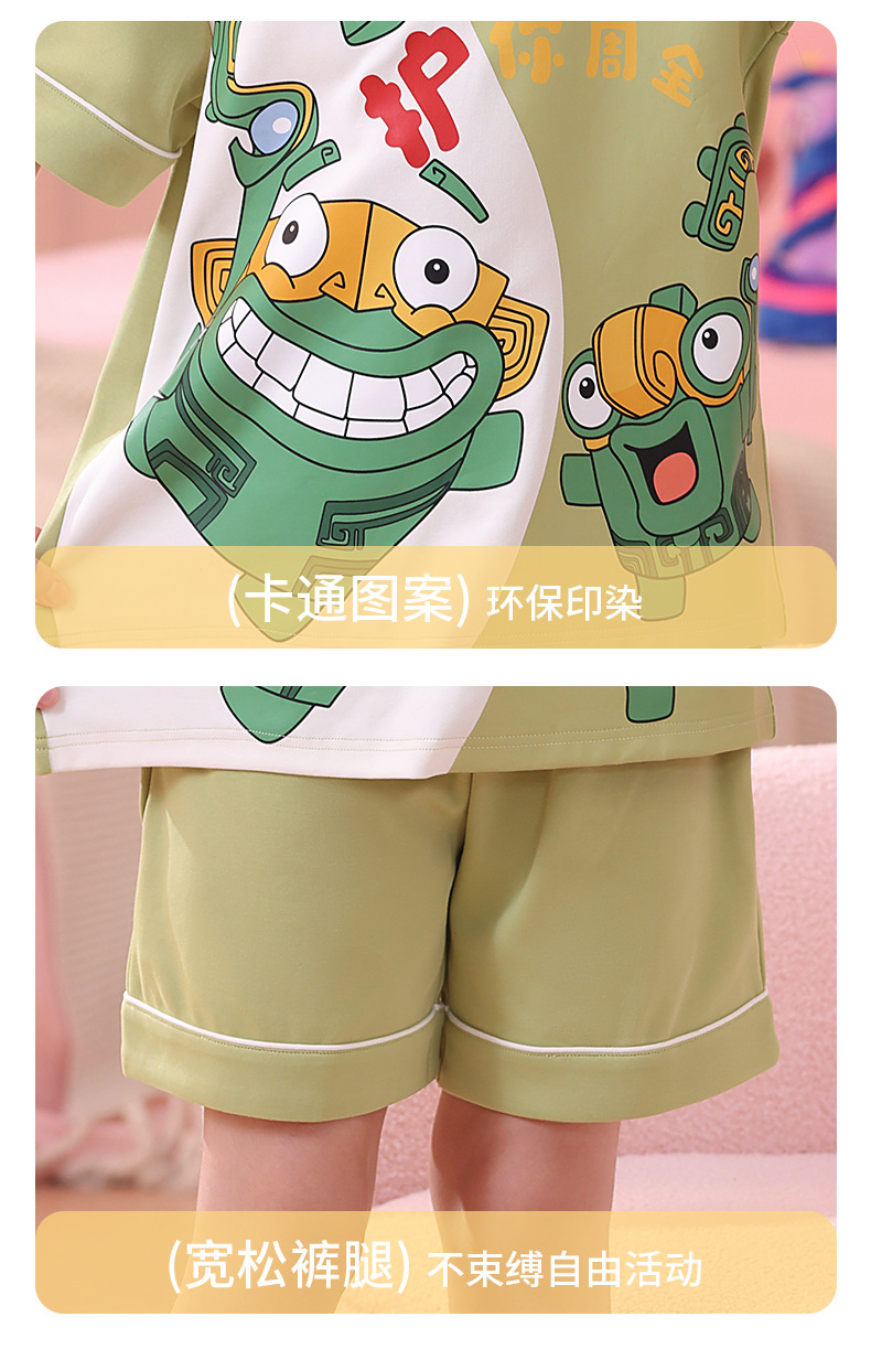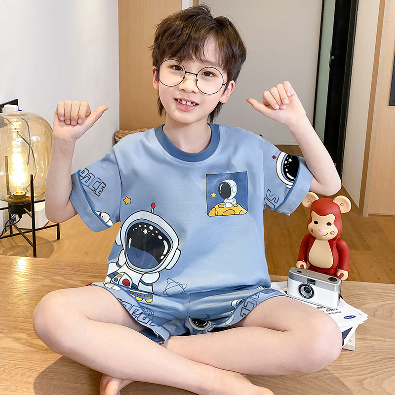2025 새로운 어린이 잠옷 여름 반팔 얇은 양복 소년 소년 큰 어린이 청소년 가정 의류 겉옷스토어 가기