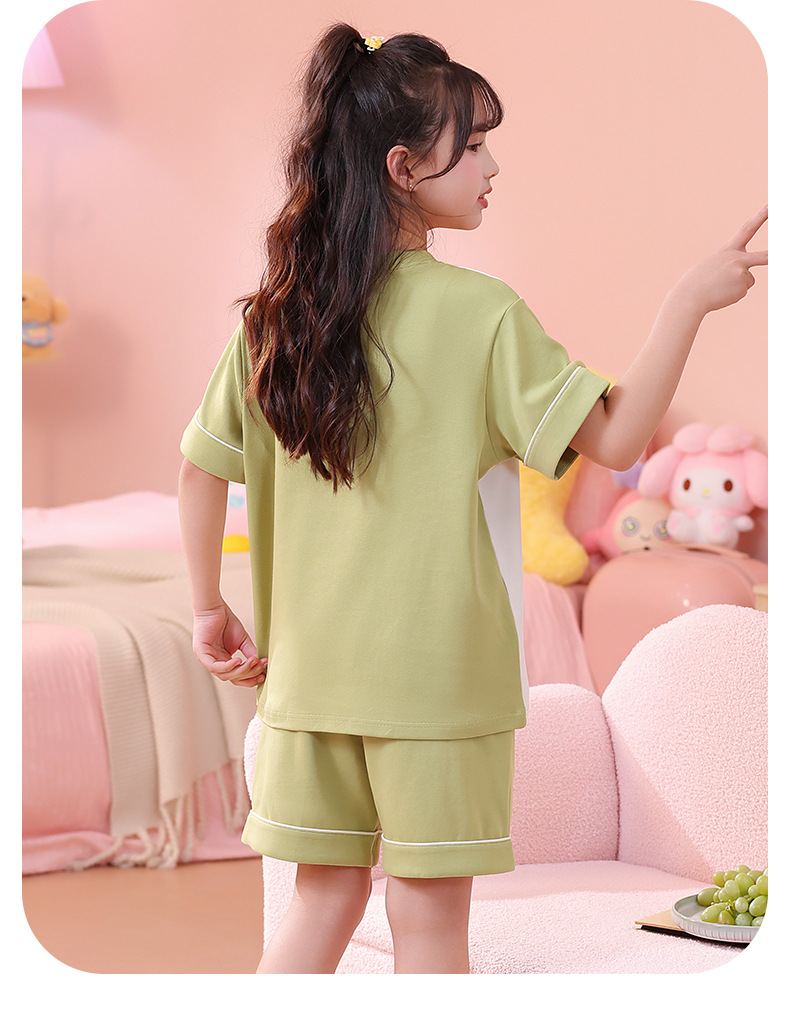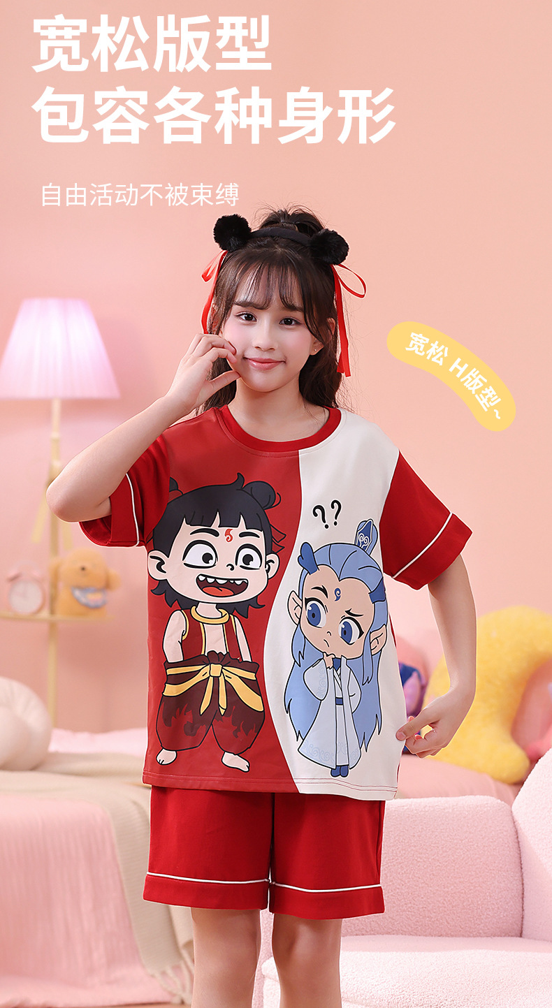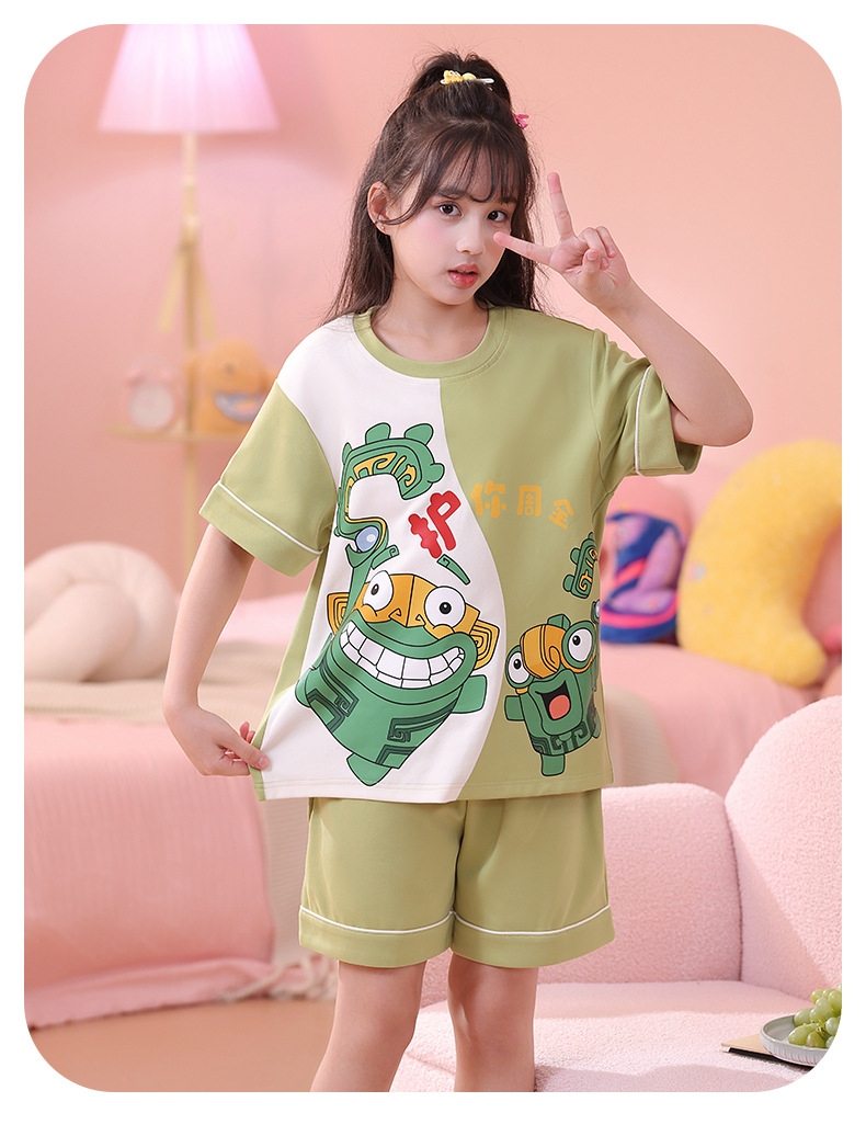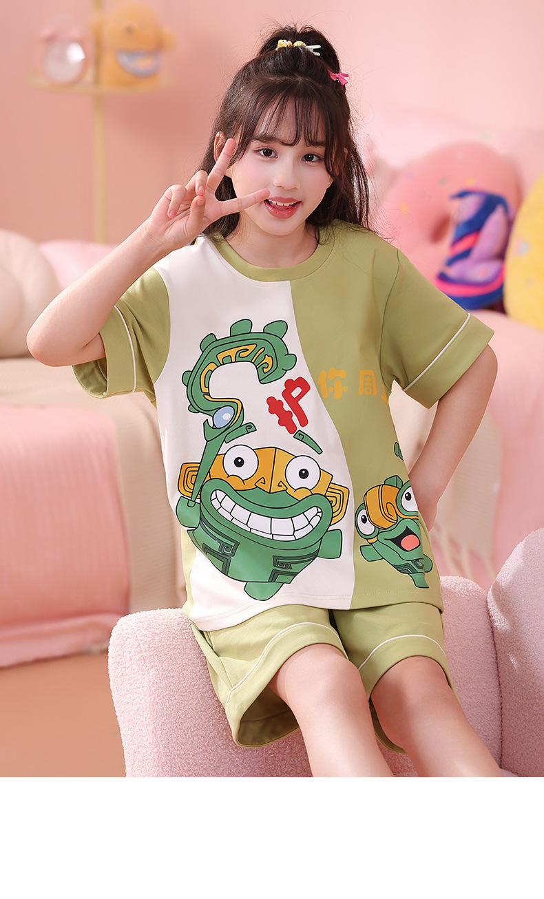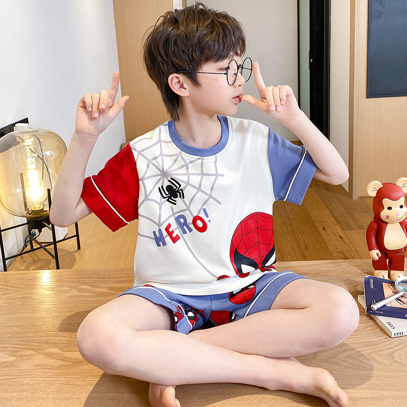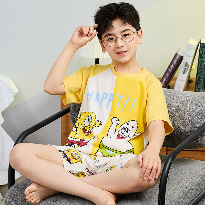 2025 새로운 어린이 잠옷 여름 반팔 얇은 양복 소년 소년 큰 어린이 청소년 가정 의류 겉옷스토어 가기