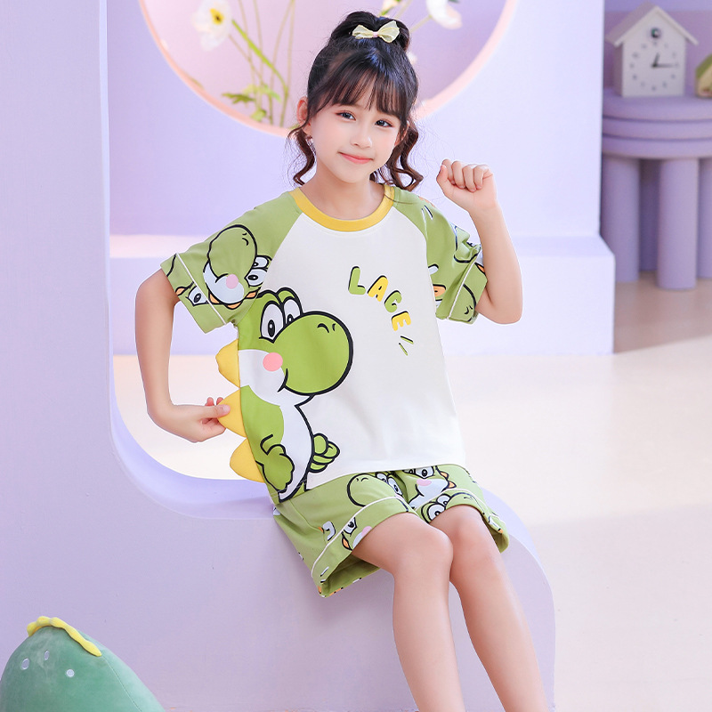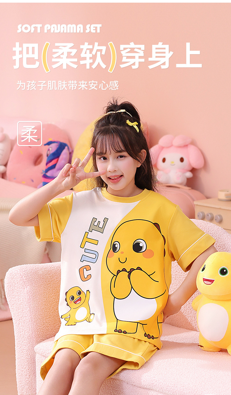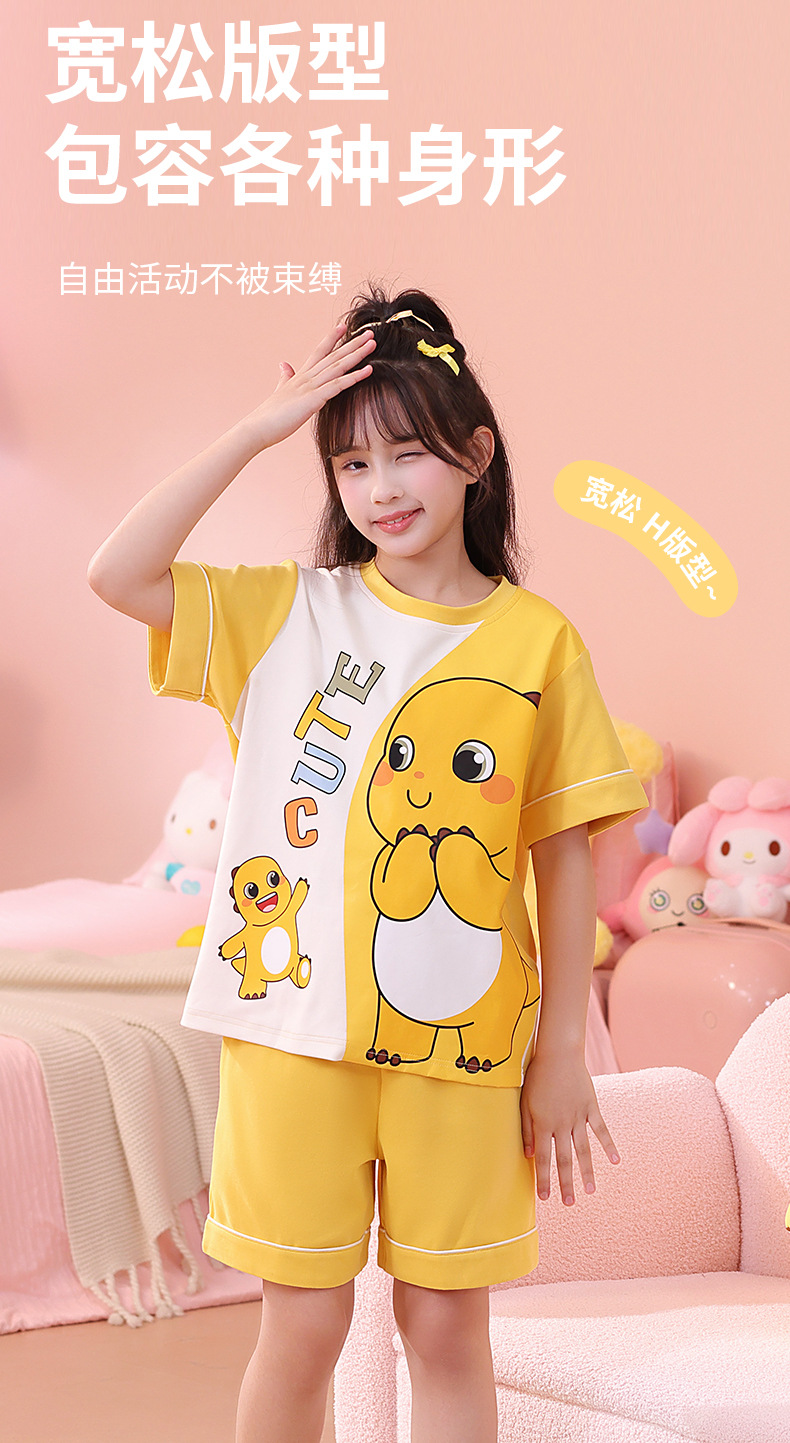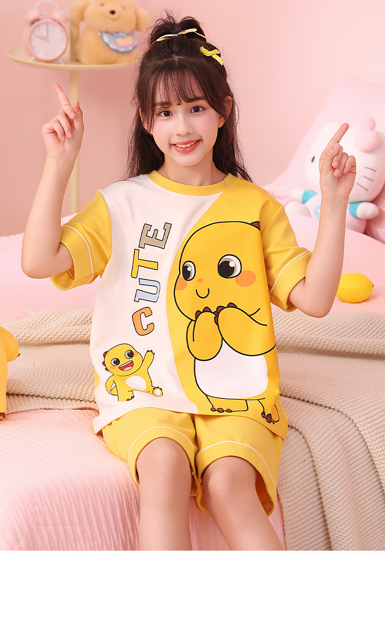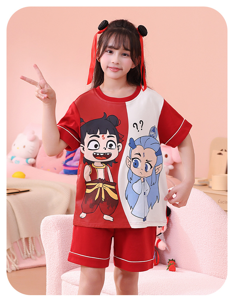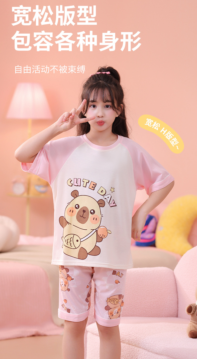 2025 새로운 어린이 잠옷 여름 반팔 얇은 양복 소년 소년 큰 어린이 청소년 가정 의류 겉옷스토어 가기