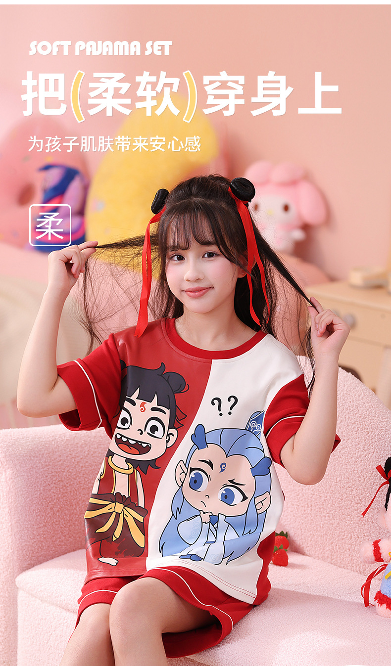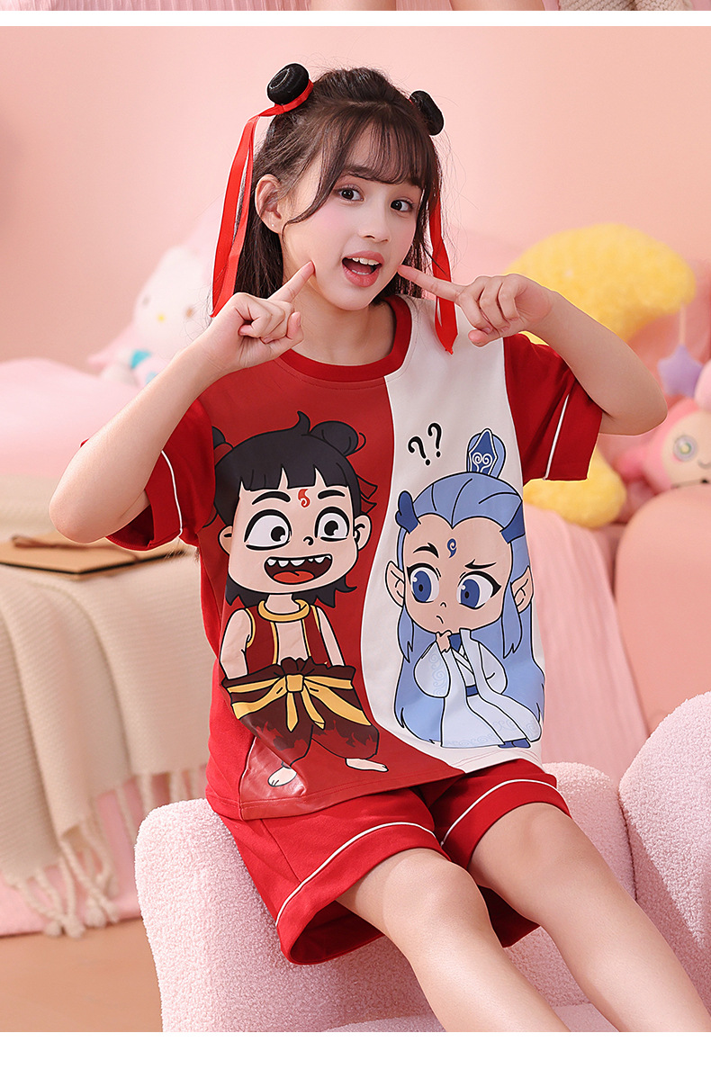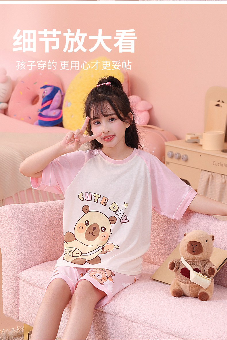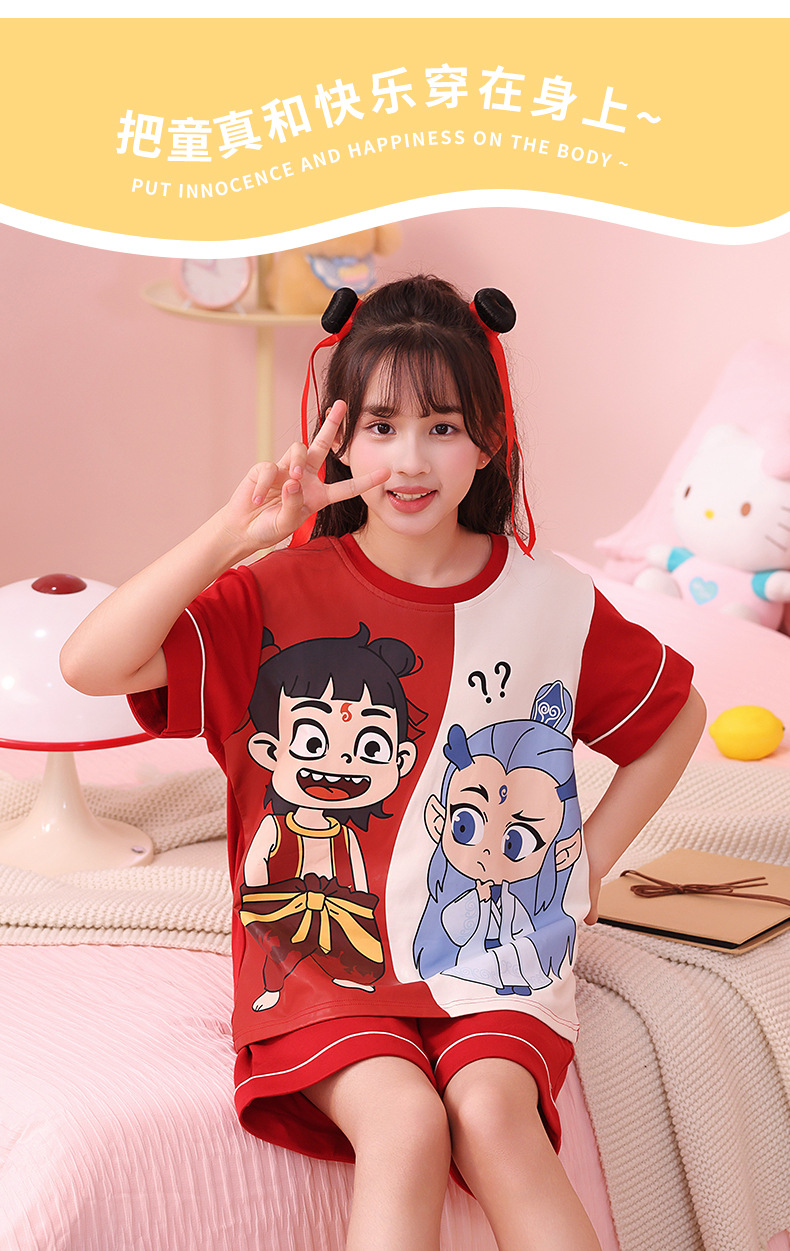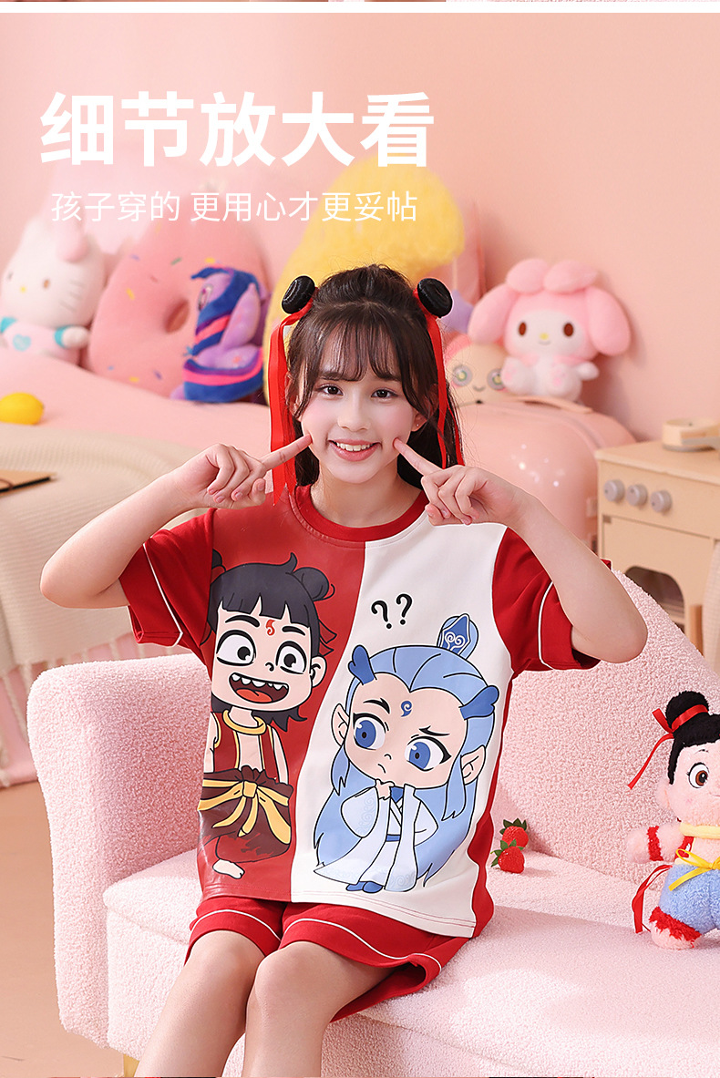 2025 새로운 어린이 잠옷 여름 반팔 얇은 양복 소년 소년 큰 어린이 청소년 가정 의류 겉옷스토어 가기