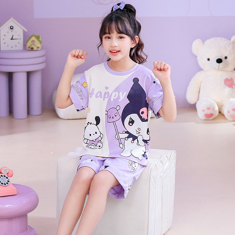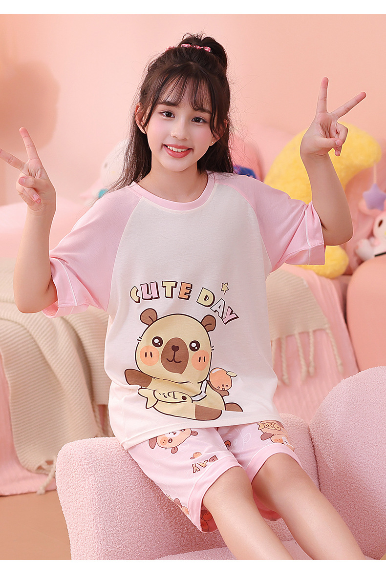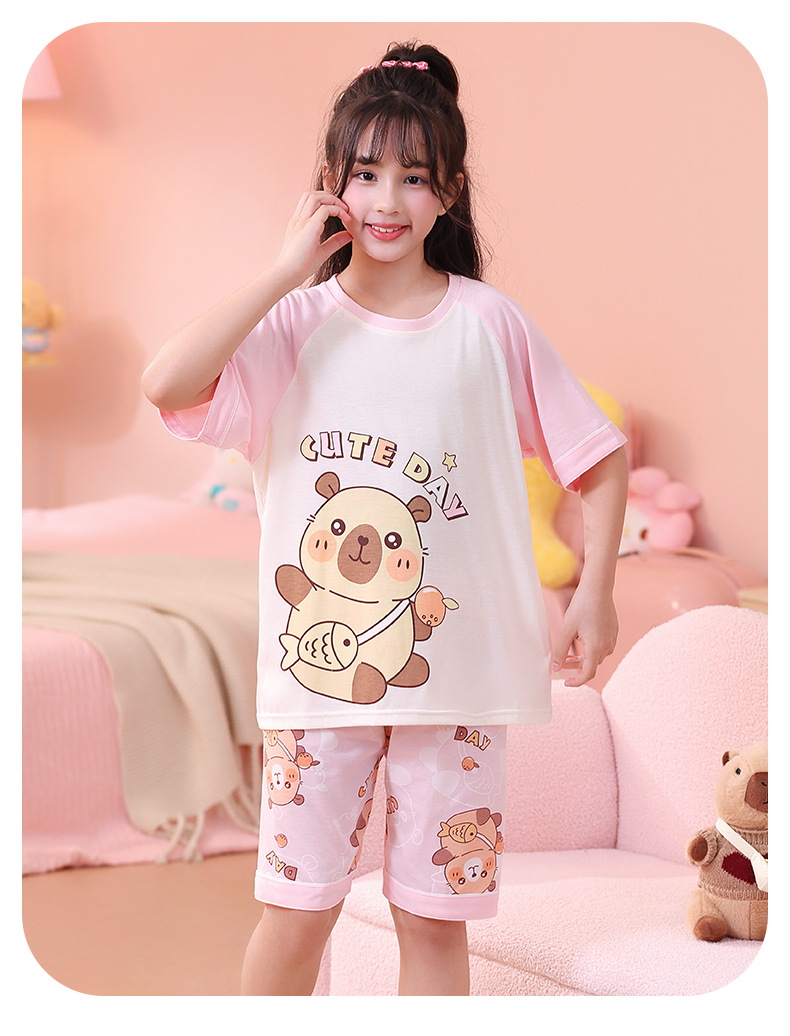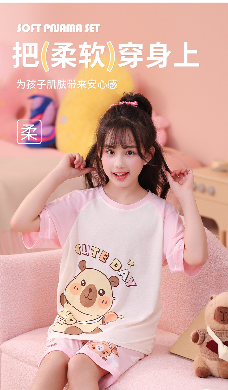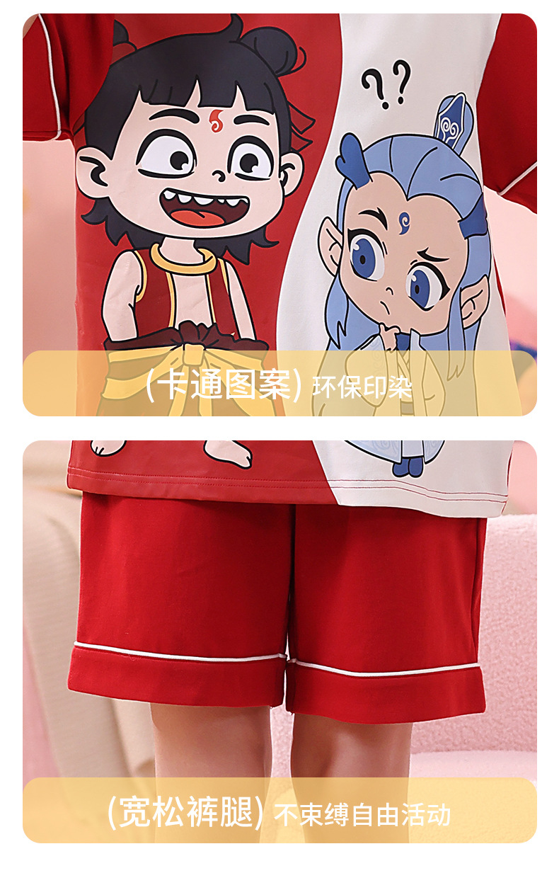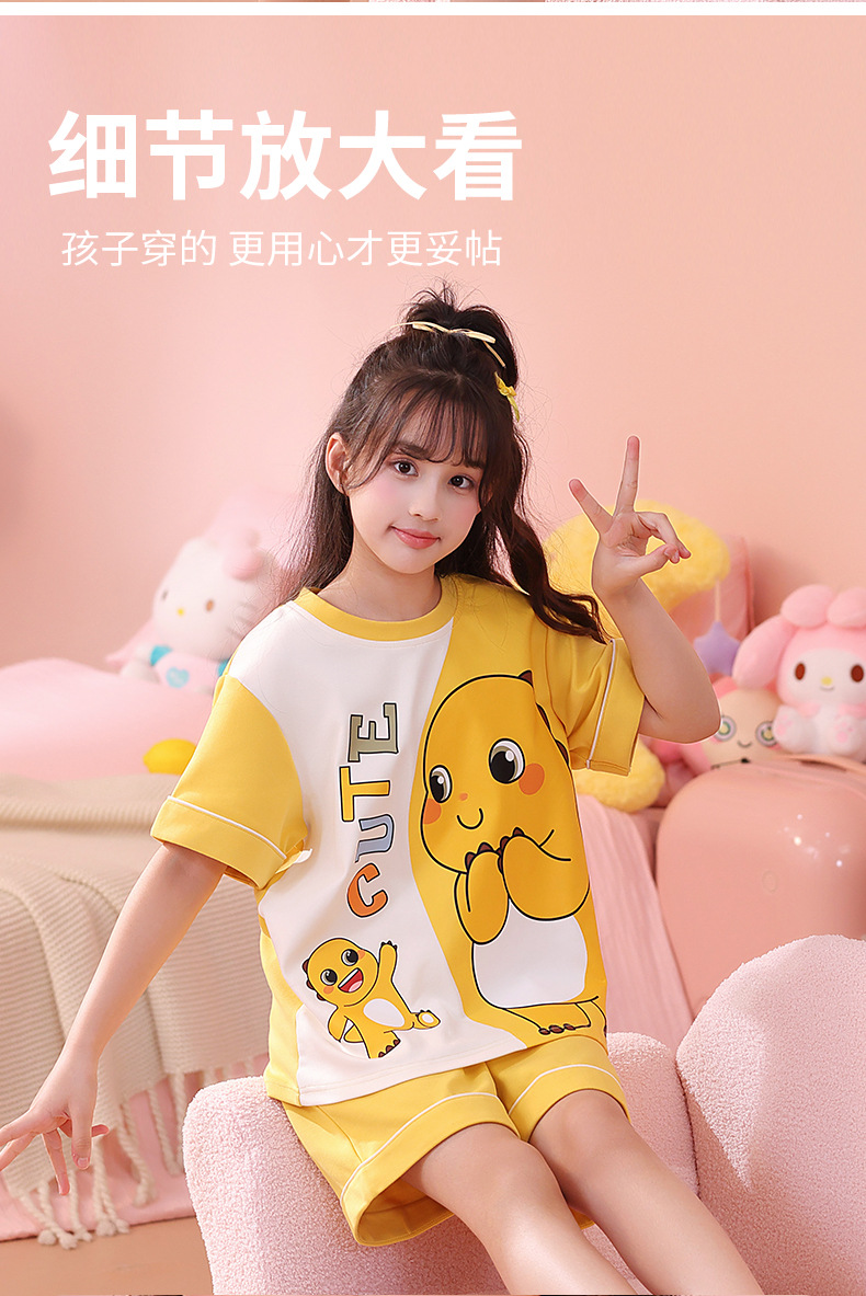2025 새로운 어린이 잠옷 여름 반팔 얇은 양복 소년 소년 큰 어린이 청소년 가정 의류 겉옷스토어 가기