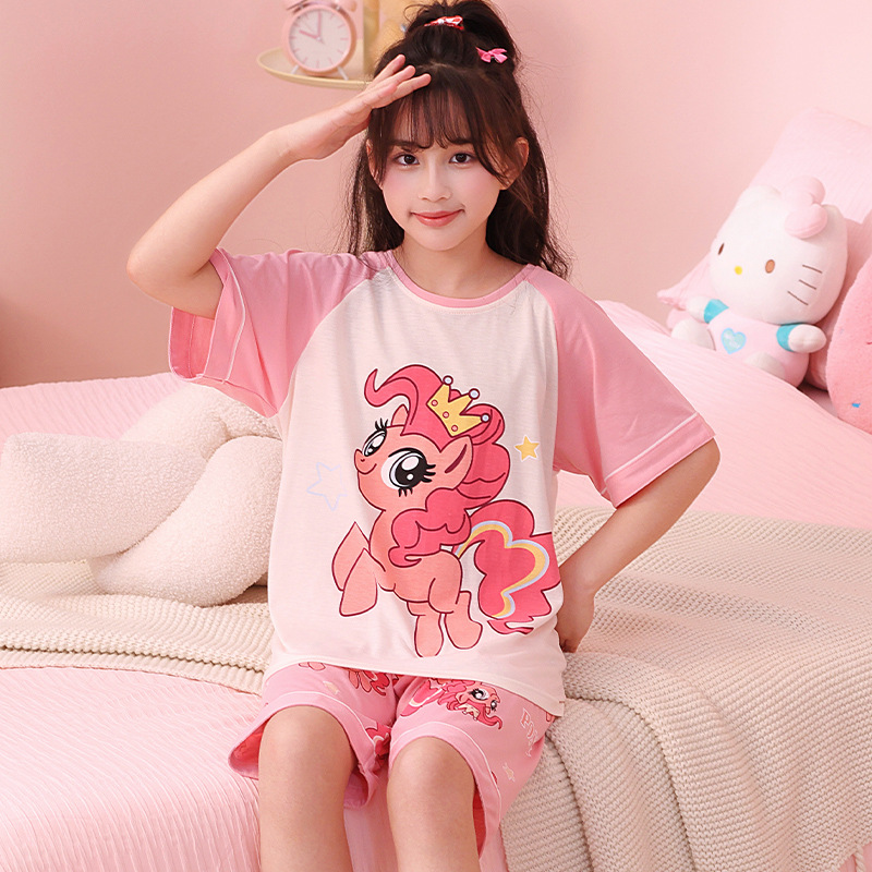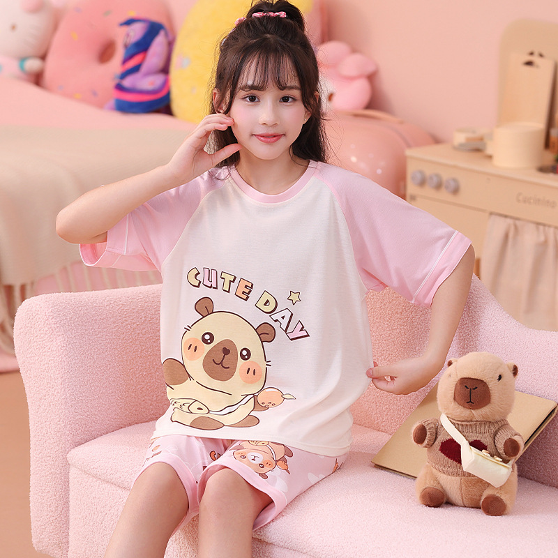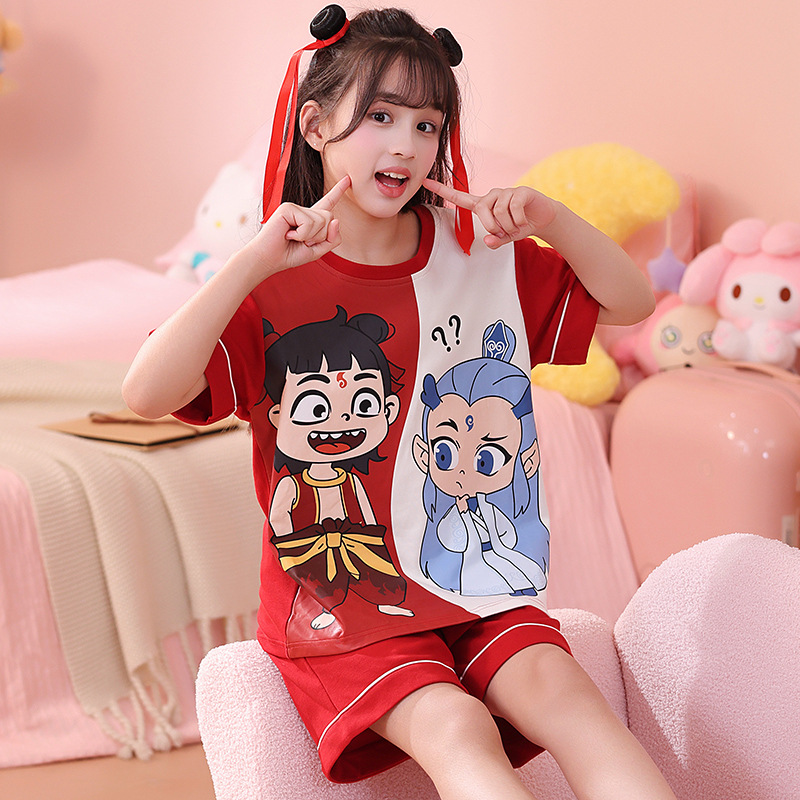 2025 새로운 어린이 잠옷 여름 반팔 얇은 양복 소년 소년 큰 어린이 청소년 가정 의류 겉옷