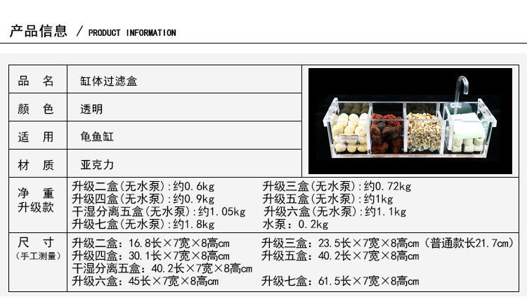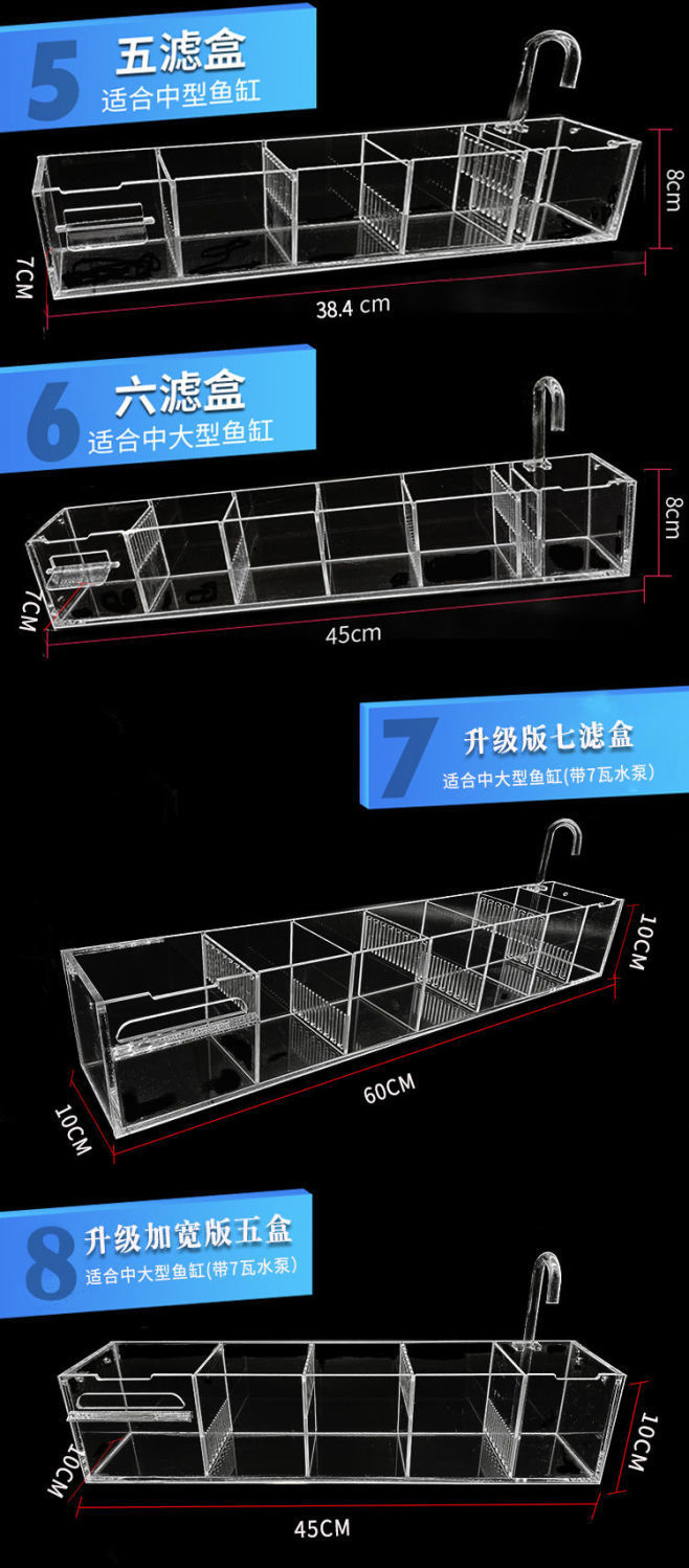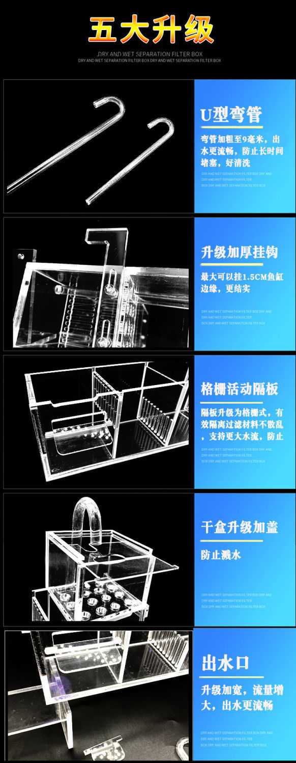 벽에 장착 된 어항 필터 거북이 탱크 필터 상자 3 대 1 산소 증가 필터 상단 벽걸이 드립 박스 공장 도매