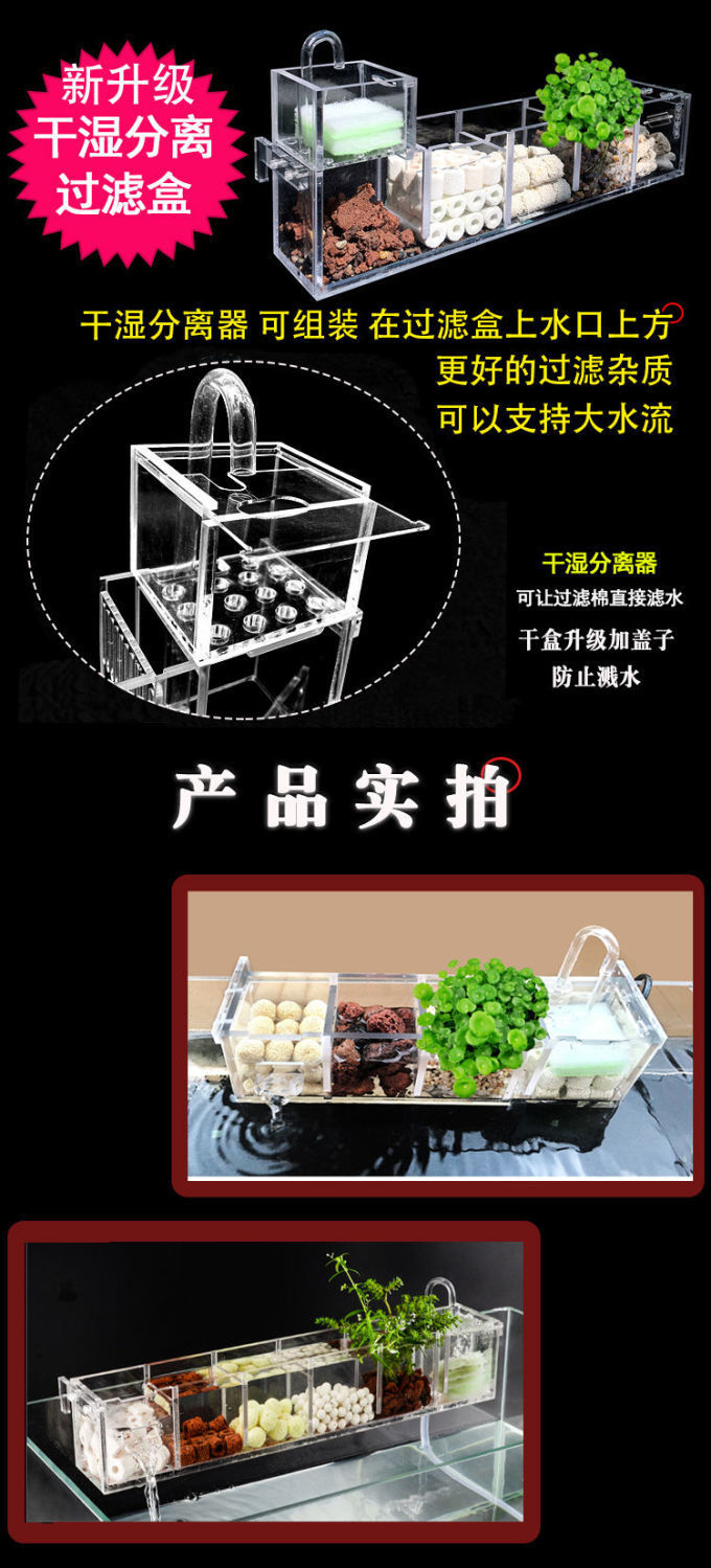 벽에 장착 된 어항 필터 거북이 탱크 필터 상자 3 대 1 산소 증가 필터 상단 벽걸이 드립 박스 공장 도매스토어 가기