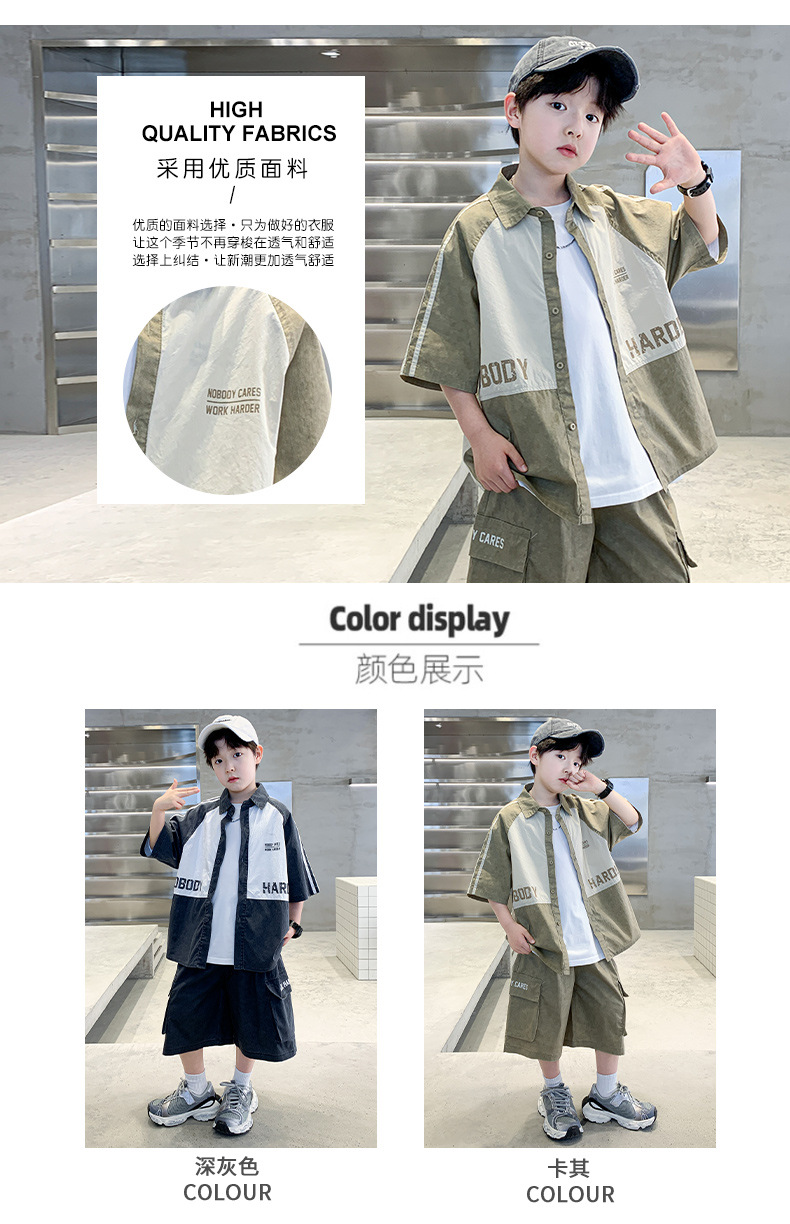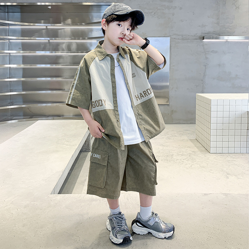 소년 대비 컬러 짧은 소매 세트 2025 새로운 여름 컬러 매칭 툴링 셔츠 티셔츠 투피스 시원한 여름 패션 T