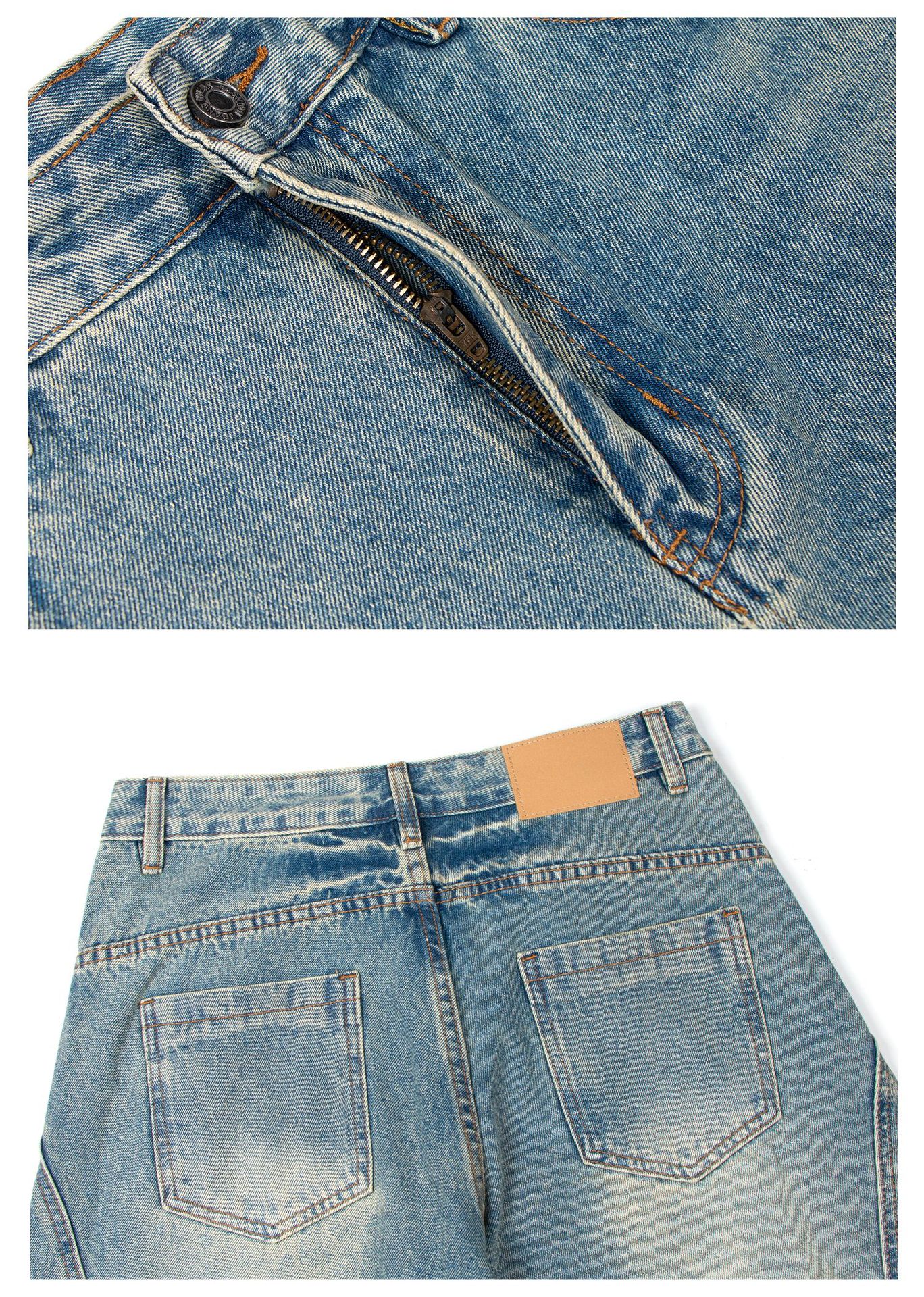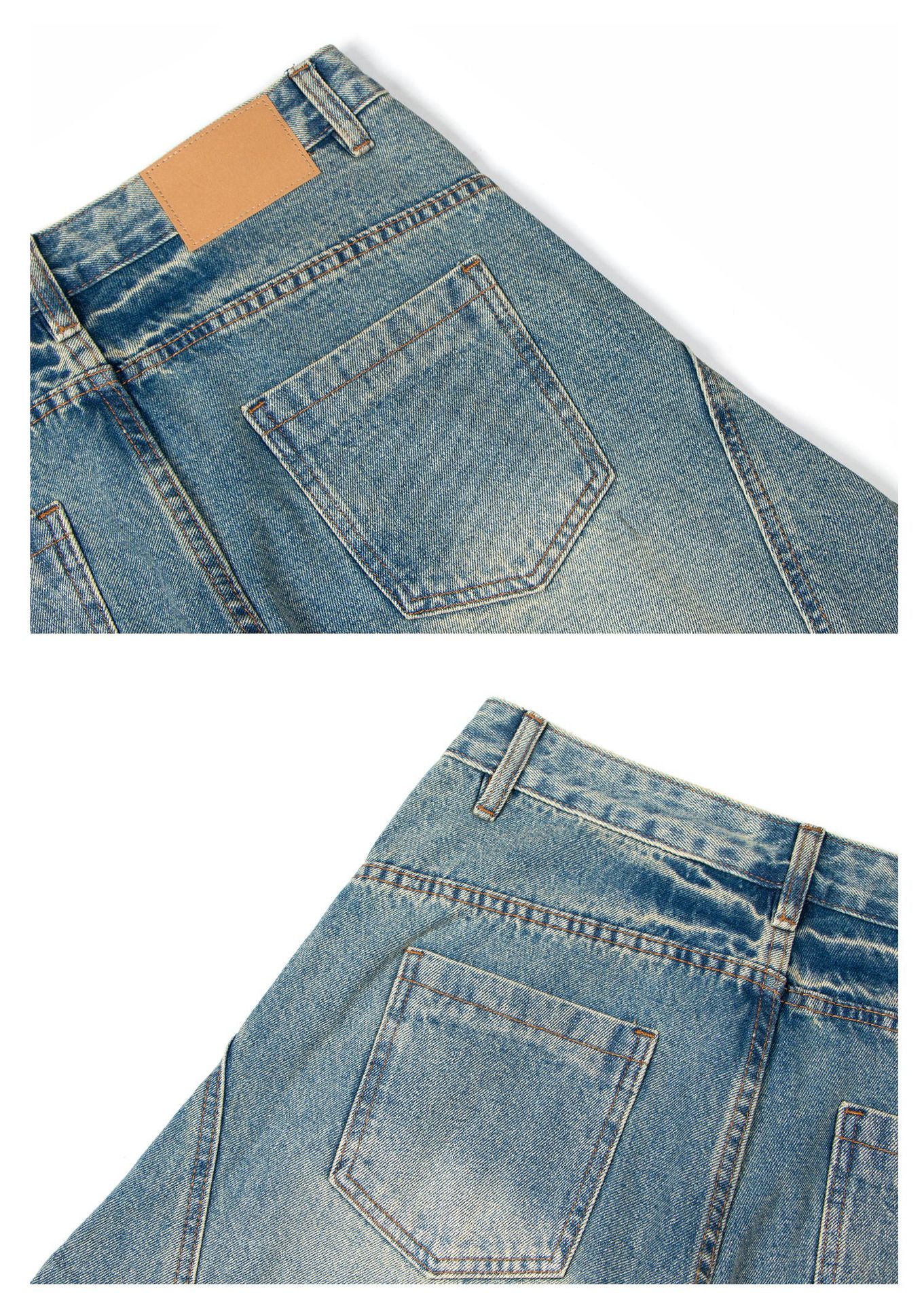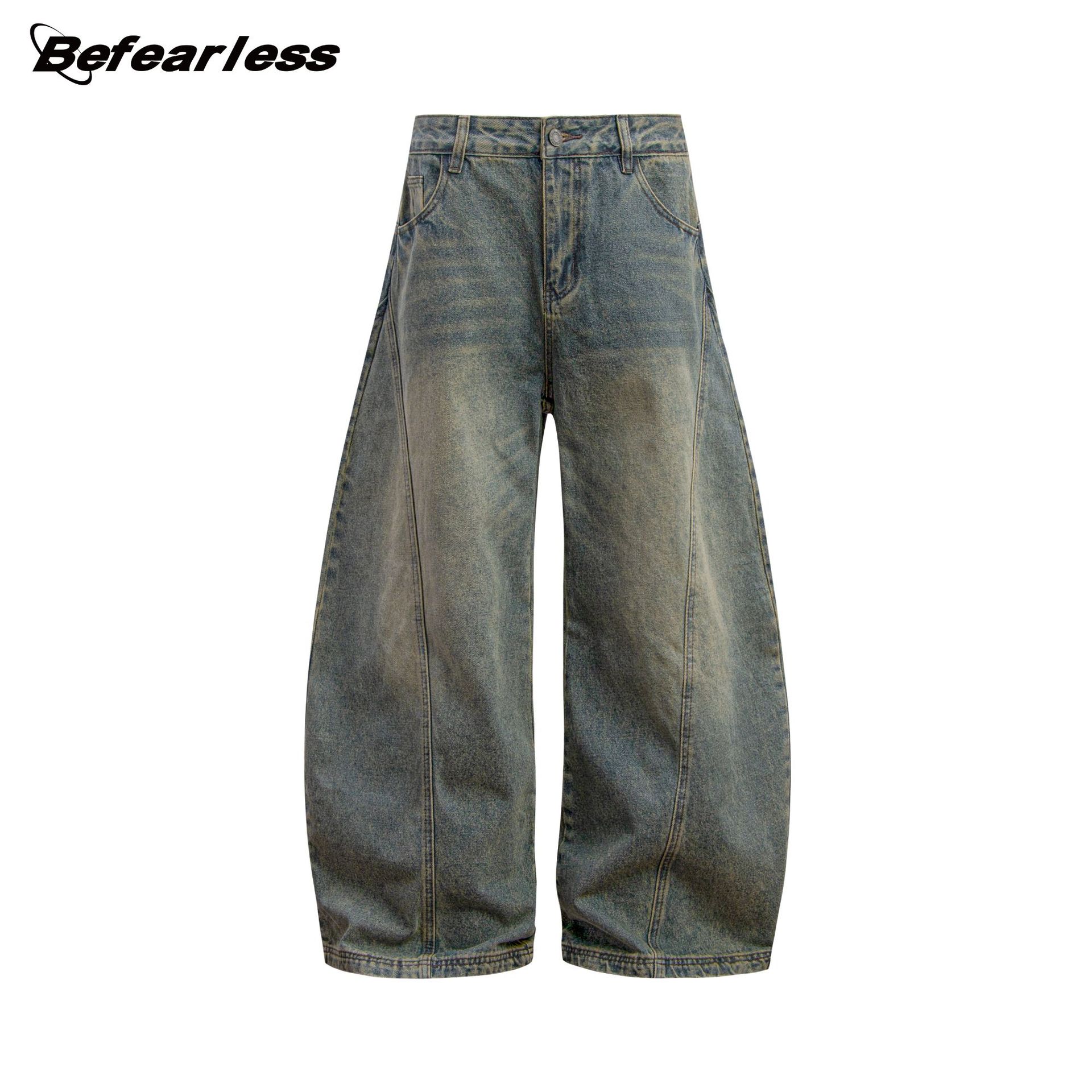 미국 복고풍 워싱 및 디스트레스드 시미터 청바지 소년 트렌디 브랜드 루즈한 와이드 레그 디자인 긴 바지 낫 바지스토어 가기