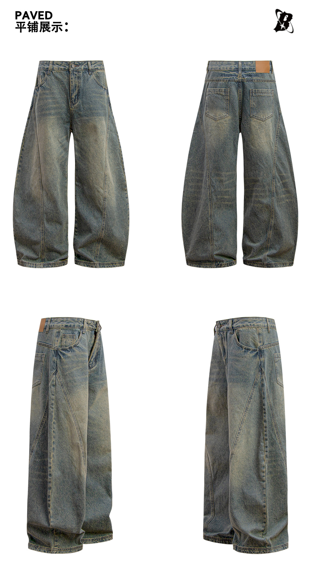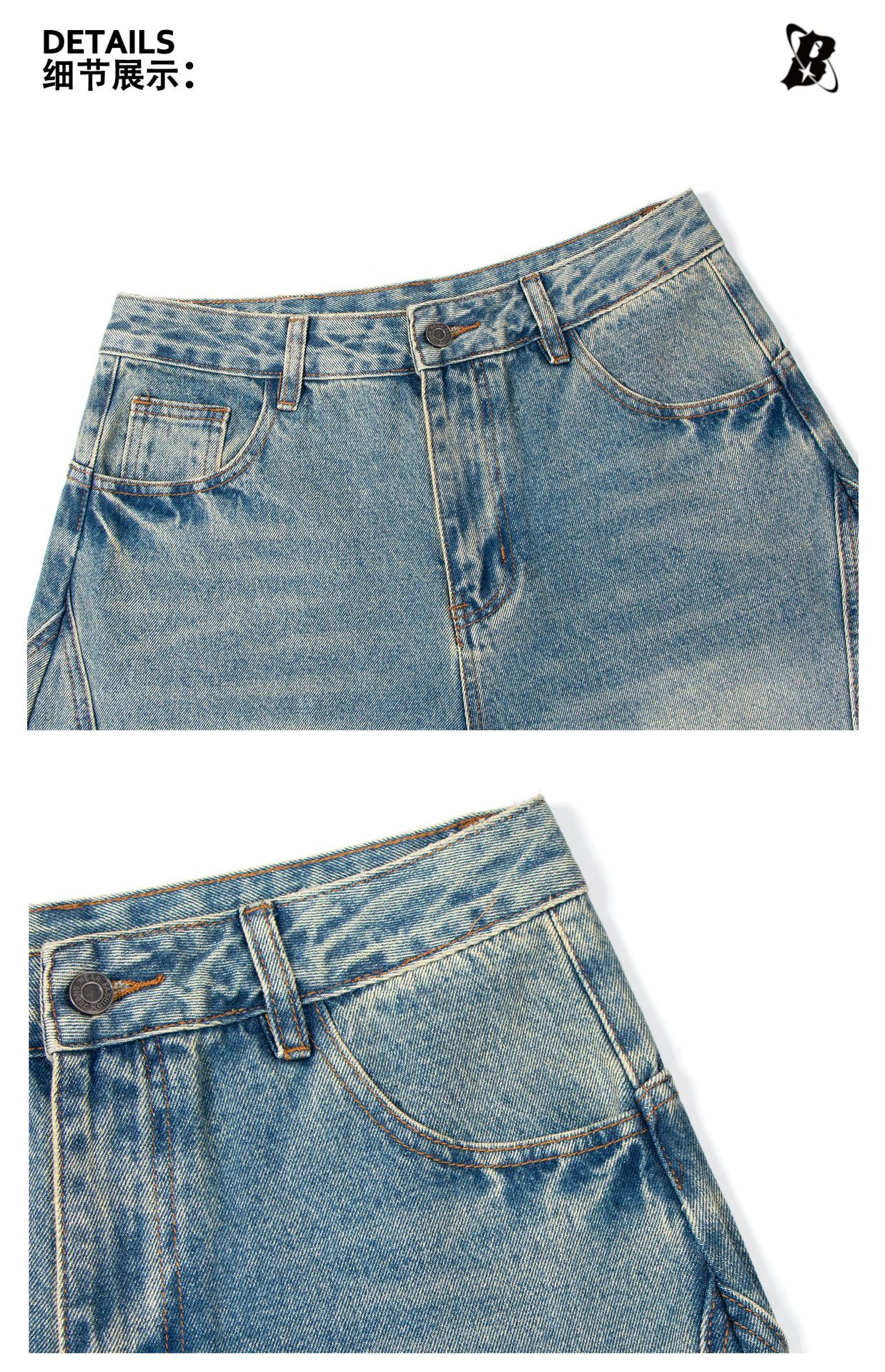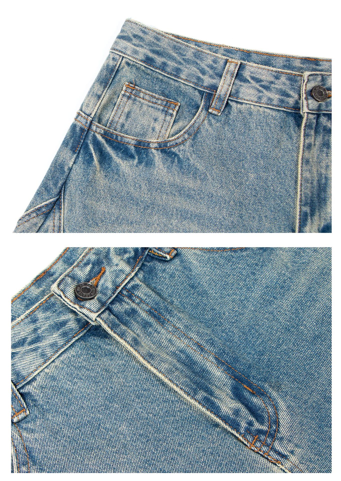 미국 복고풍 워싱 및 디스트레스드 시미터 청바지 소년 트렌디 브랜드 루즈한 와이드 레그 디자인 긴 바지 낫 바지스토어 가기