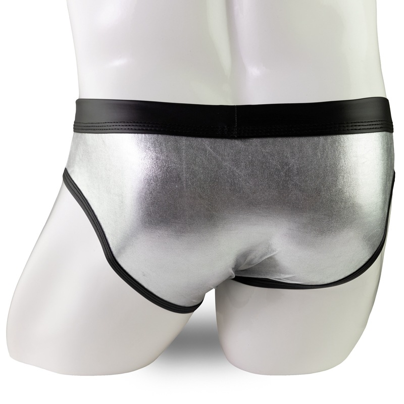 Neyiku 남성용 비키니 삼각형 섹시한 특허 가죽 컬러 블록 속옷 로우 웨이스트 섹시한 유럽과 미국의 새로운 스타일 Amazon스토어 가기