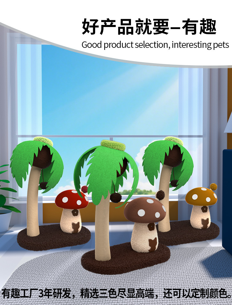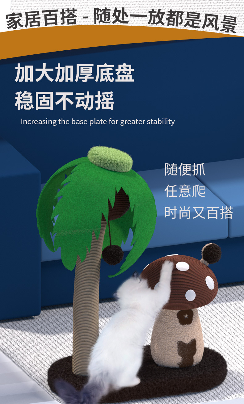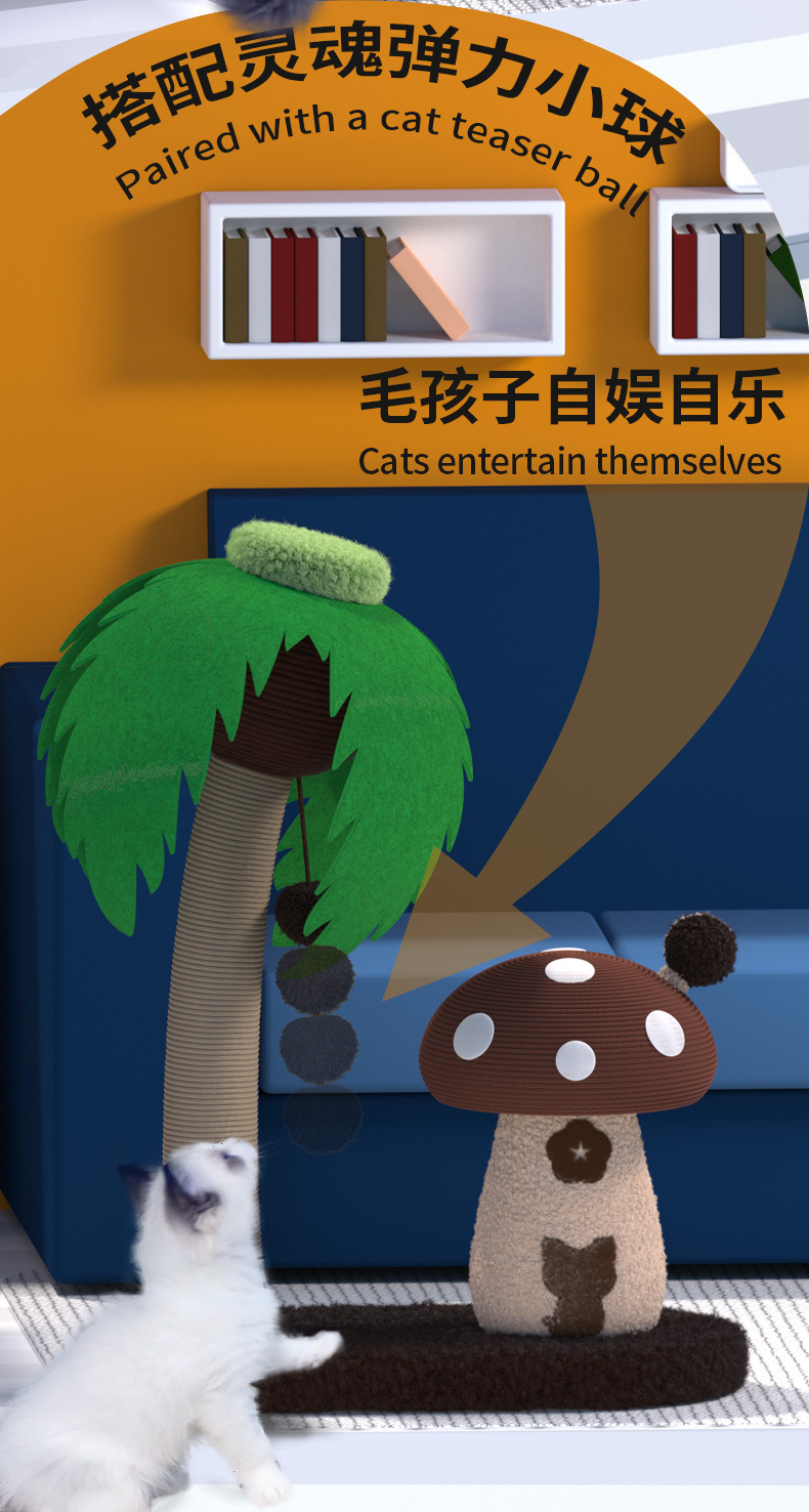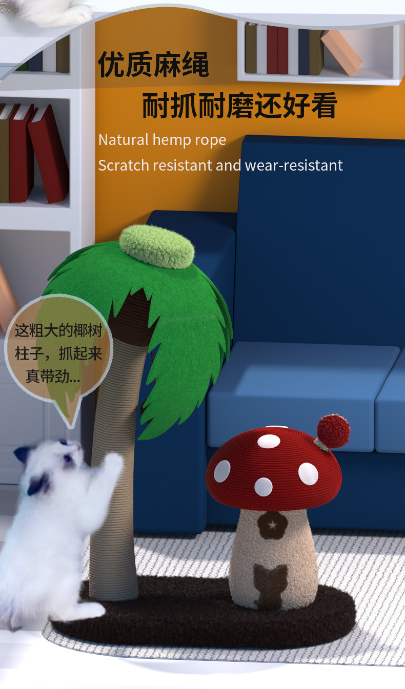 버섯 모양 고양이 스크래쳐, 사자수염 및 코코넛 나무 고양이 스크래쳐, 내구성 있는 고양이 클라이밍 프레임, 발톱 갈이 및 지루함 해소 고양이 장난감, 제조사 직판
