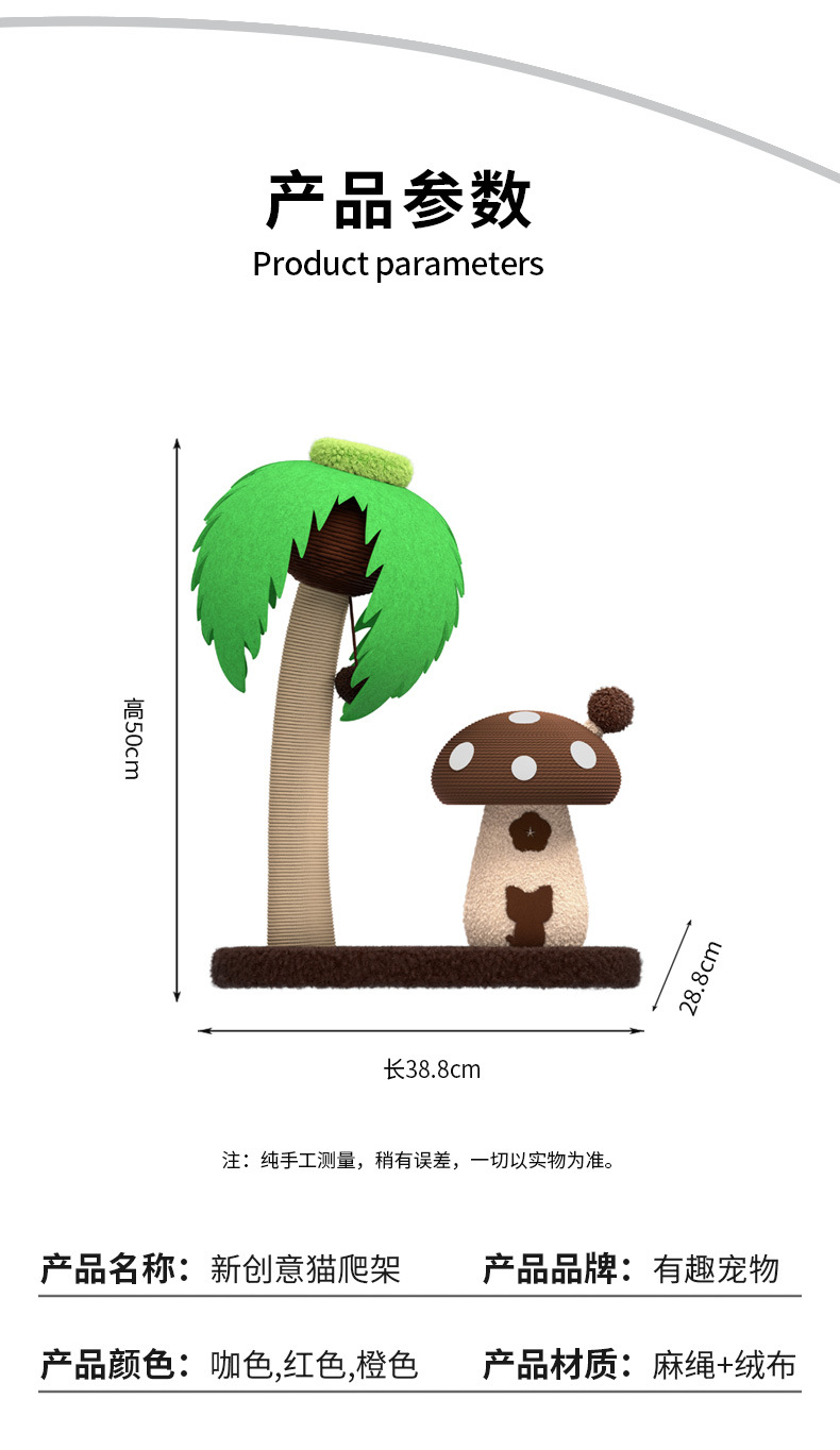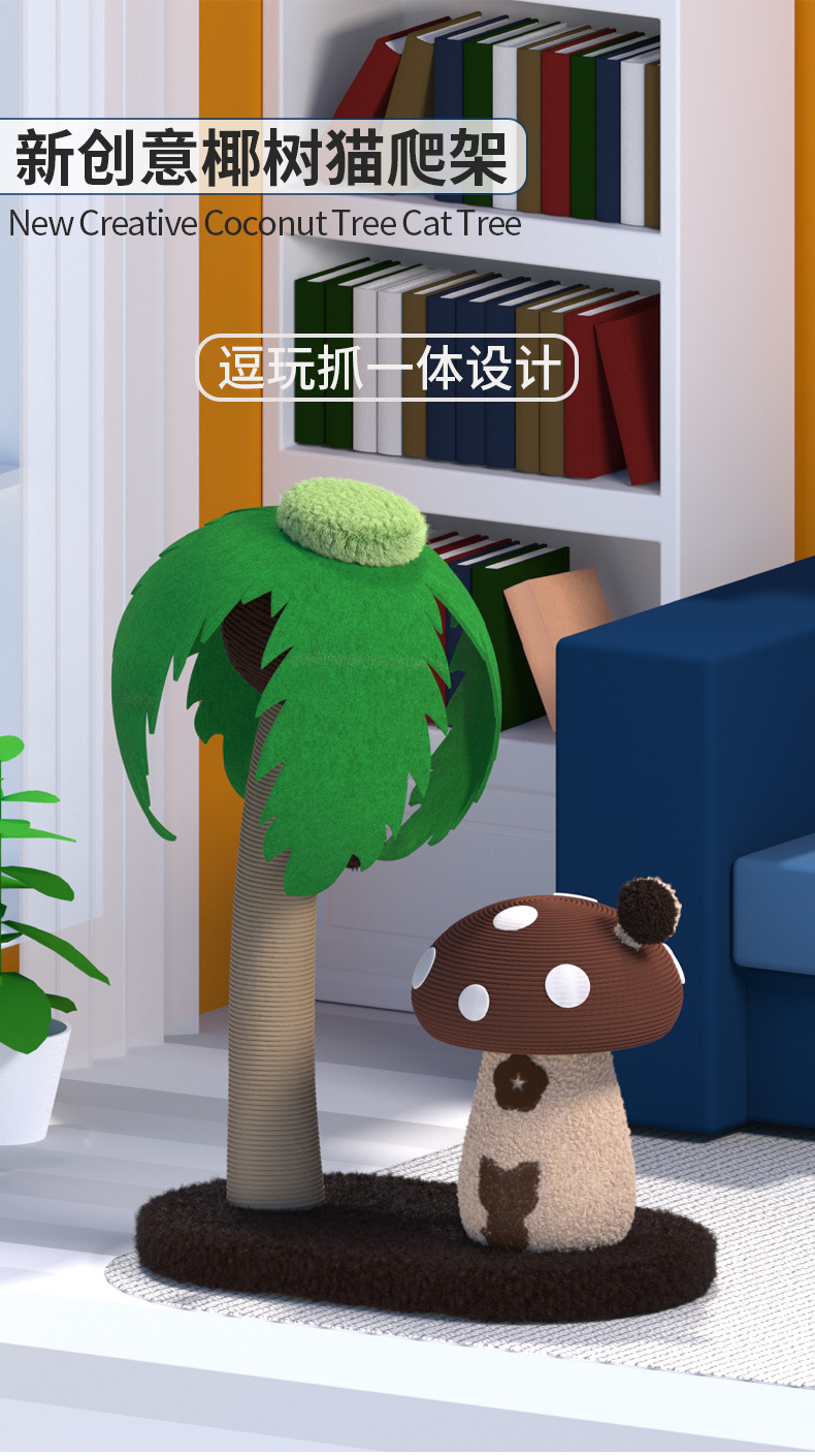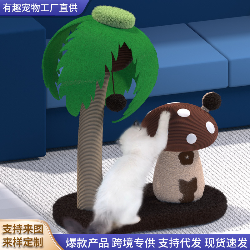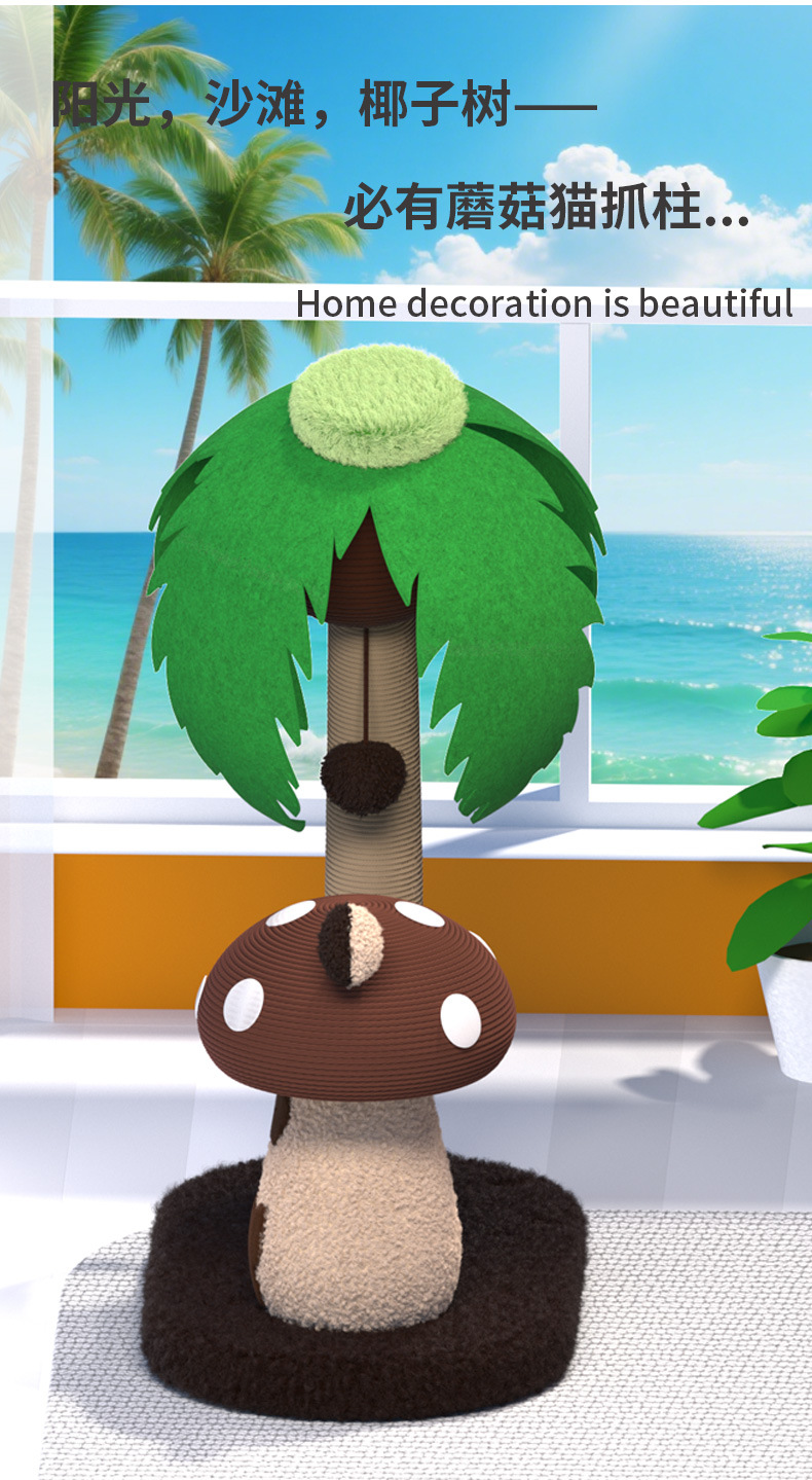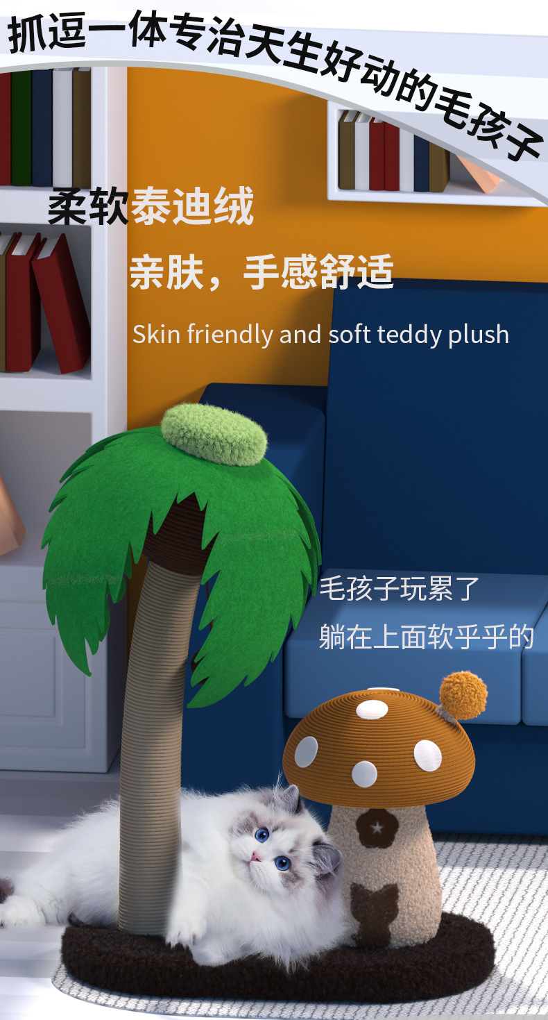 버섯 모양 고양이 스크래쳐, 사자수염 및 코코넛 나무 고양이 스크래쳐, 내구성 있는 고양이 클라이밍 프레임, 발톱 갈이 및 지루함 해소 고양이 장난감, 제조사 직판