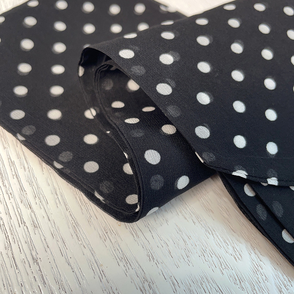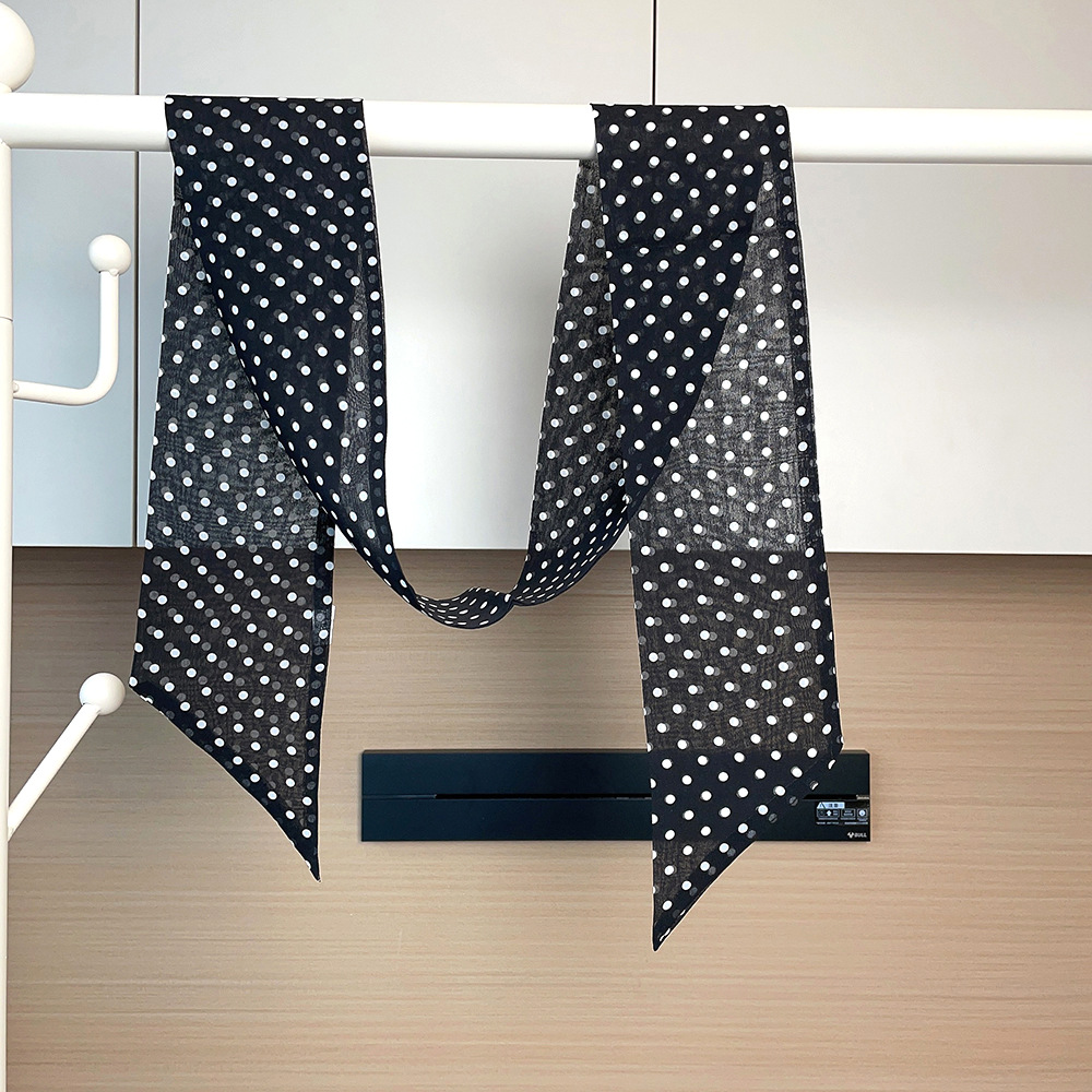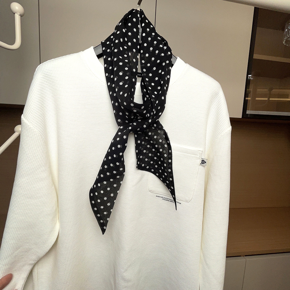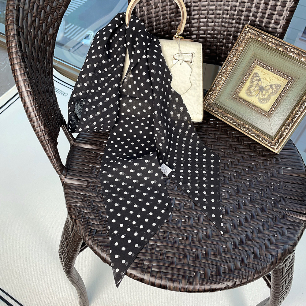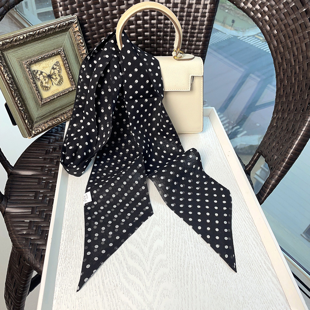 헵번 스타일 흑백 폴카 도트 더블 레이어 실크 스카프 여자 조키 롱 올 매치 다목적 얇은 베벨 리본 미니멀리스트스토어 가기