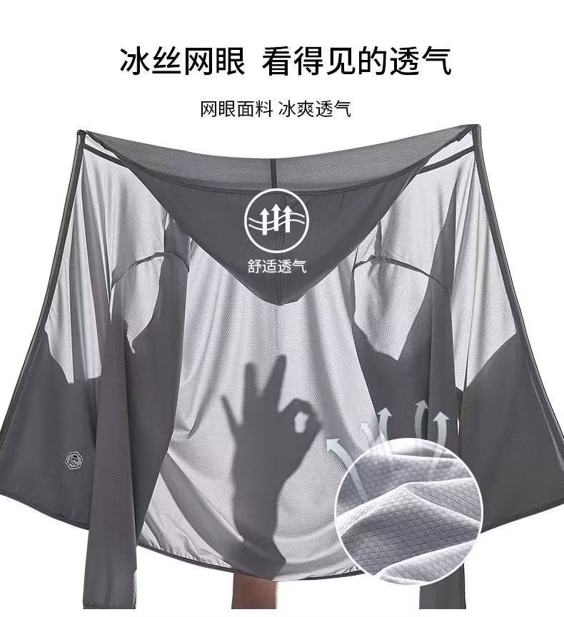 메쉬 태양 보호 의류 남성 여름 얇은 카디건 타입 후드 통기성 야외 승마 낚시 아이스 실크 메쉬 재킷