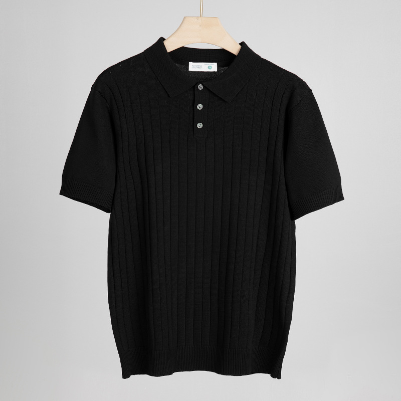 여름 남성 폴로 셔츠 솔리드 컬러 반팔 라펠 스웨터 슬림 한국 스타일 탑 핏 스트립 캐주얼 다용도 티셔츠스토어 가기