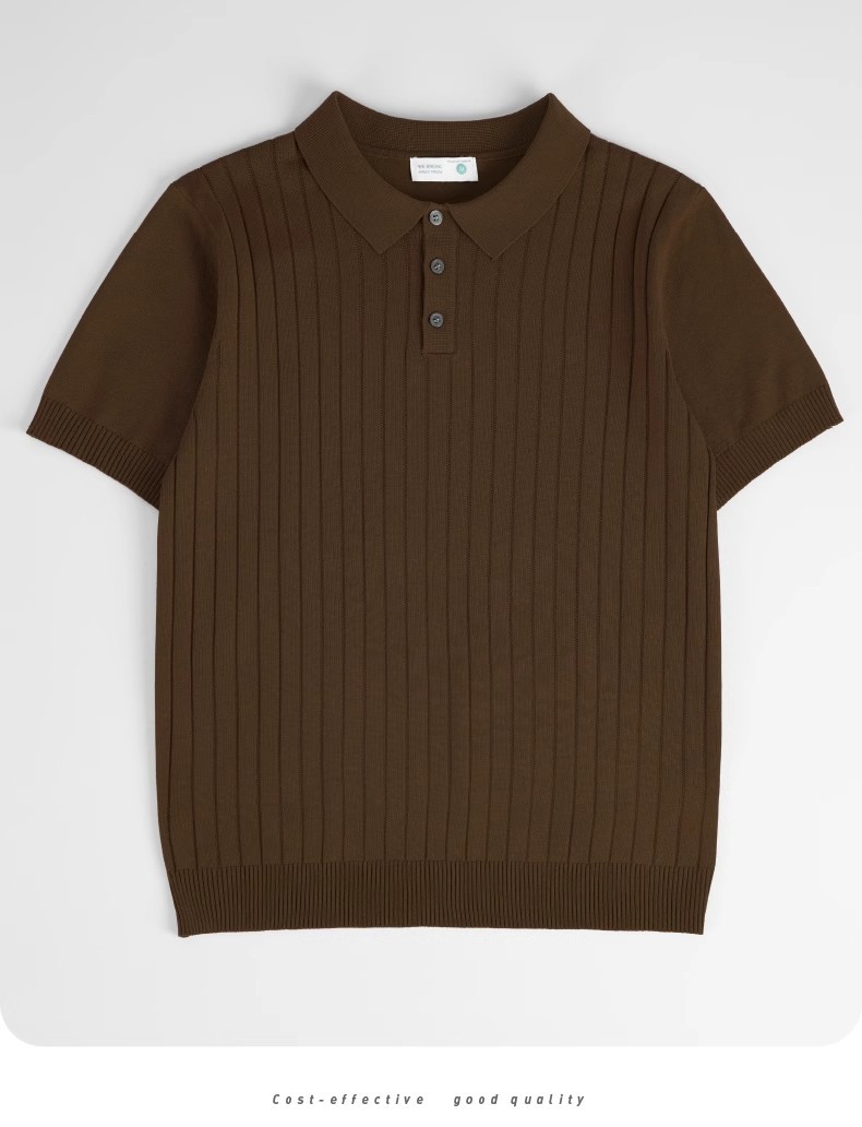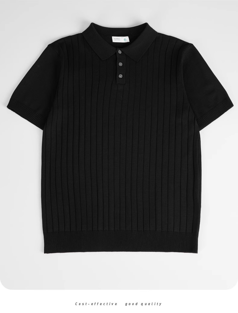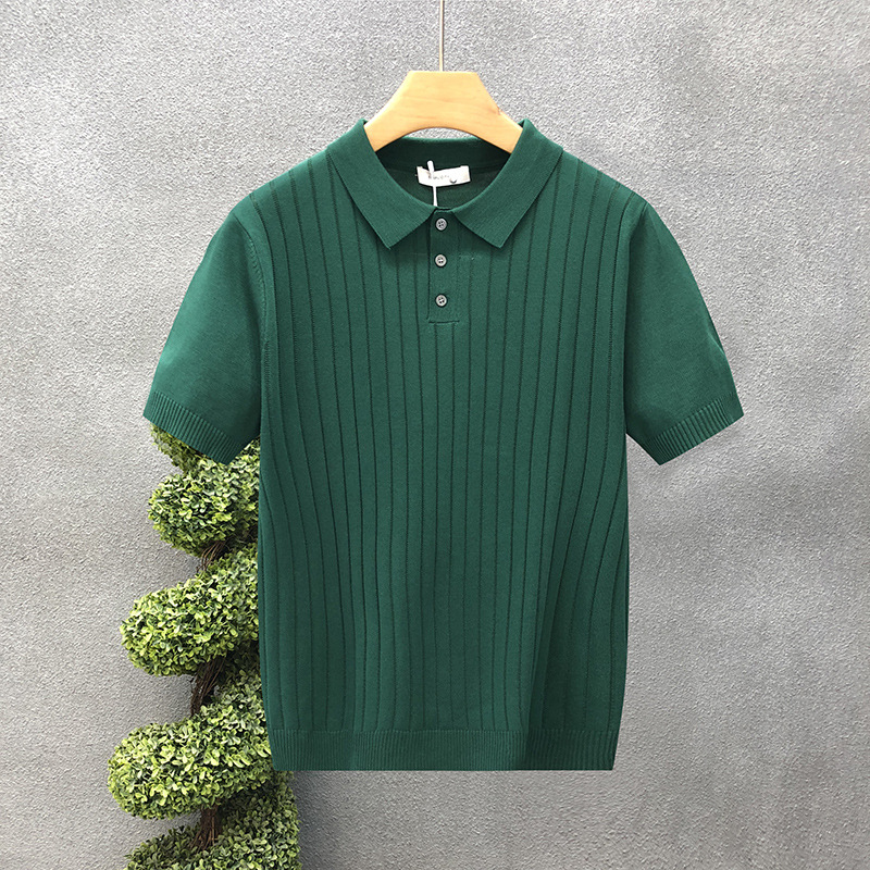 여름 남성 폴로 셔츠 솔리드 컬러 반팔 라펠 스웨터 슬림 한국 스타일 탑 핏 스트립 캐주얼 다용도 티셔츠