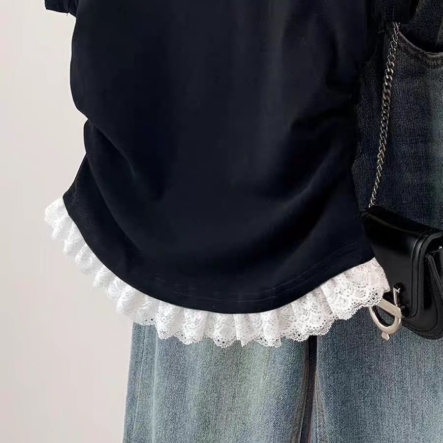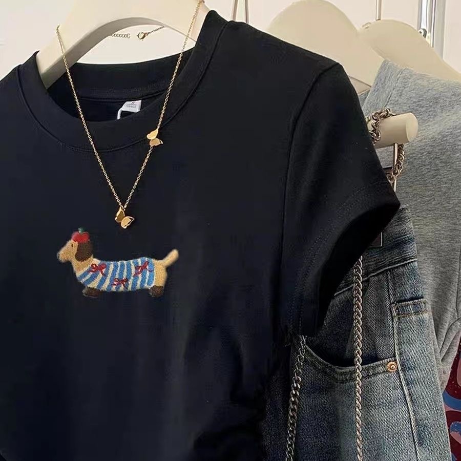 그레이 레이스 강아지 반팔 티셔츠 여성 여름 2025 여름 짧은 어깨 꽉 허리 탑스토어 가기