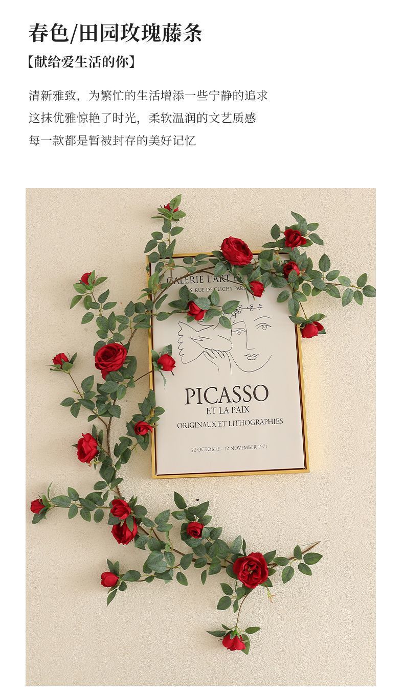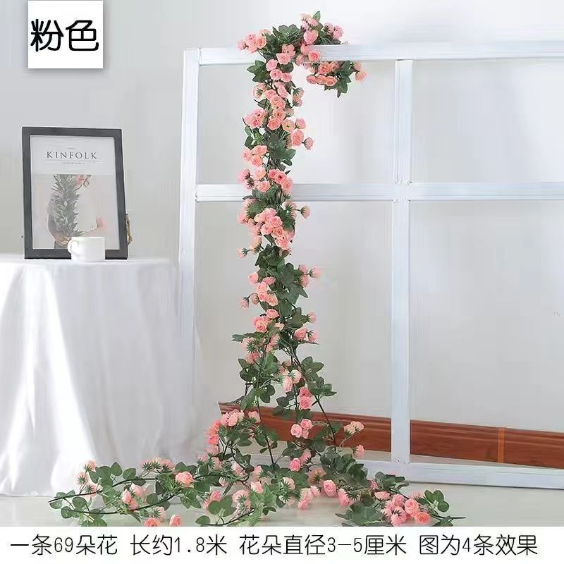 시뮬레이션 로즈 인공 꽃 등나무 에어컨 하수구 파이프 권선 그늘 웨딩 룸 장식 꽃 실내 벽 녹색 심기