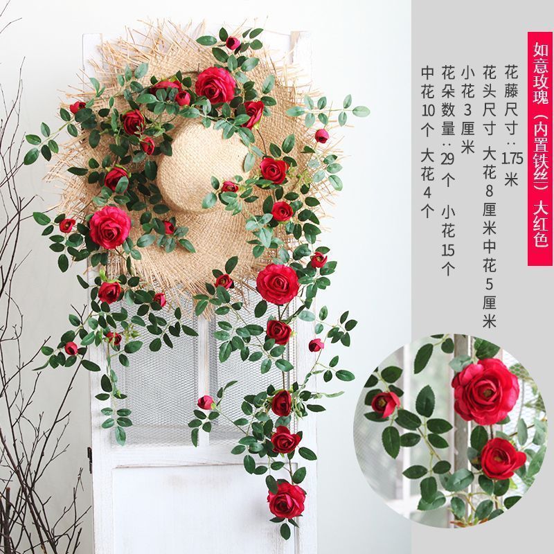 시뮬레이션 로즈 인공 꽃 등나무 에어컨 하수구 파이프 권선 그늘 웨딩 룸 장식 꽃 실내 벽 녹색 심기스토어 가기