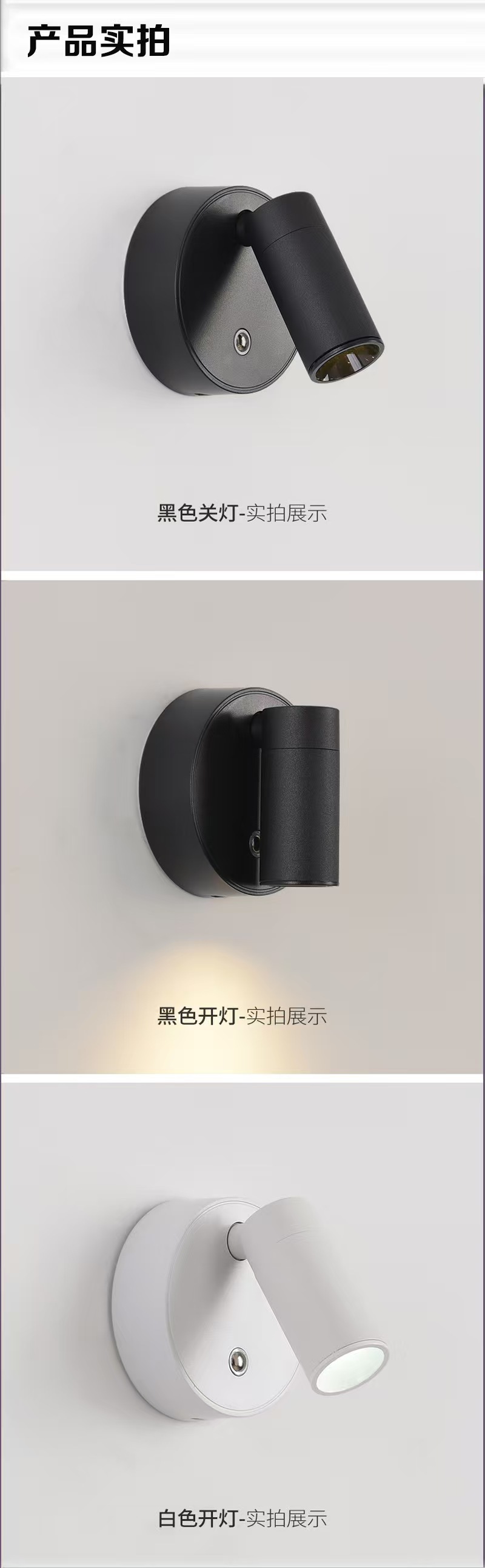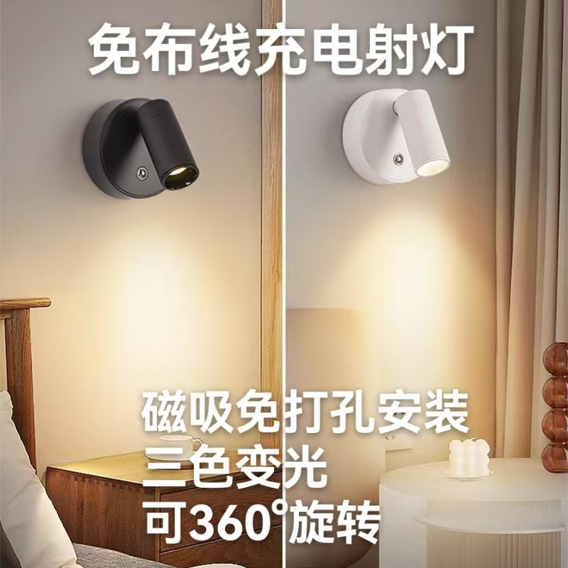 국경 간 인기 있는 자기 USB 충전 배선 없음 벽 램프 3색 조광 분위기 램프 침대 옆 소형 스포트라이트