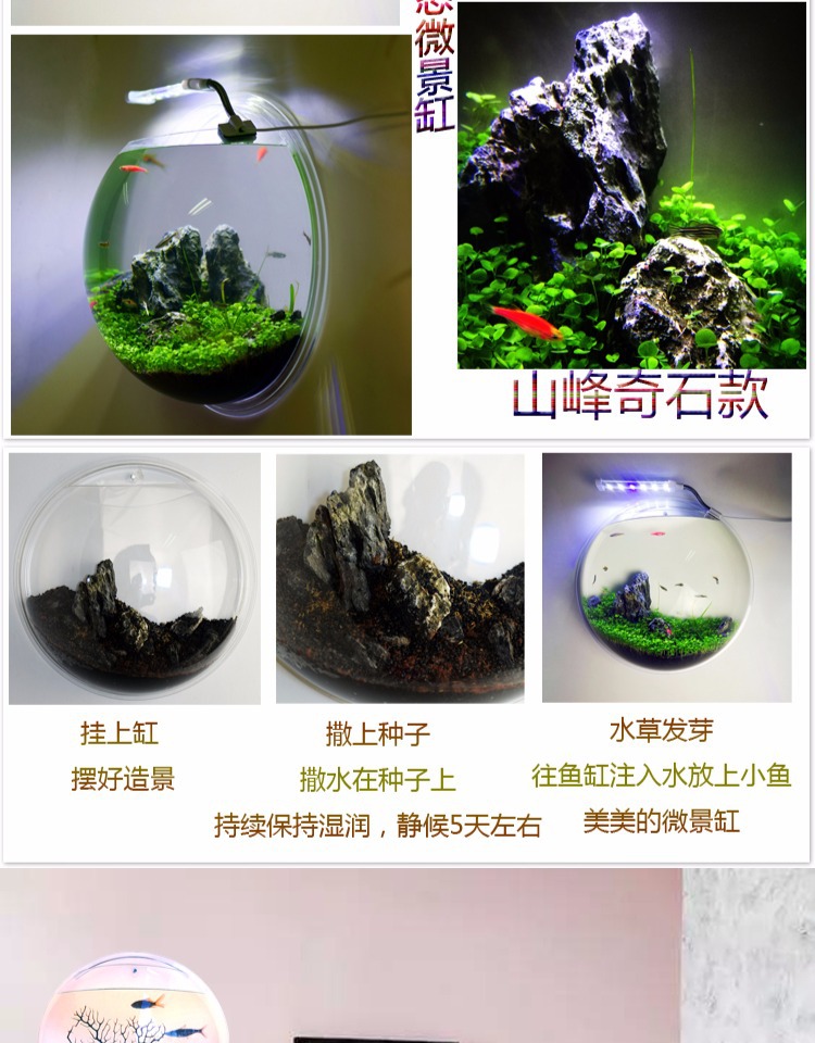 아크릴 꽃병 벽에 장착 된 조경 물 공장 탱크 거실 벽 열대 우림 물고기 탱크 수족관 마이크로 풍경