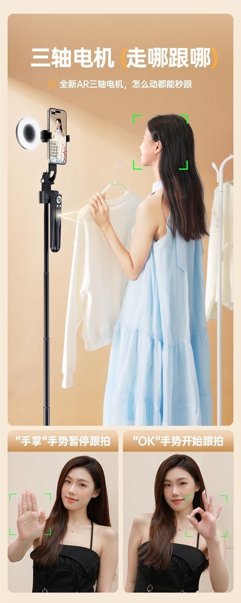 • [360도 지능형 AI 얼굴 인식 + 4축 안정화 촬영] - 1.8 플로어 스탠딩 후속 촬영 + 블루투스 리모컨 + 단일 필 라이트