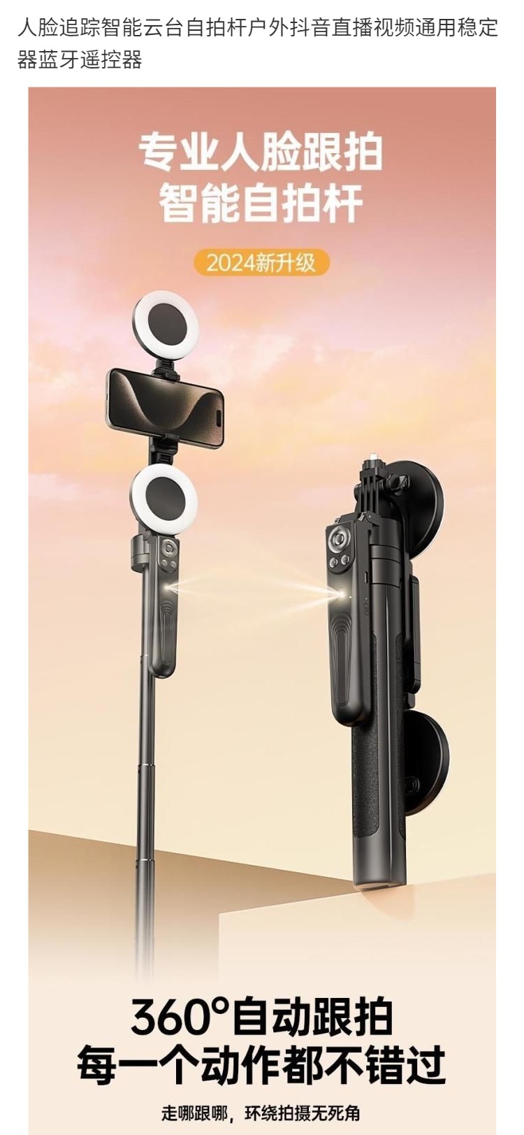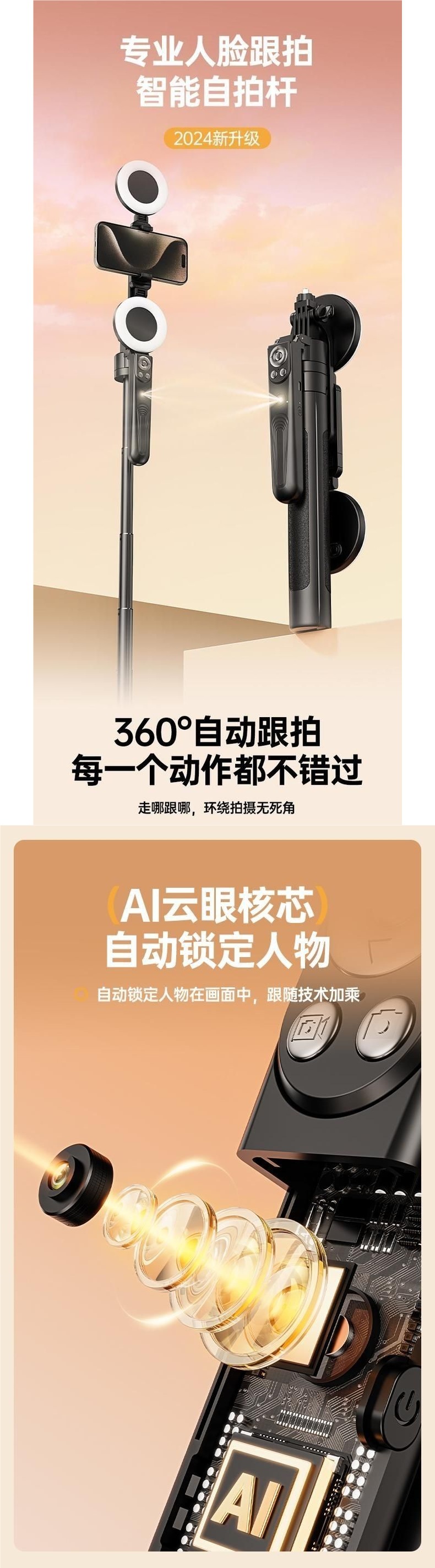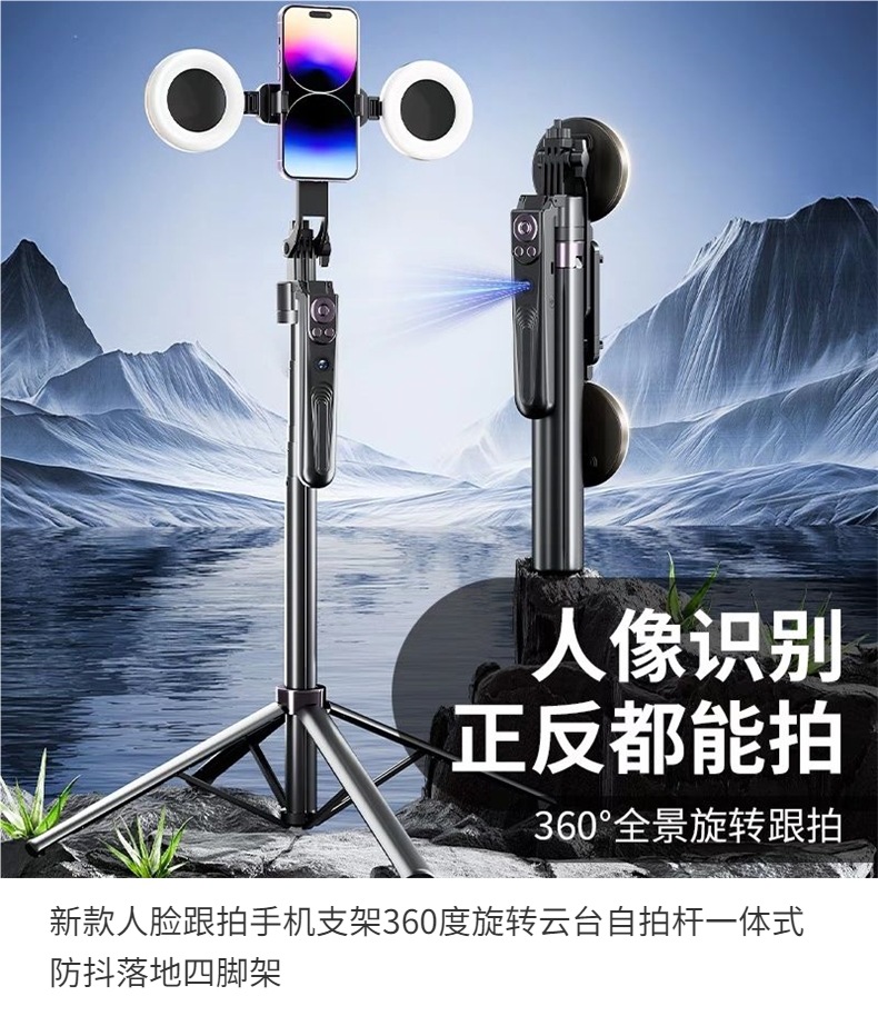 2025 새로운 휴대 전화 브래킷 팬 틸트 지능형 회전 팬 틸트 셀카 스틱 통합 흔들림 방지 플로어 4 레겔스토어 가기